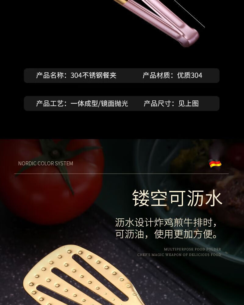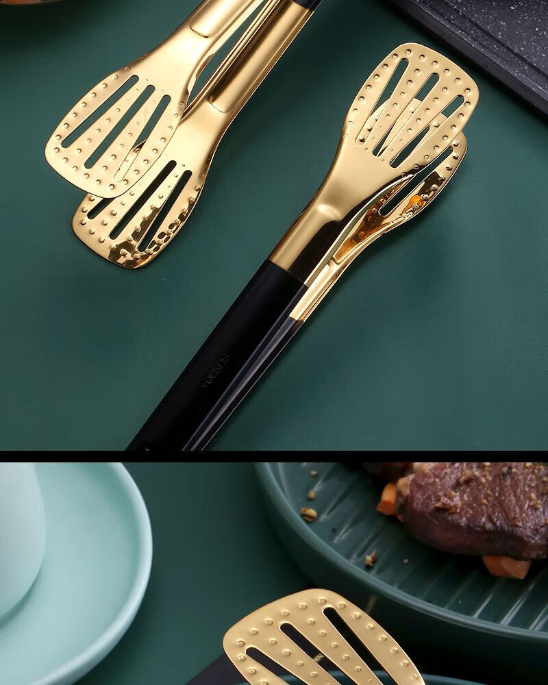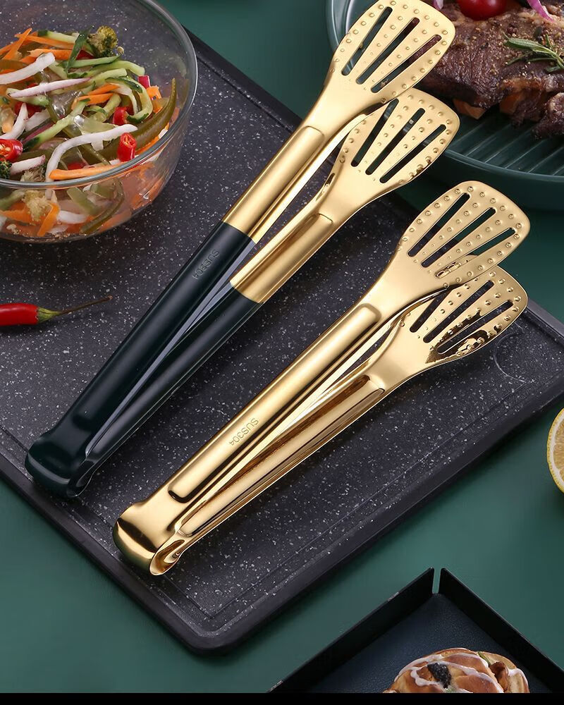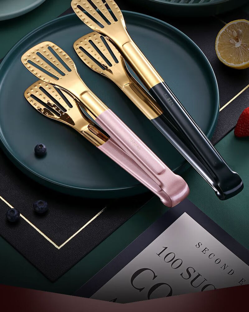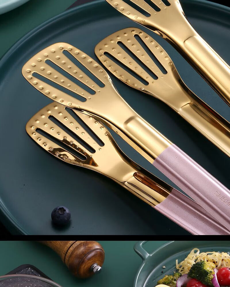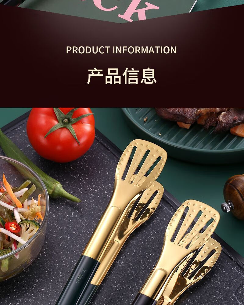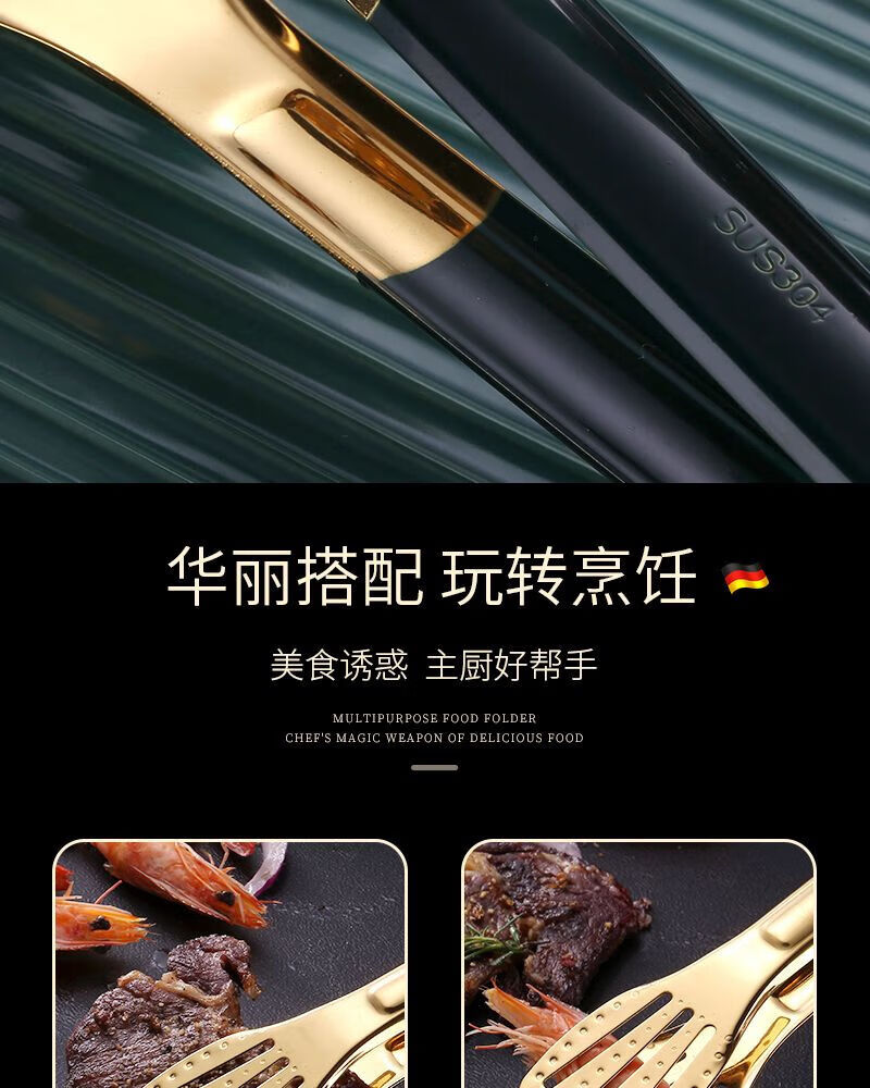 Qinkai ultra-thick stainless steel food tongs kitchen commercial anti-scald food tongs barbecue tongs steak tongs spicy hot 9 inches (length 23.5cm) stainless steel color (ordinary style)