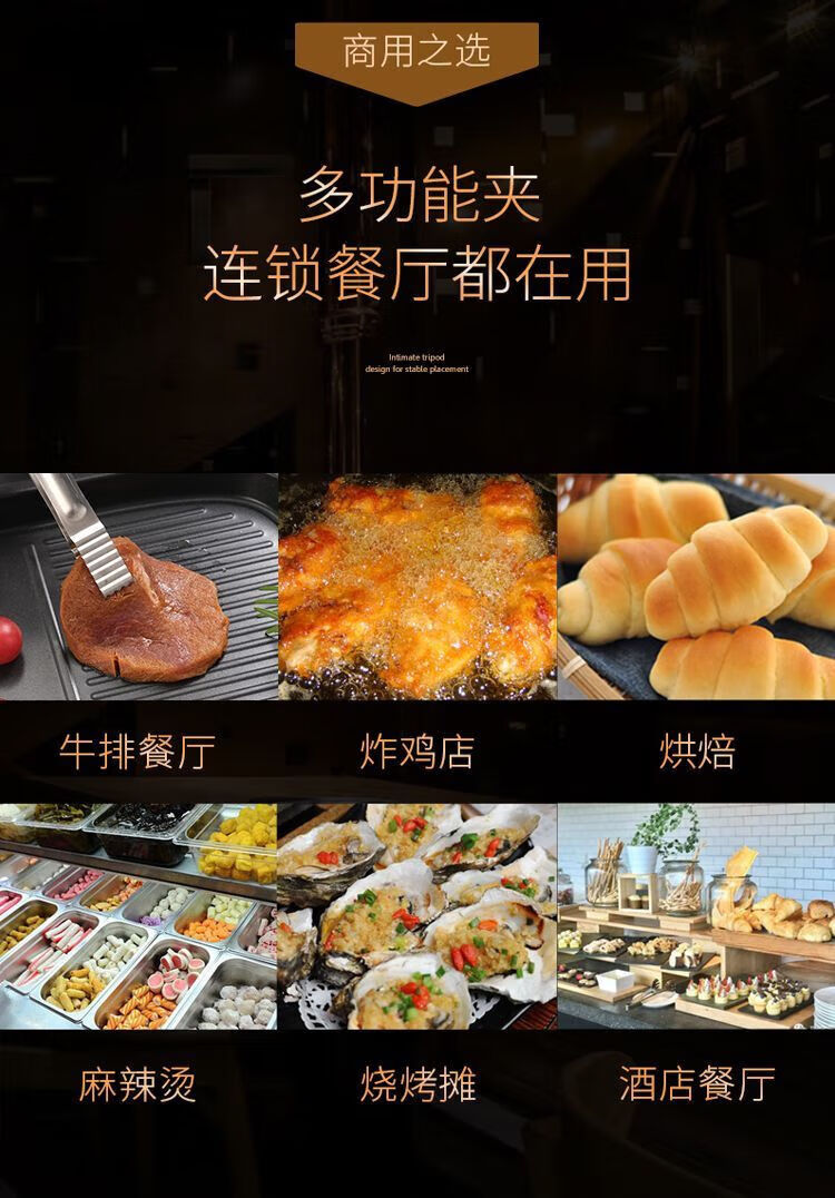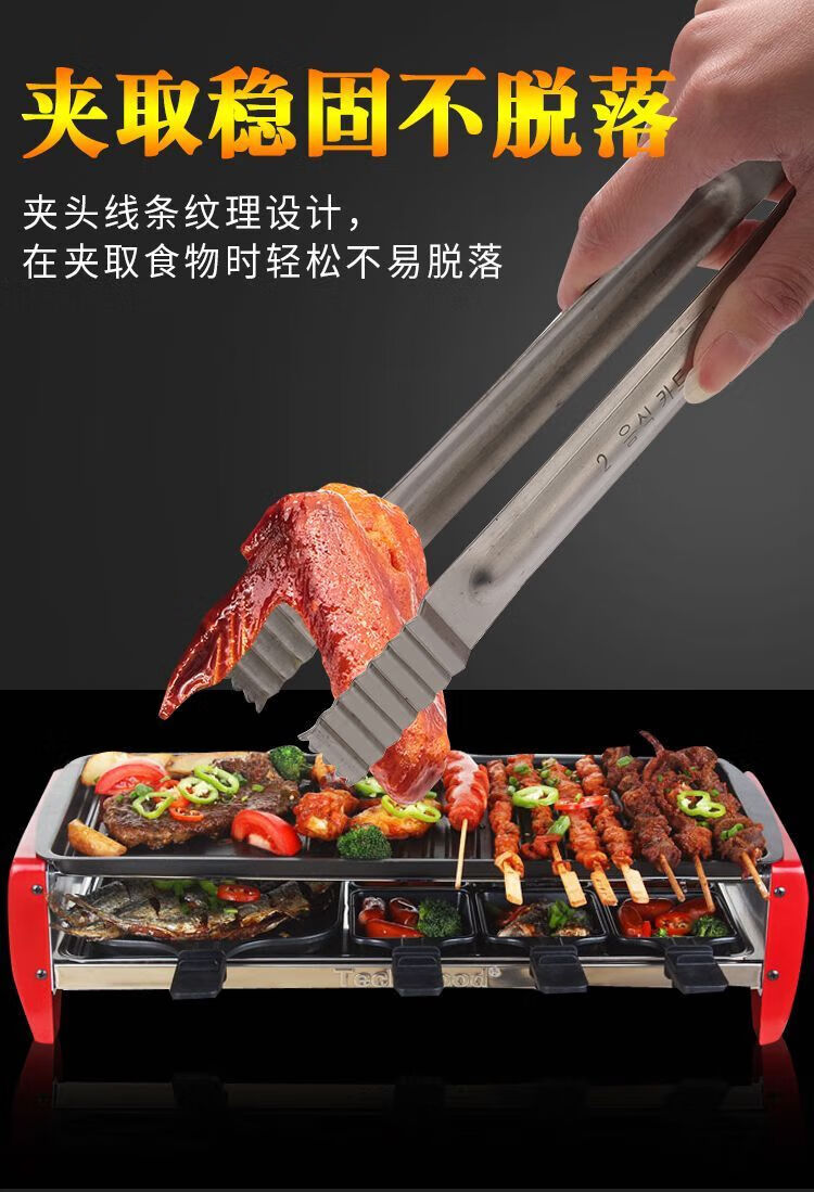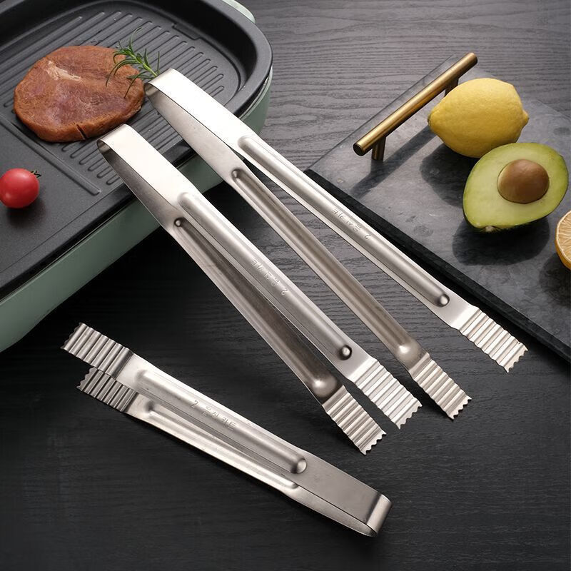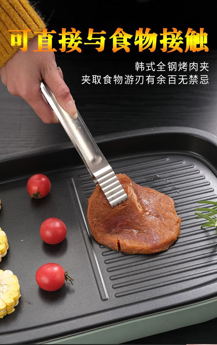 Qinkai long-handled stainless steel Korean barbecue tongs barbecue food steak cooking buffet small tongs kitchen household small barbecue tongs