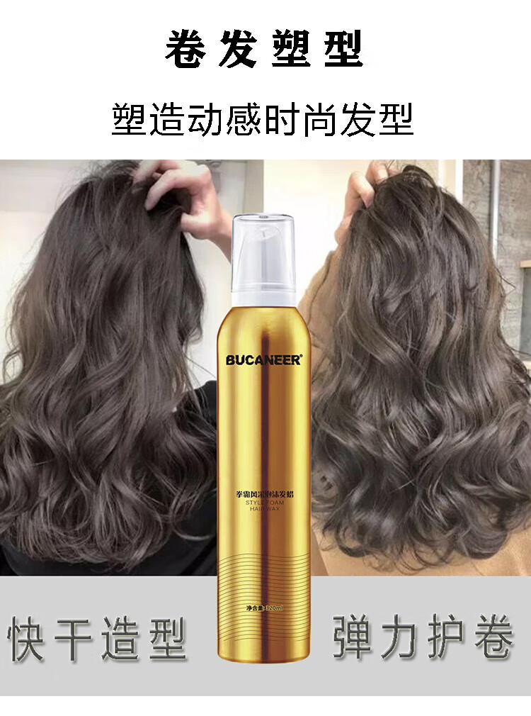 Boxer foam hair wax elastin for men and women's curly hair moisturizing fluffy anti-frizz styling bubble mousse hair gel for styling gold*3 bottles