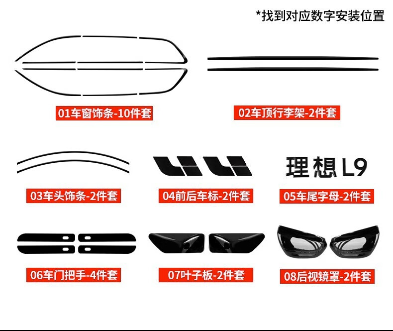 Ideal L7L8L9 window trim strips Black Warrior modified bright strip blackening kit car-specific exterior decoration accessories Ideal L8proAir Black Warrior suit bright black 16-piece set