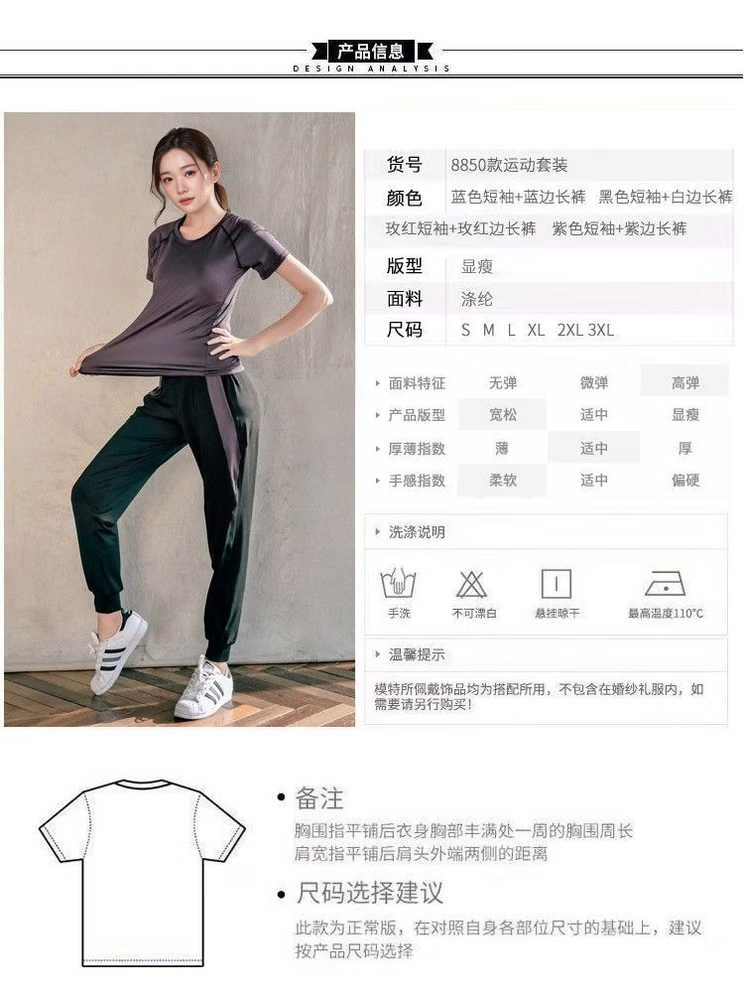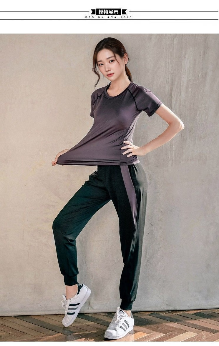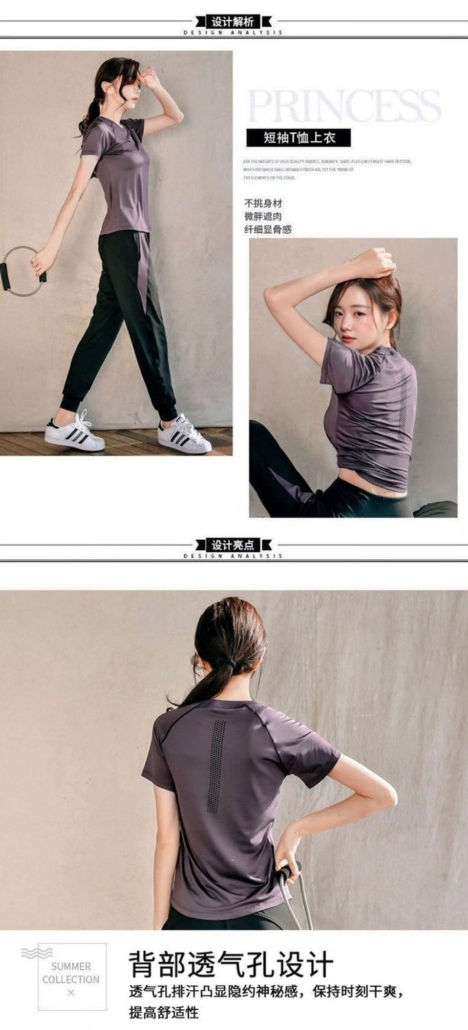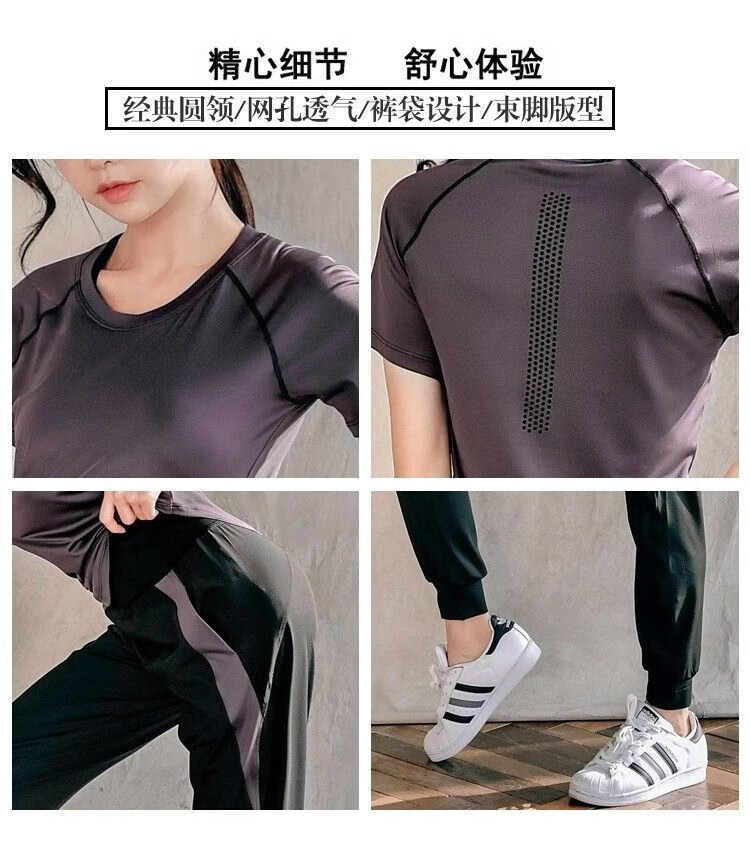 Ayub Yoga Wear Women's Summer Slim Loose Sports Fitness Quick-Drying Stretch Breathable Pilates Training Top Set Dark Purple Three-piece Set Short Sleeves + Long Sleeves + Pants S80-95Jin Jin equals 0.5 kg