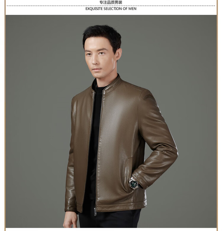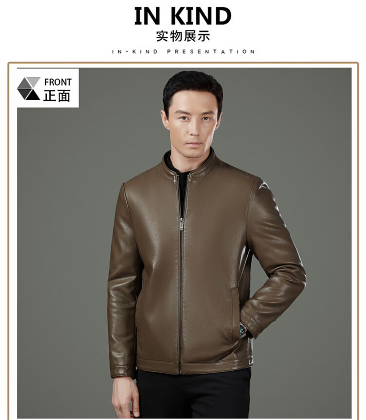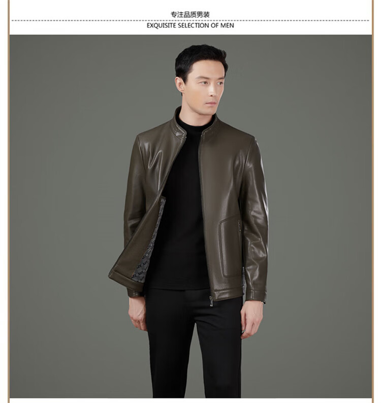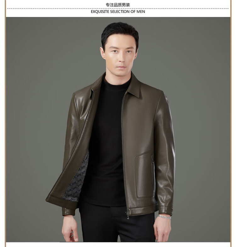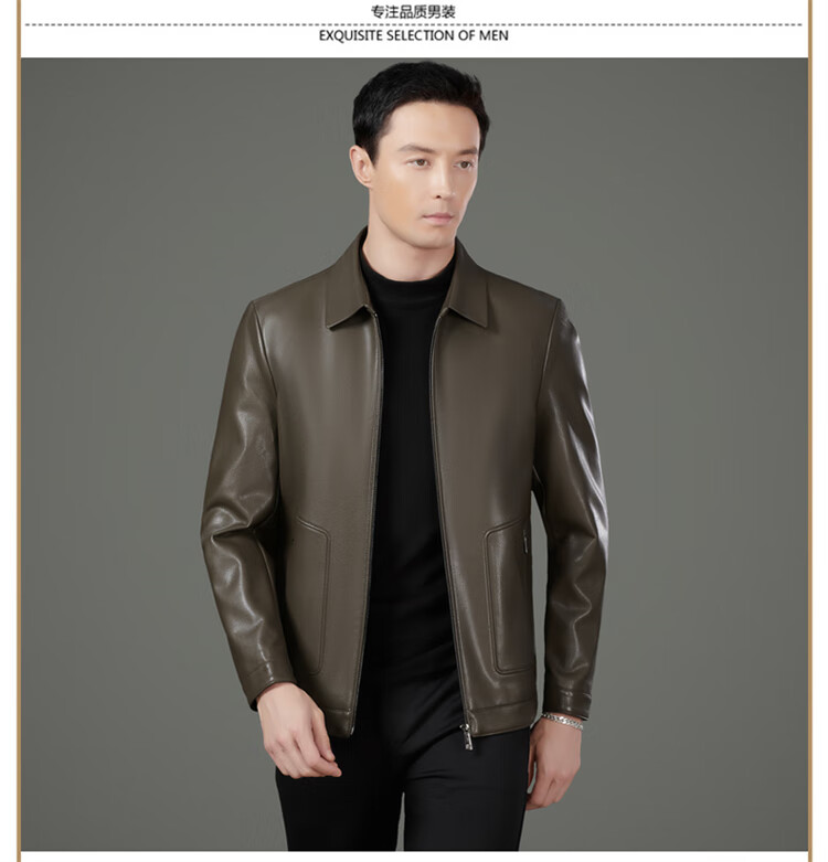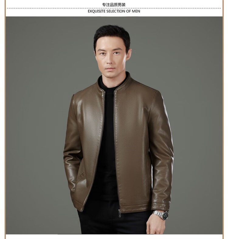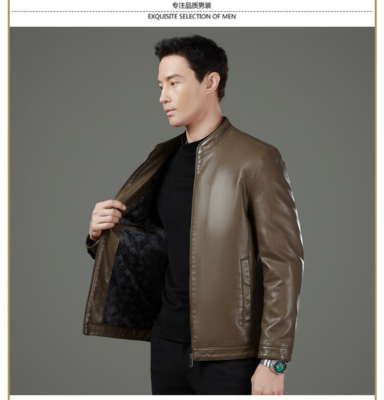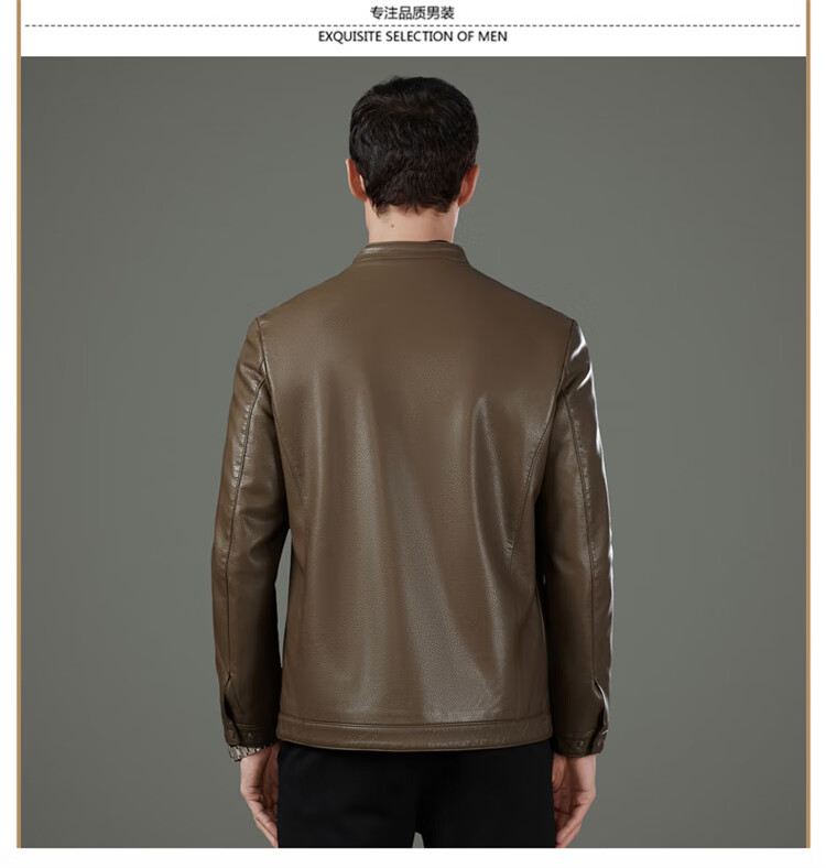 KBHONG Jinba Leather Jacket Spring and Autumn Men's Business Casual Middle-aged Dad Stand Collar Jacket Khaki-Lapel-Winter 8033 Velvet M 170