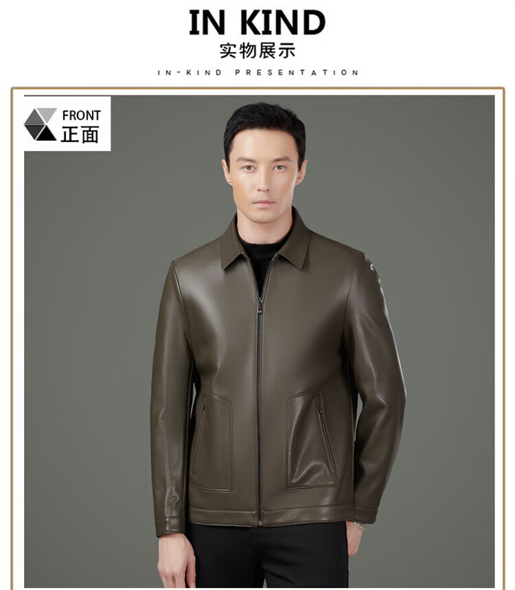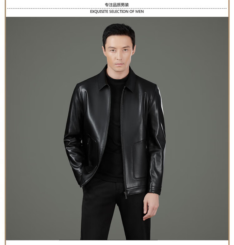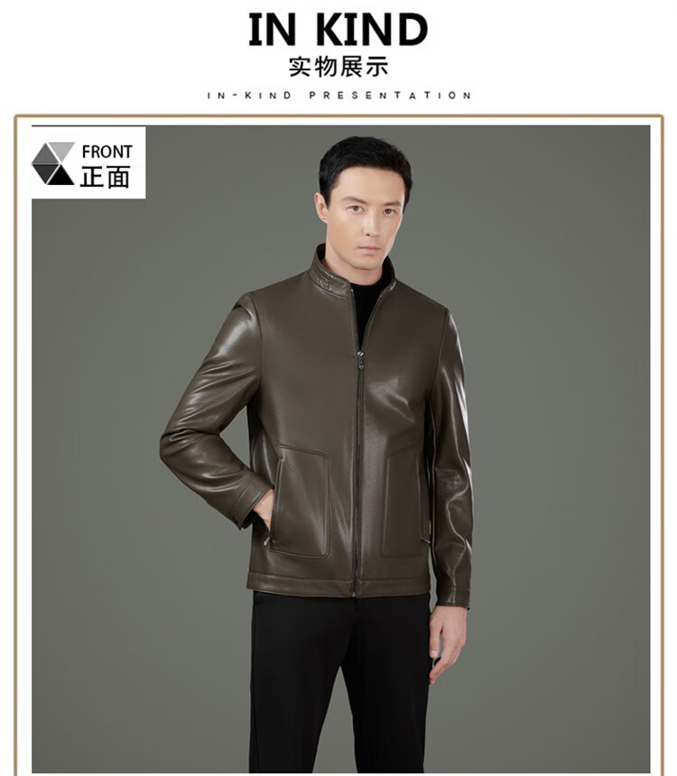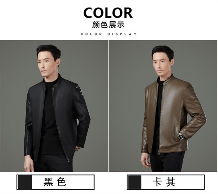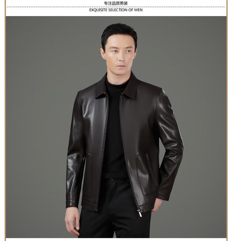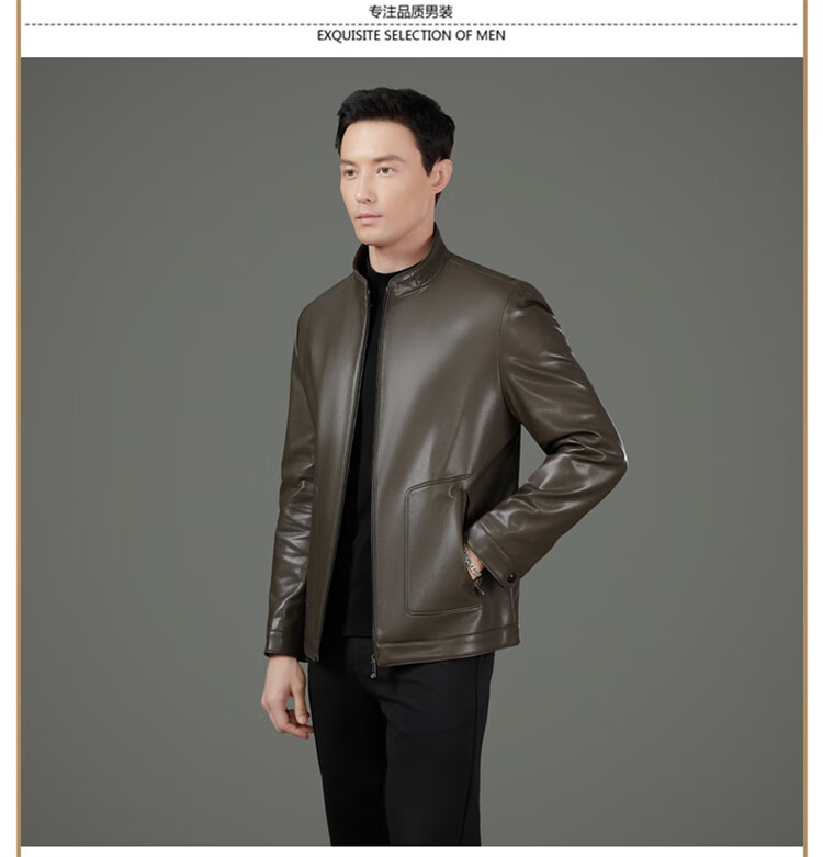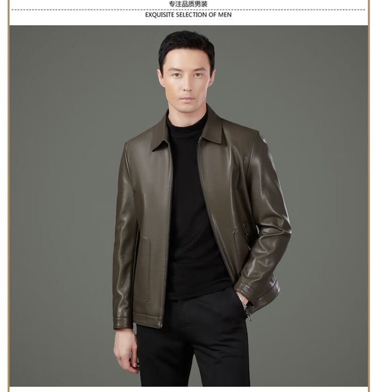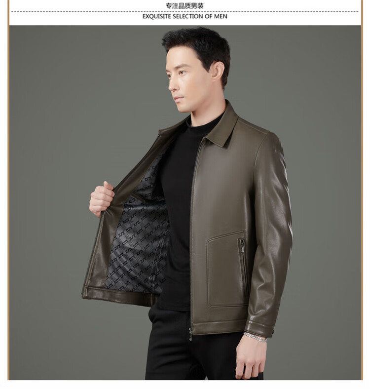 KBHONG Jinba Leather Jacket Spring and Autumn Men's Business Casual Middle-aged Dad Stand Collar Jacket Khaki-Lapel-Winter 8033 Velvet M 170