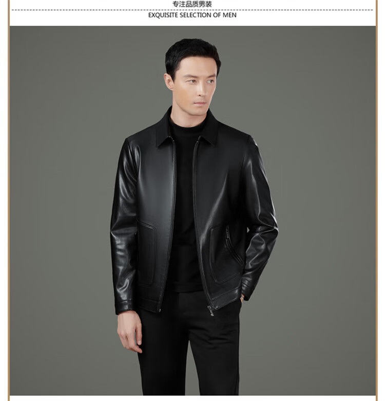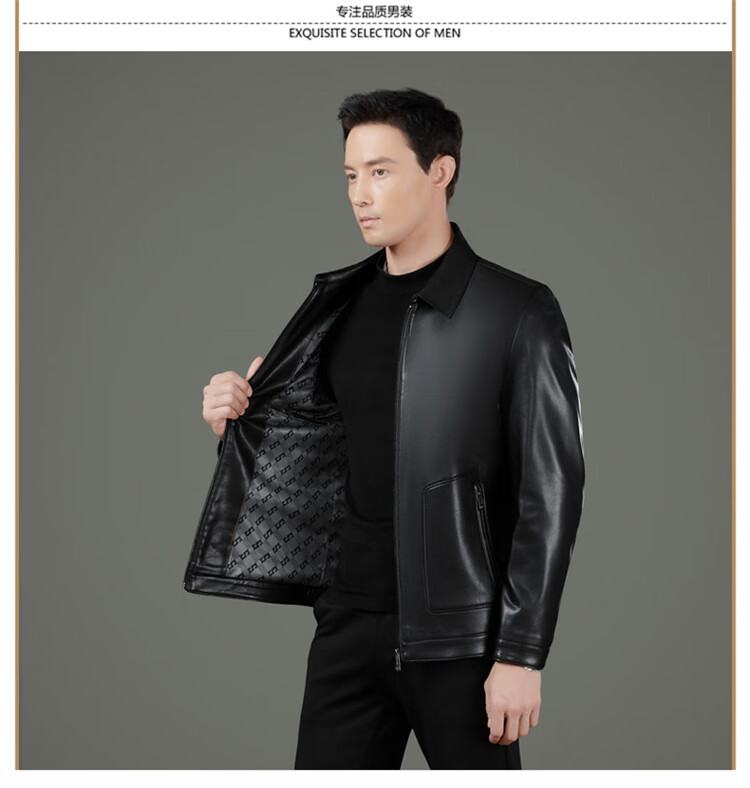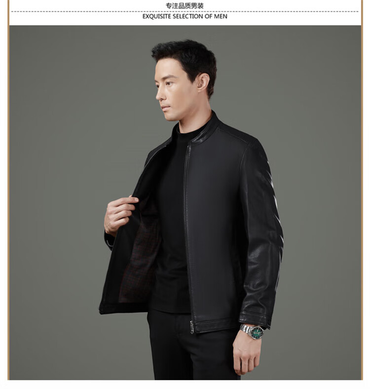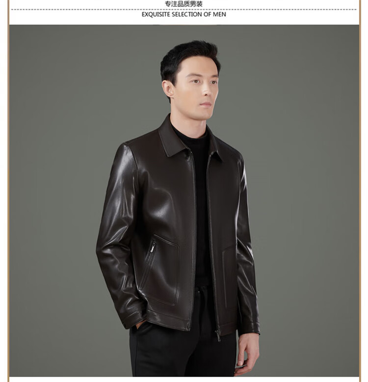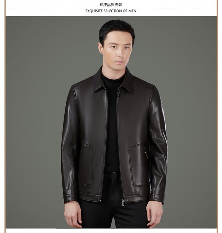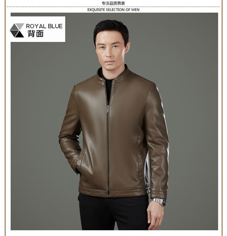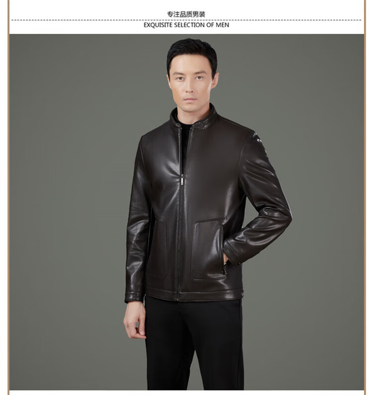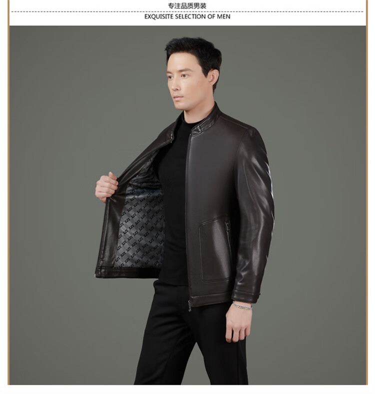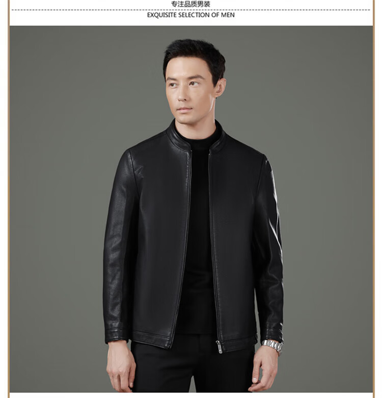 KBHONG Jinba Leather Jacket Spring and Autumn Men's Business Casual Middle-aged Dad Stand Collar Jacket Khaki-Lapel-Winter 8033 Velvet M 170