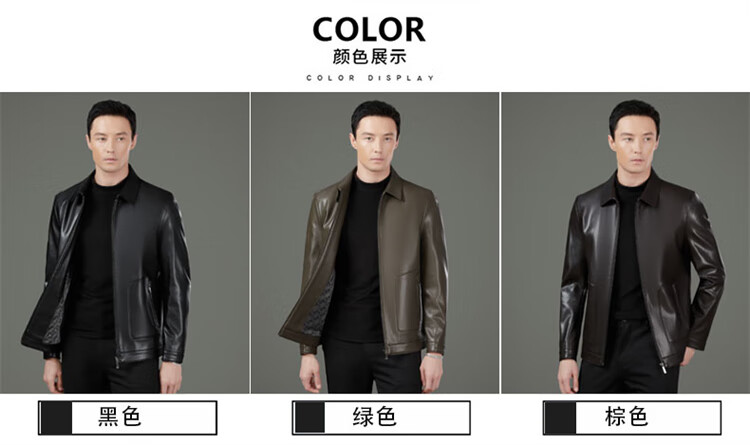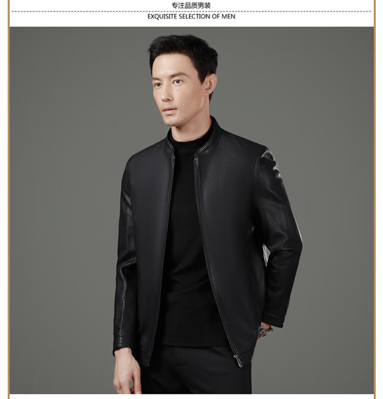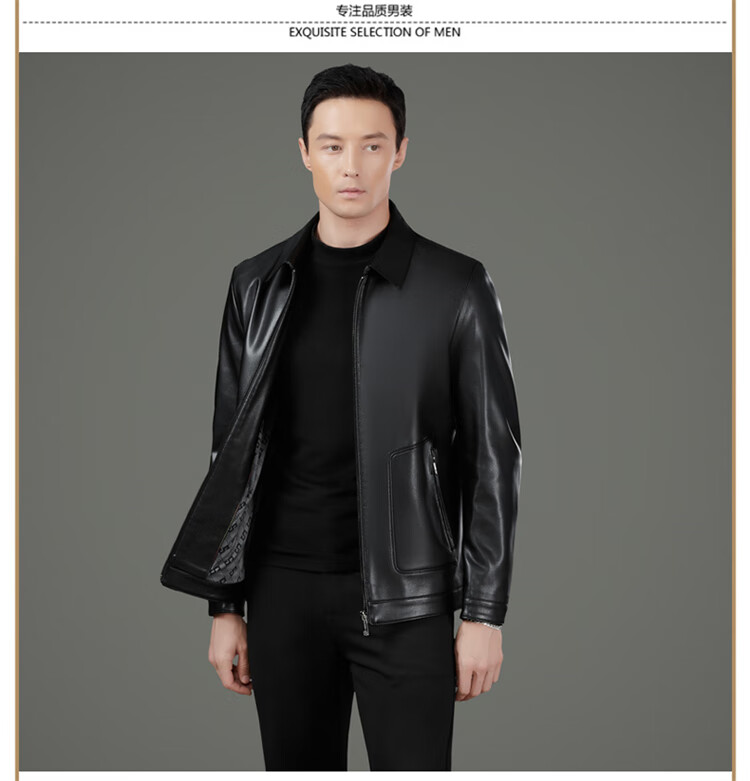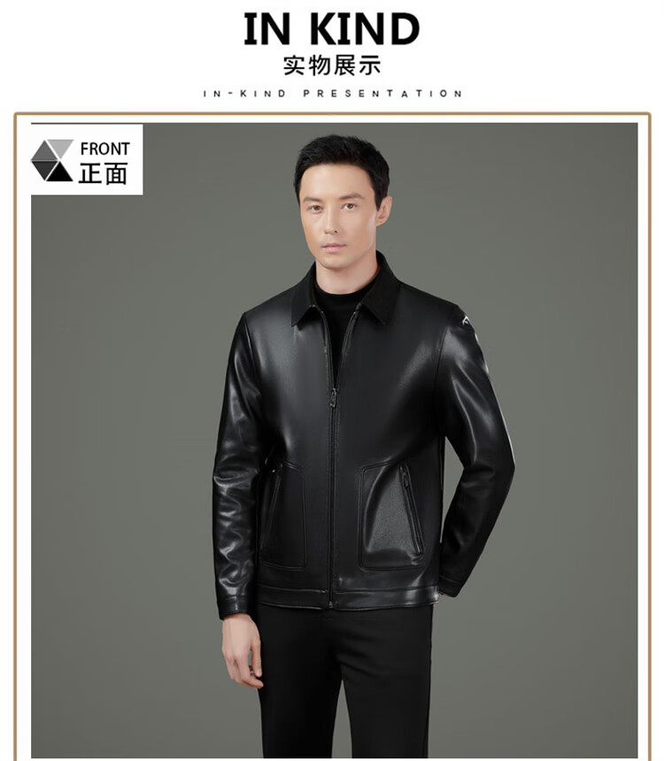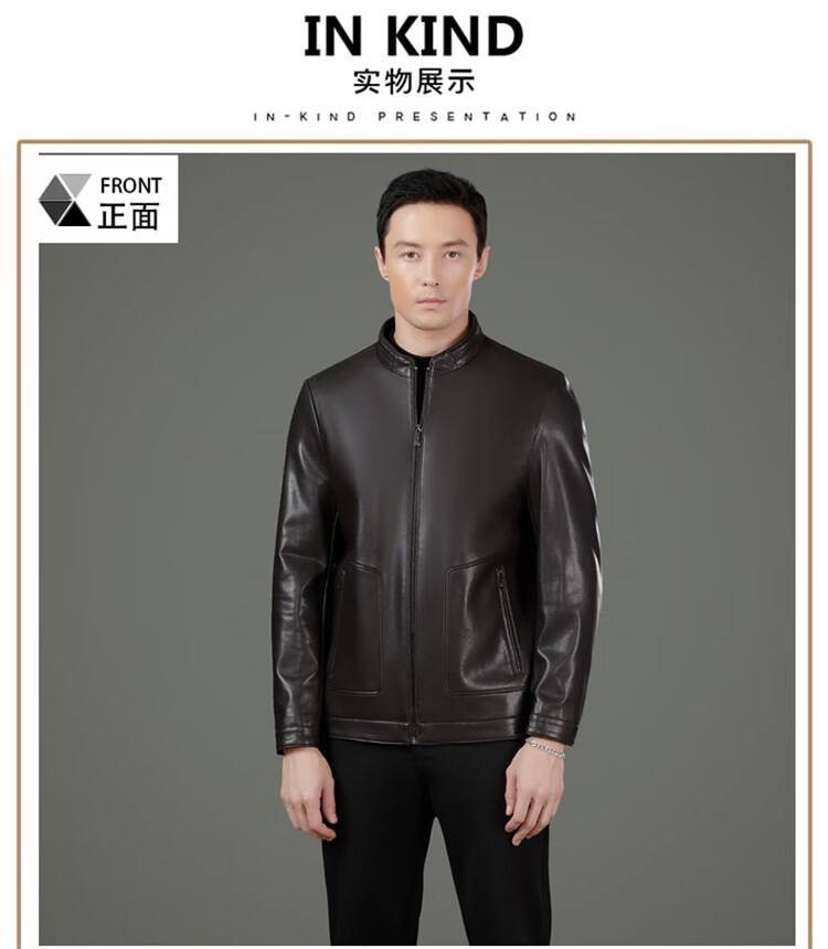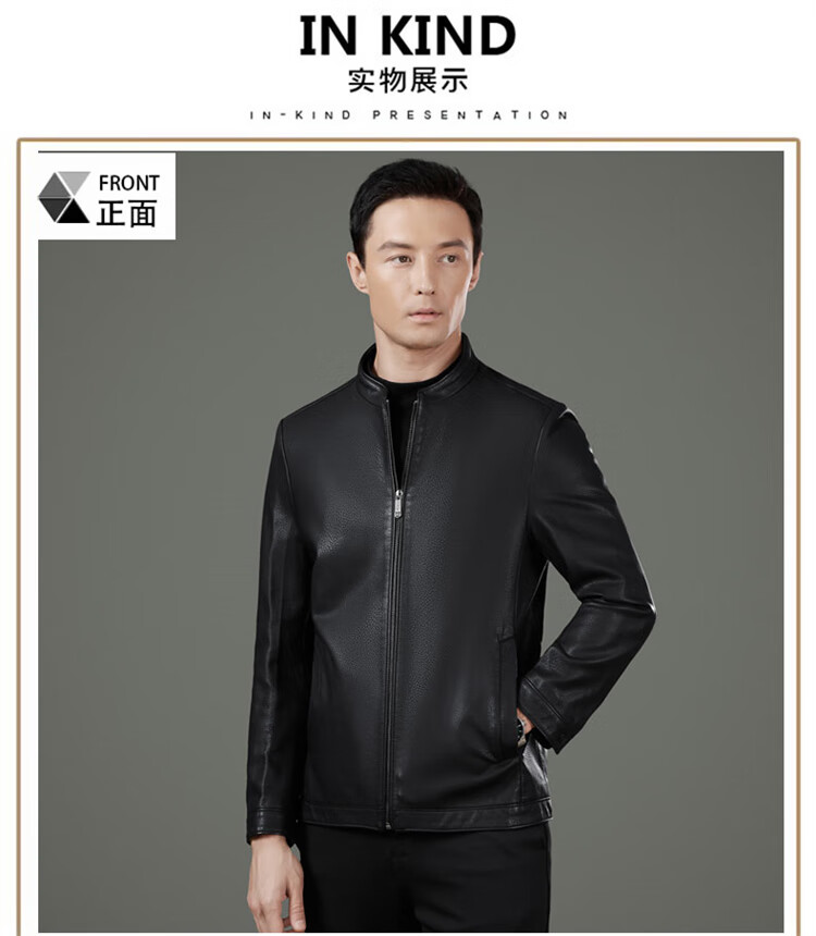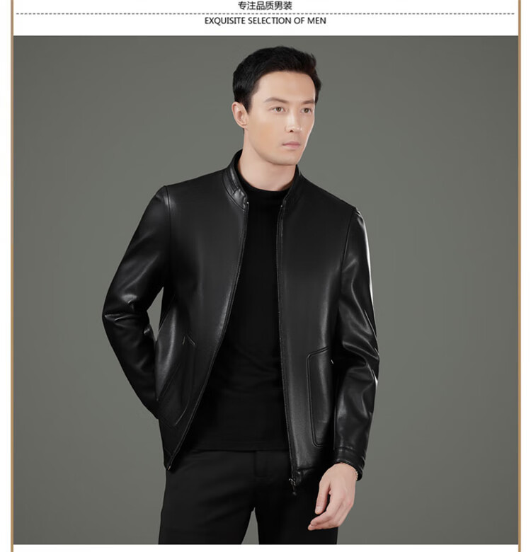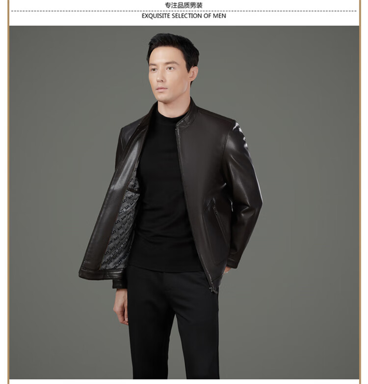 KBHONG Jinba Leather Jacket Spring and Autumn Men's Business Casual Middle-aged Dad Stand Collar Jacket Khaki-Lapel-Winter 8033 Velvet M 170
