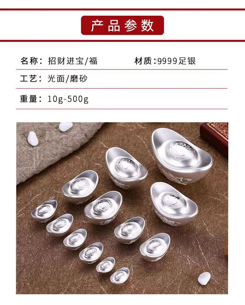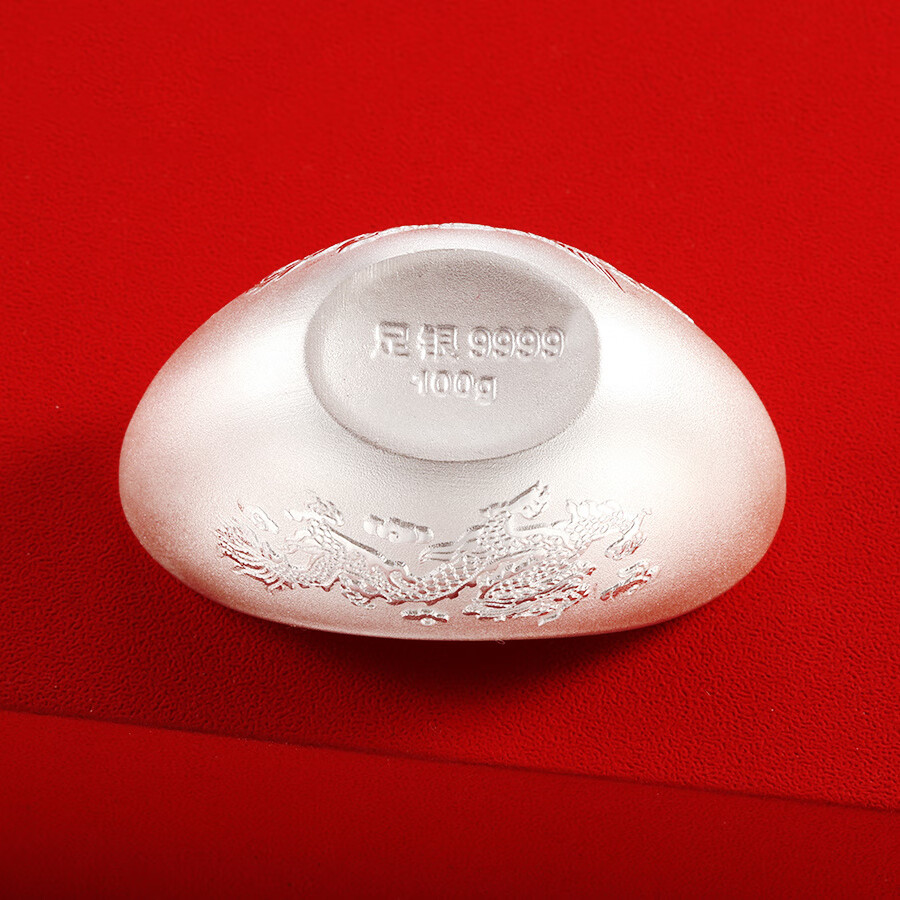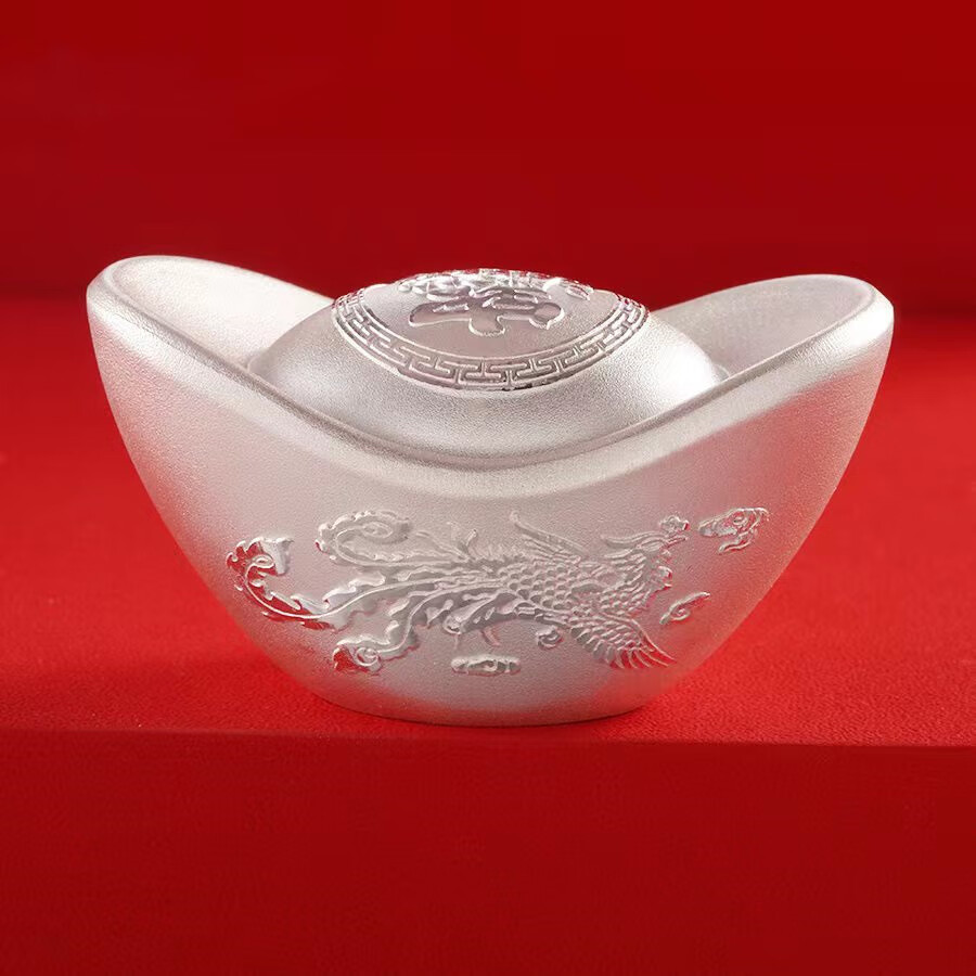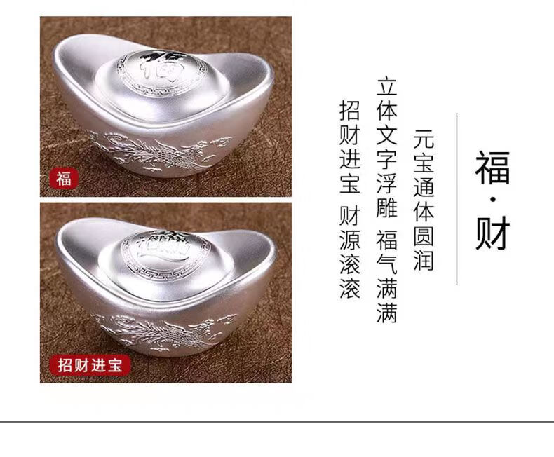 China Silver Pure Silver 9999 Solid Silver Yuan Bao Glossy Dragon and Phoenix Chengxiang Investment Collection Gifts Fake One Will Pay Ten Pounds China Silver 9999 (Formula of Fortune and Treasures) With Certificate Fake One Will Pay Ten Pounds 100g