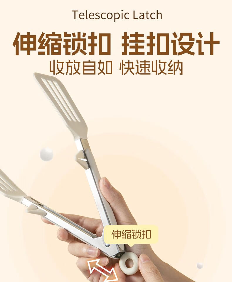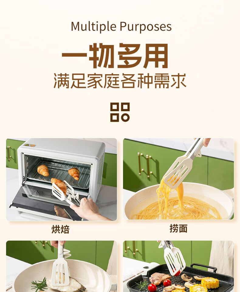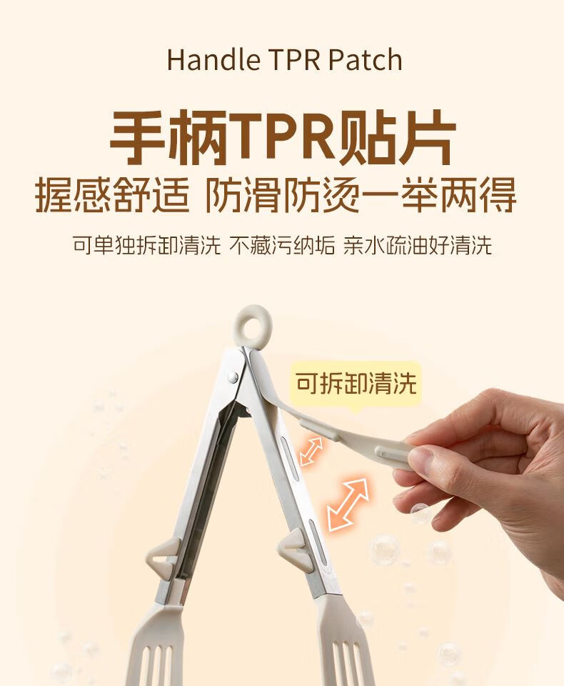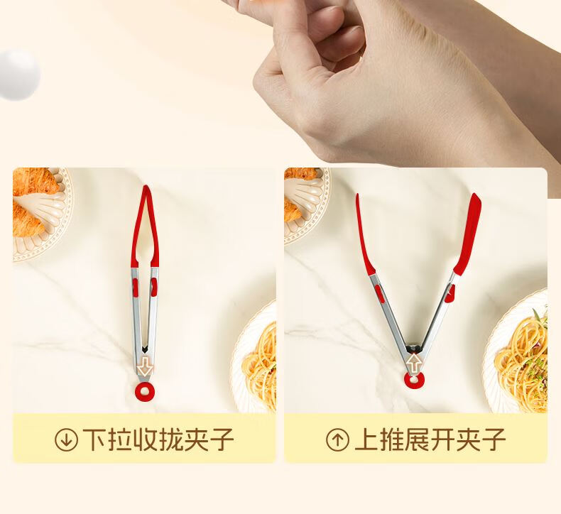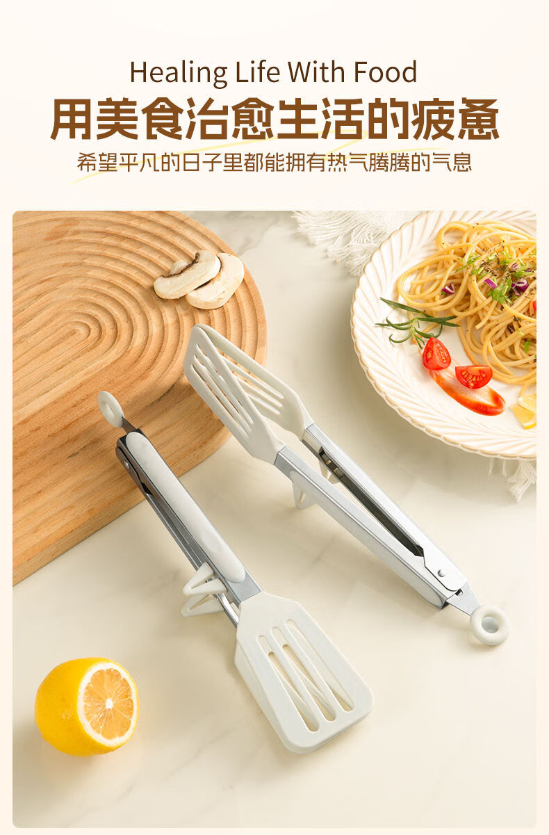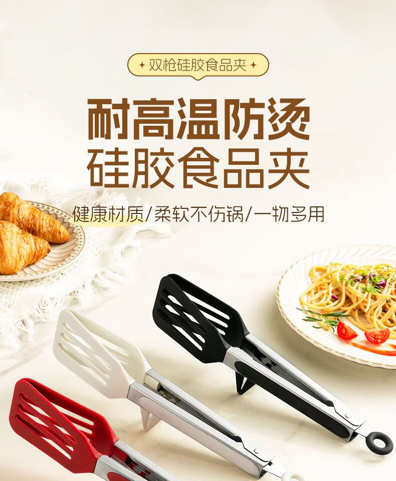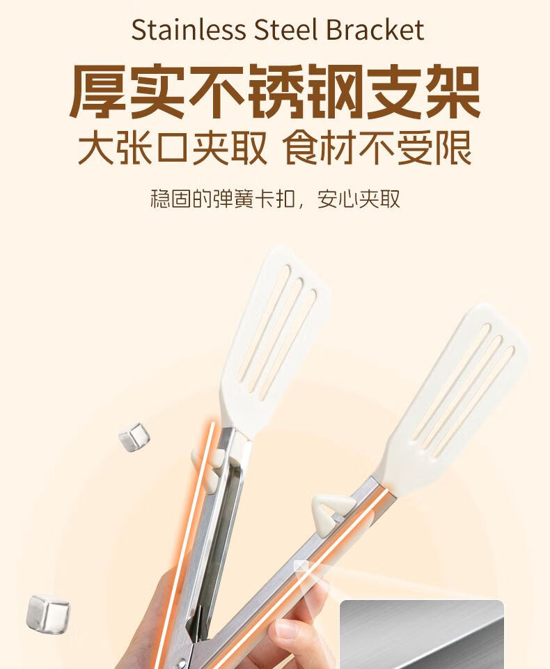 Tuojin imported high-quality silicone clips from Germany, high-temperature kitchen food frying stainless steel fried steak clips, special for stir-frying, silicone food clips, cream white - upgraded model, can be used as a frying spatula