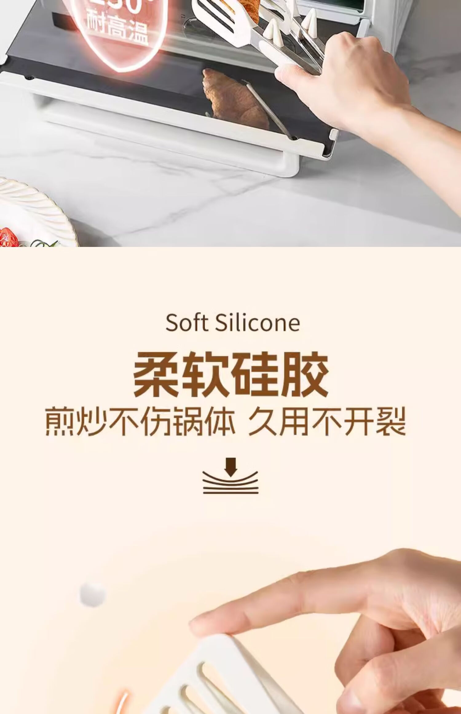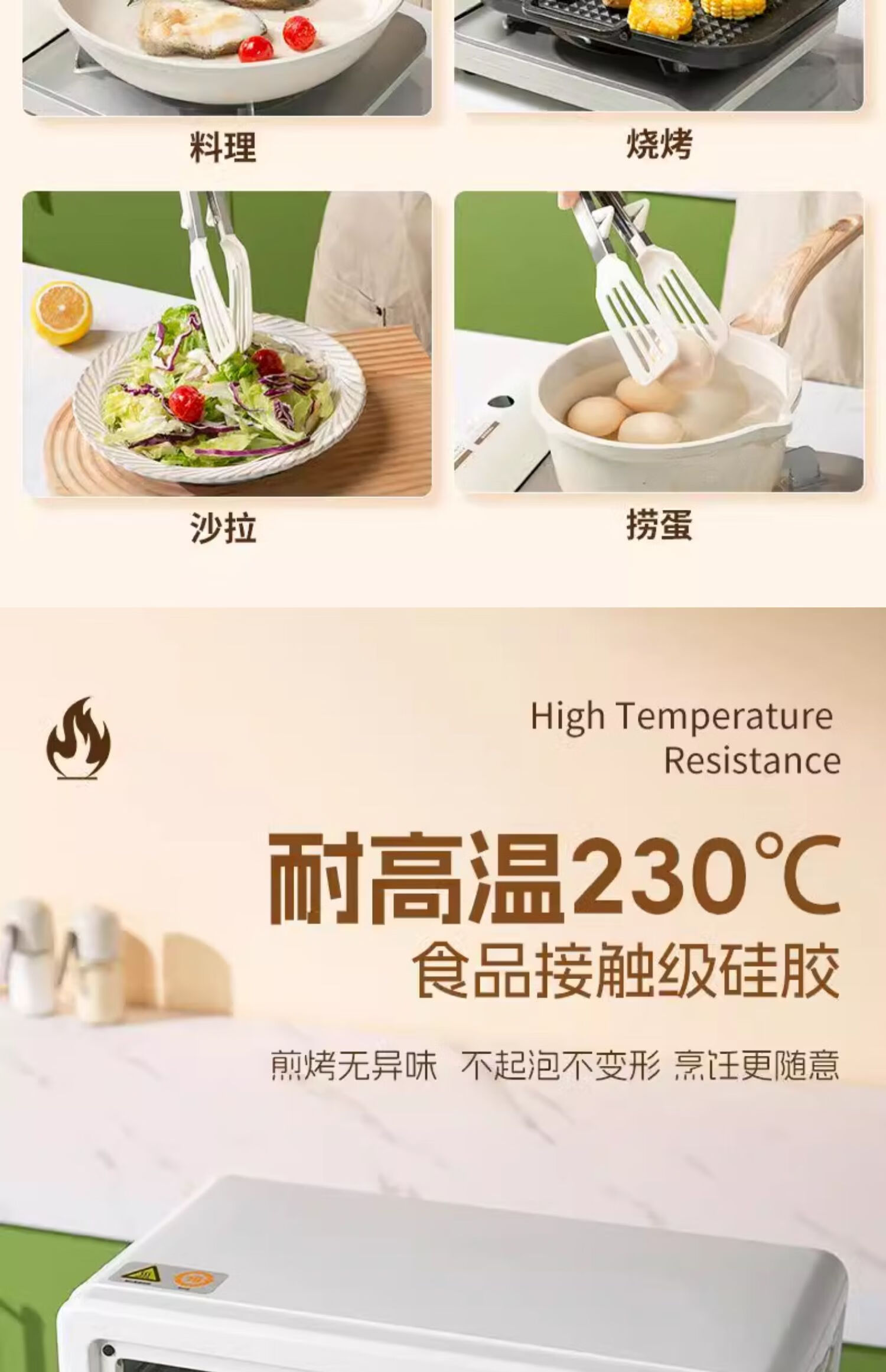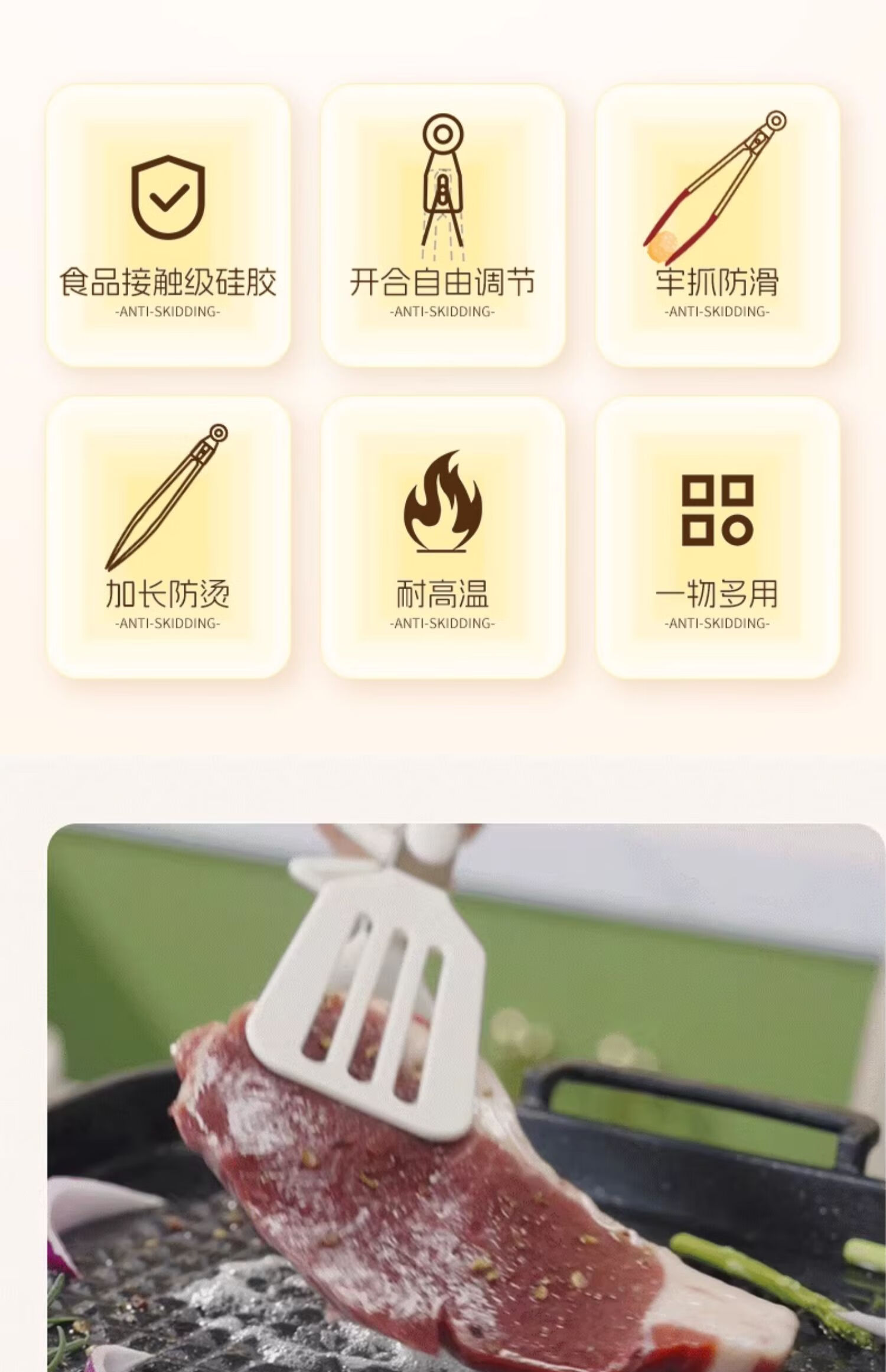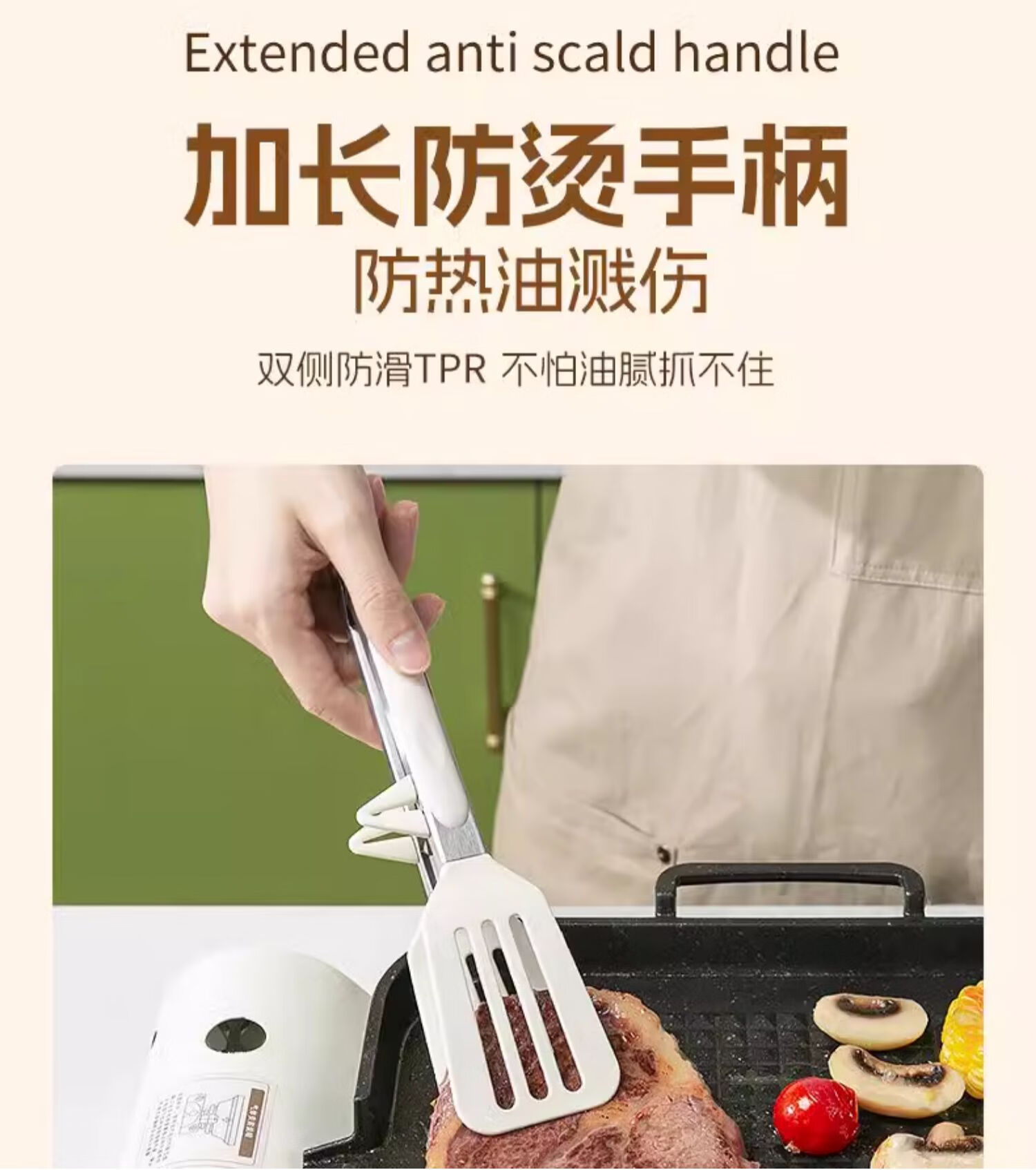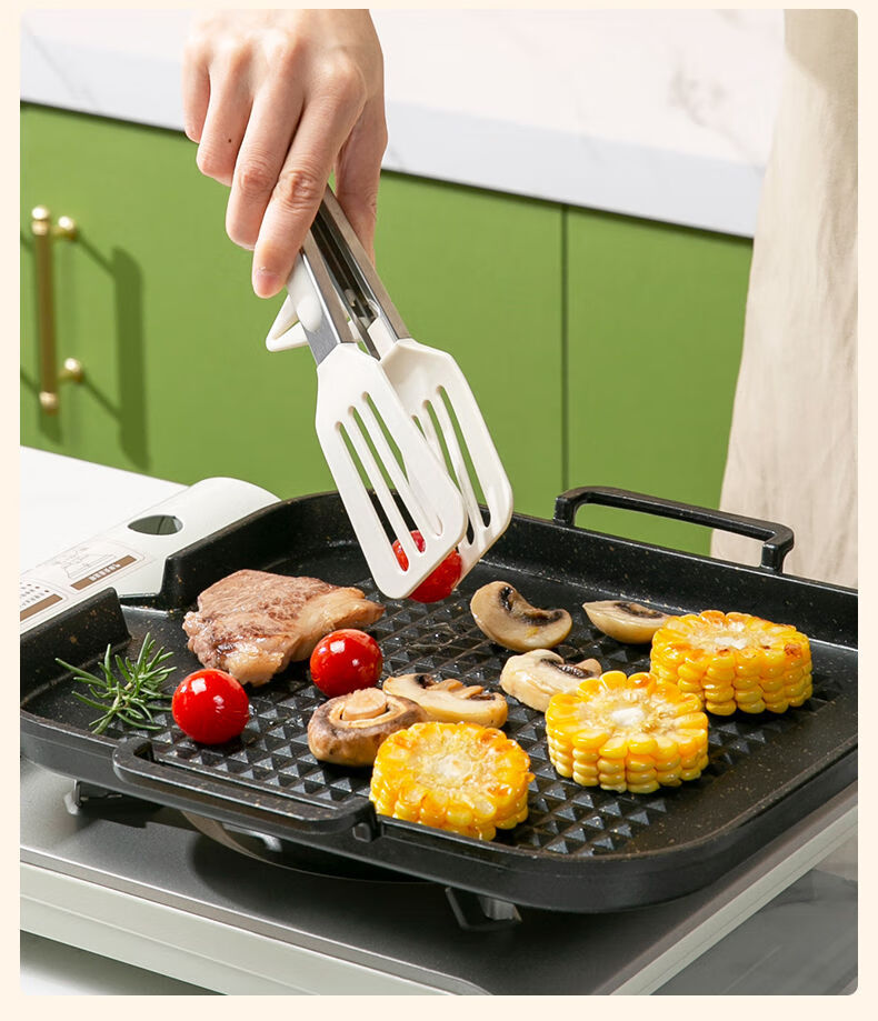 Tuojin imported high-quality silicone clips from Germany, high-temperature kitchen food frying stainless steel fried steak clips, special for stir-frying, silicone food clips, cream white - upgraded model, can be used as a frying spatula