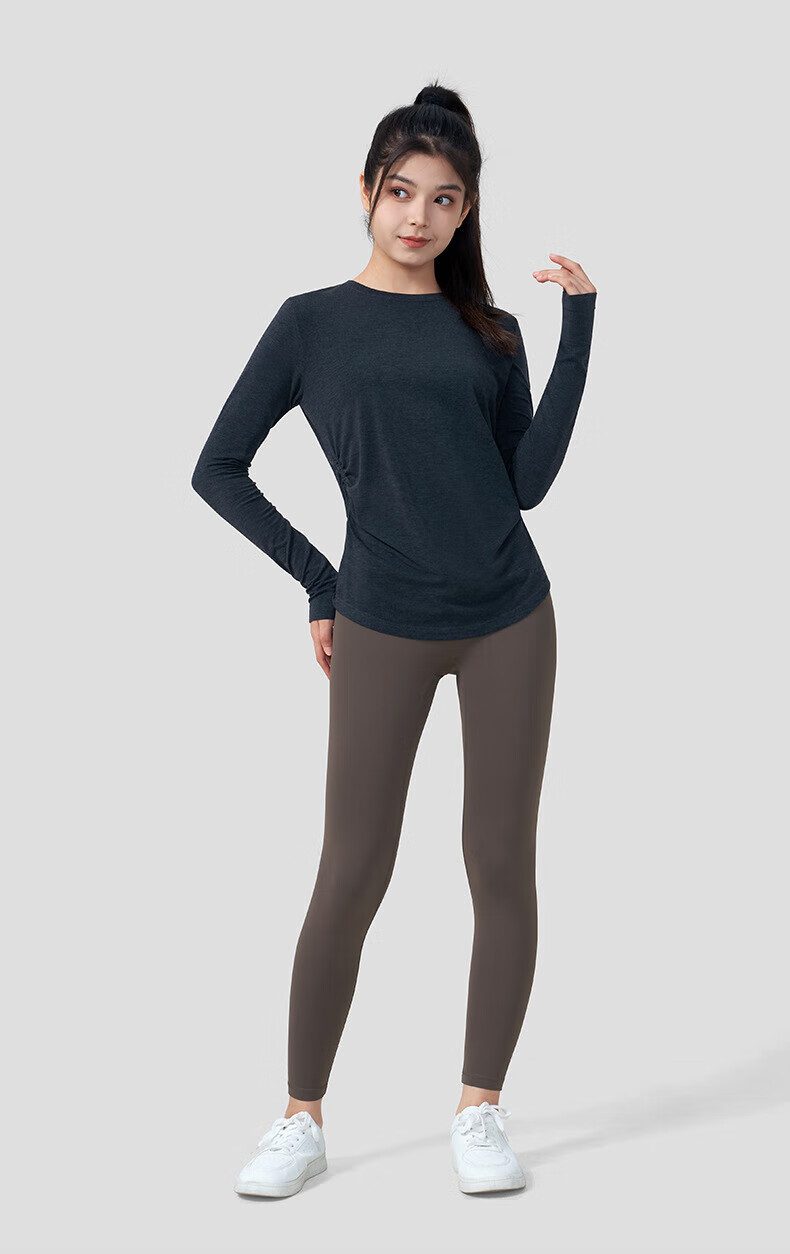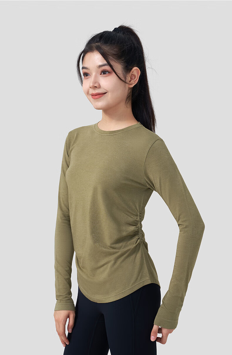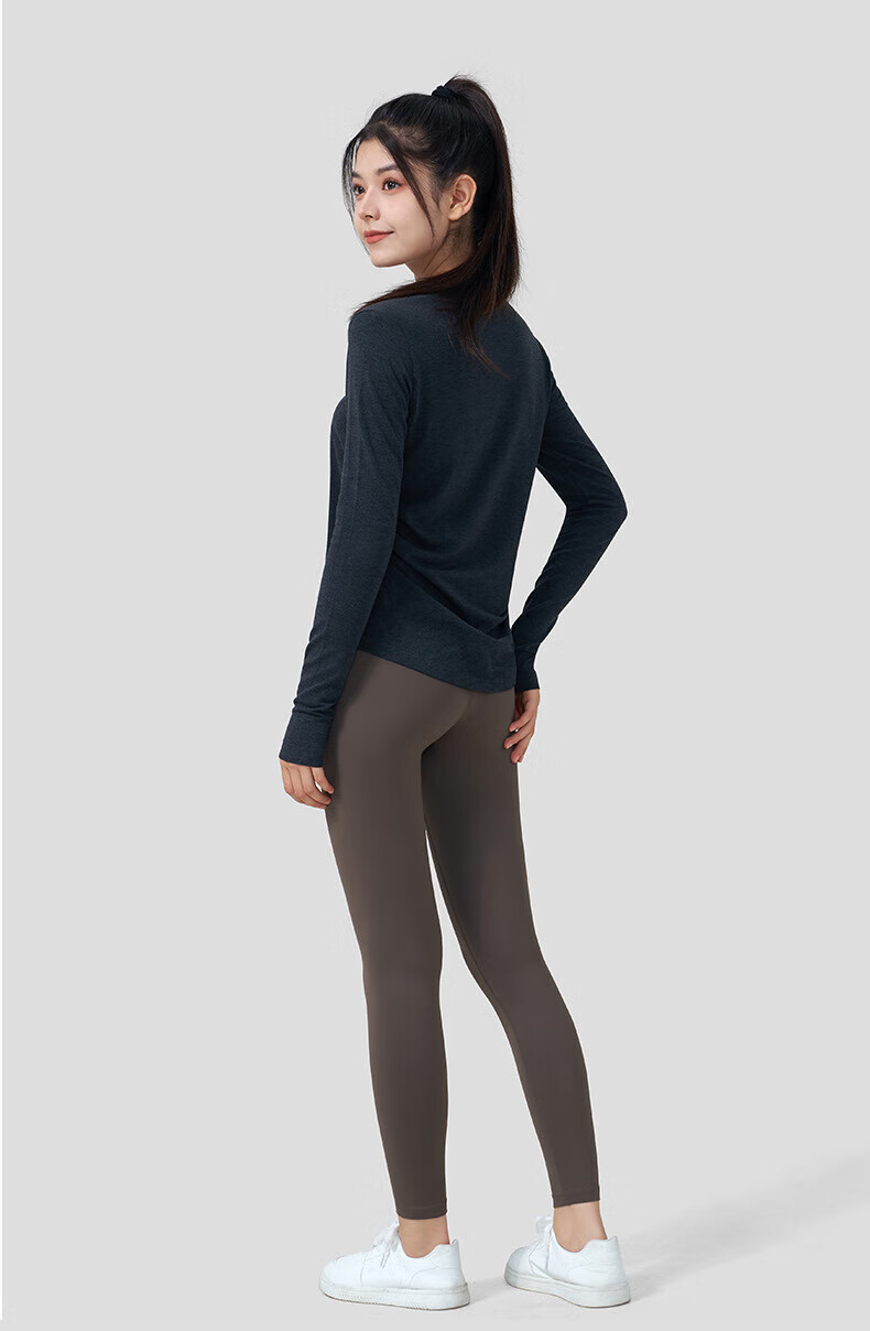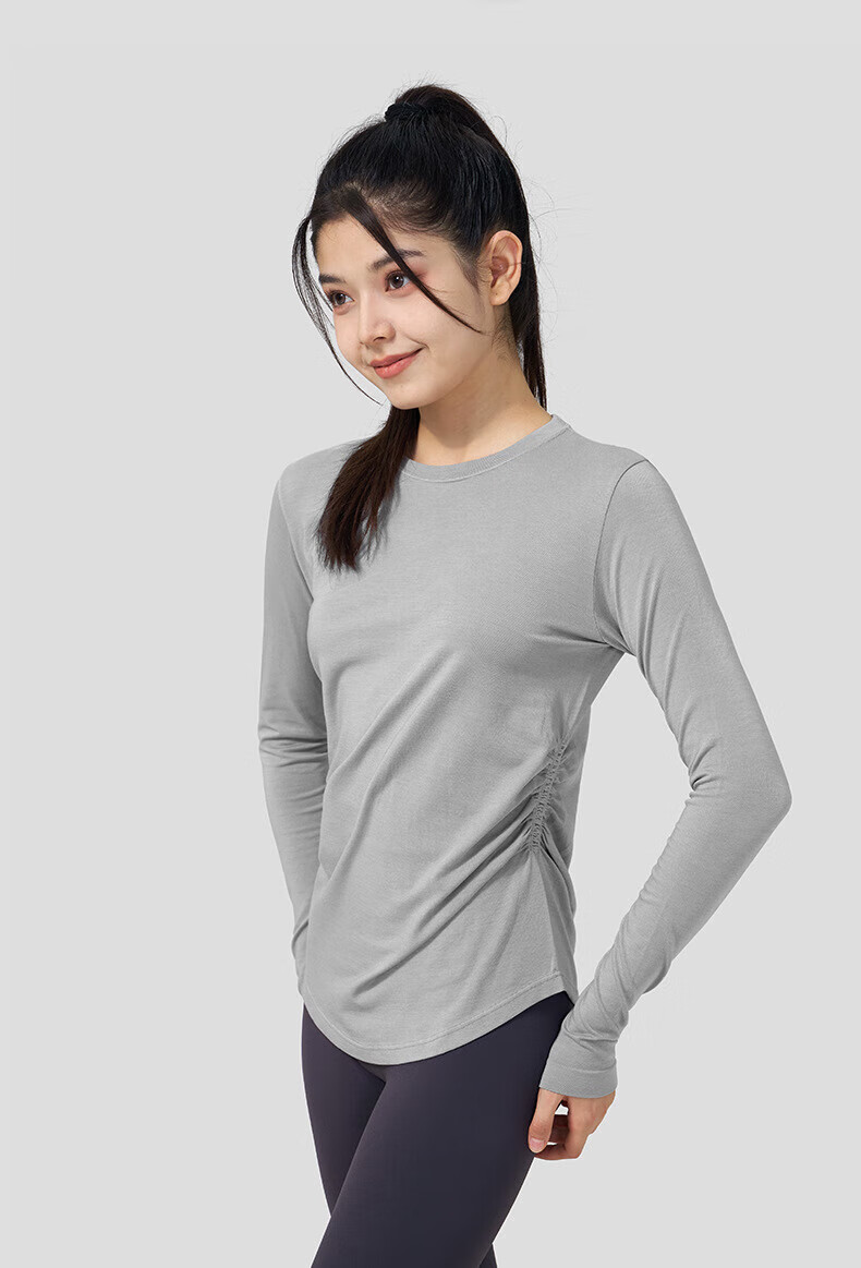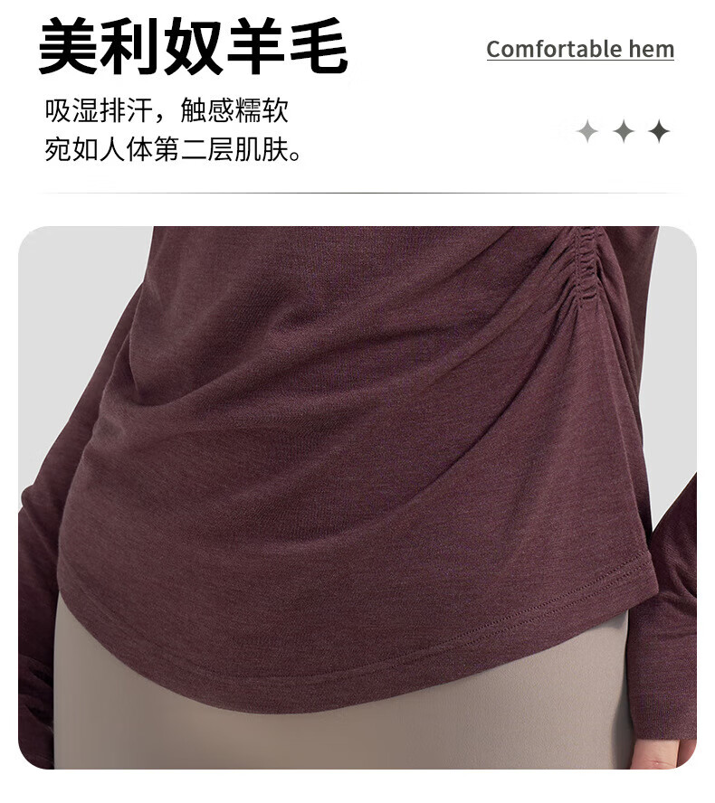 Duofanlian merino wool T-shirt yoga long-sleeved pleated slim breathable casual Pilates wool quick-drying clothing for women black gray S 4 (90-100Jin Jin equals 0.5kg)