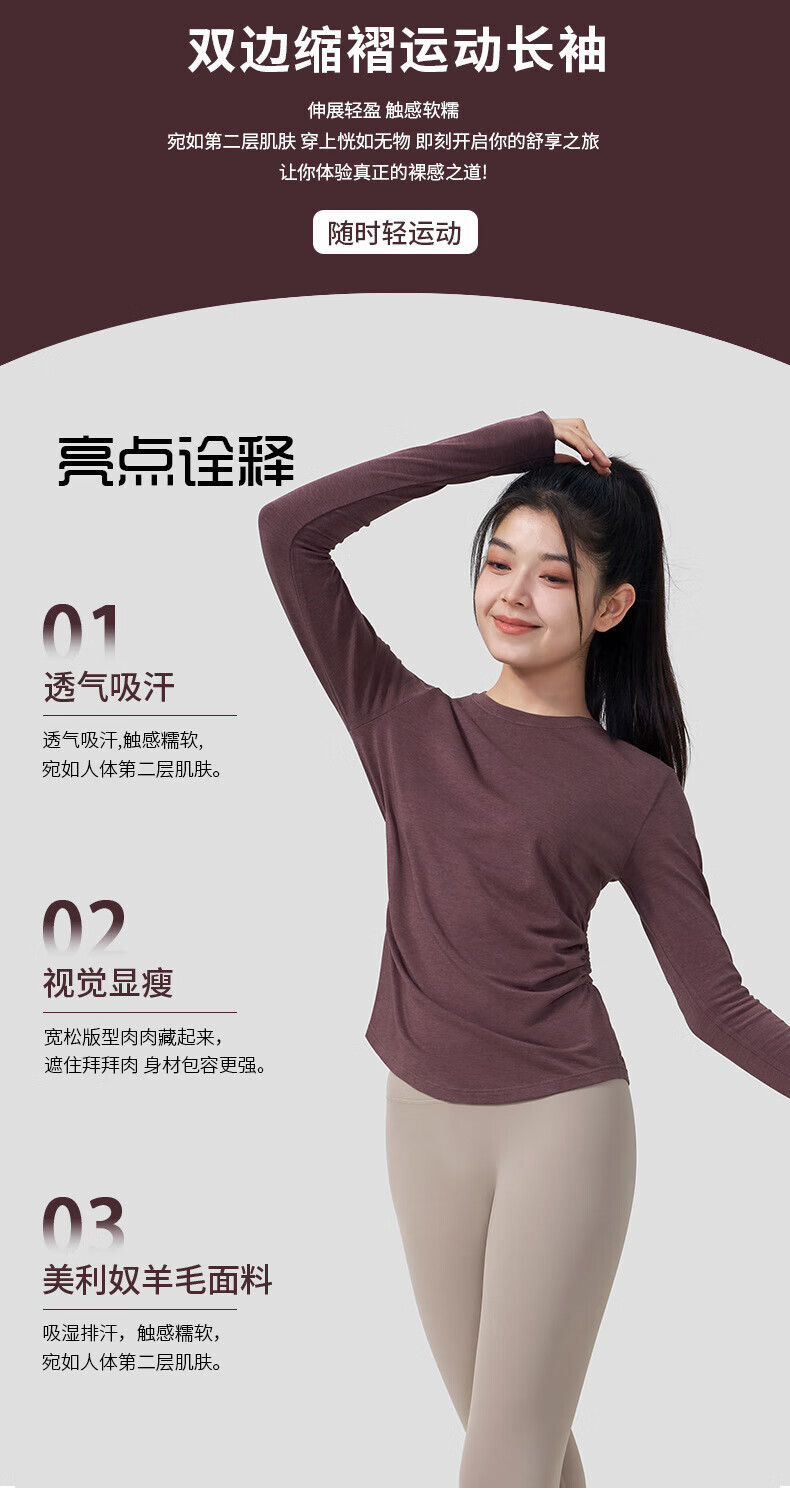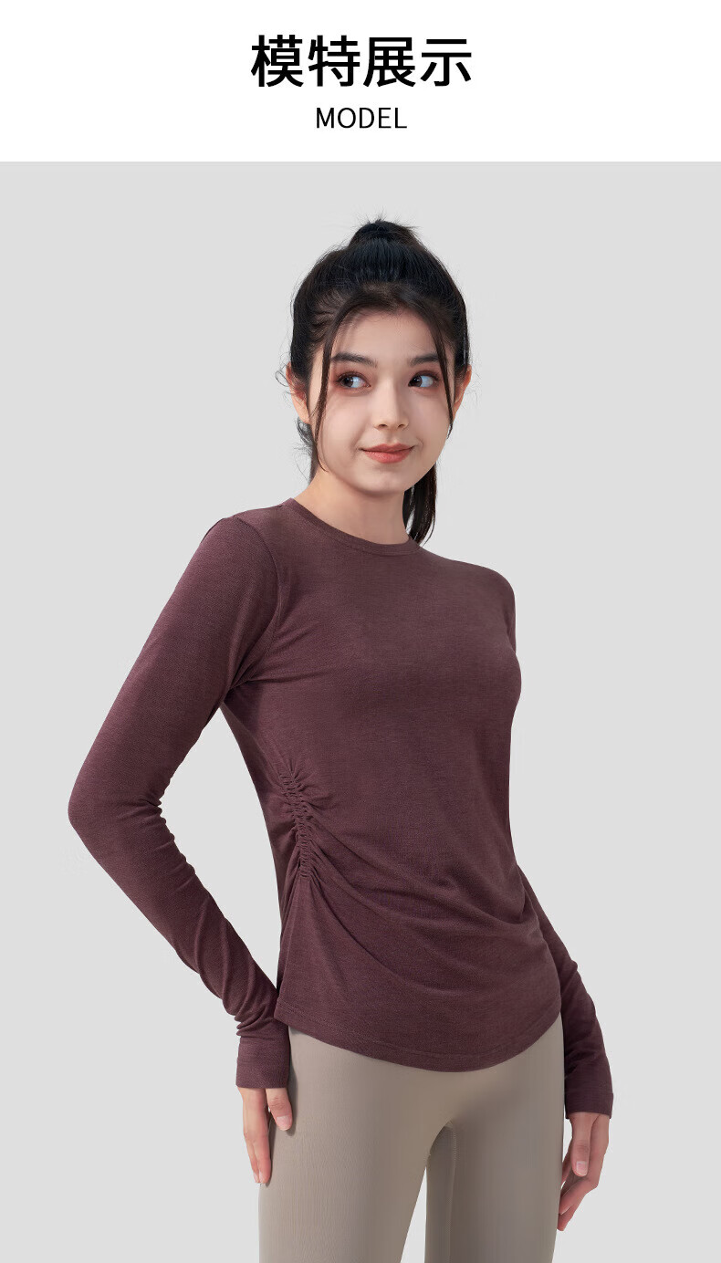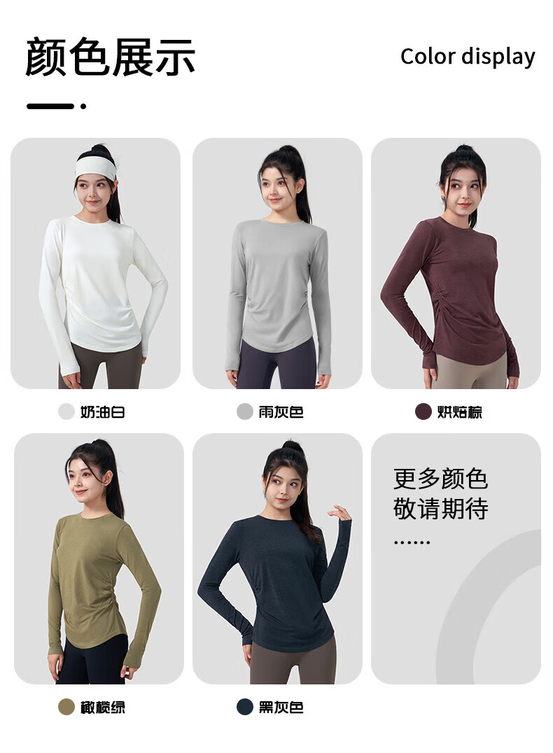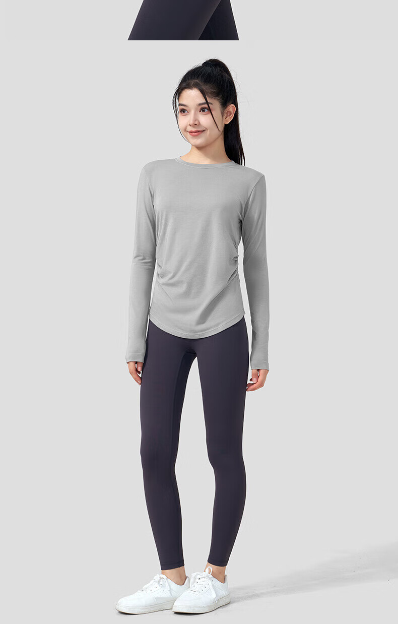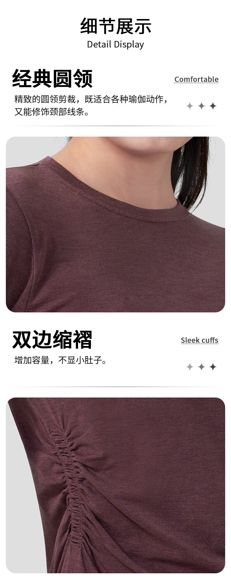 Duofanlian merino wool T-shirt yoga long-sleeved pleated slim breathable casual Pilates wool quick-drying clothing for women black gray S 4 (90-100Jin Jin equals 0.5kg)