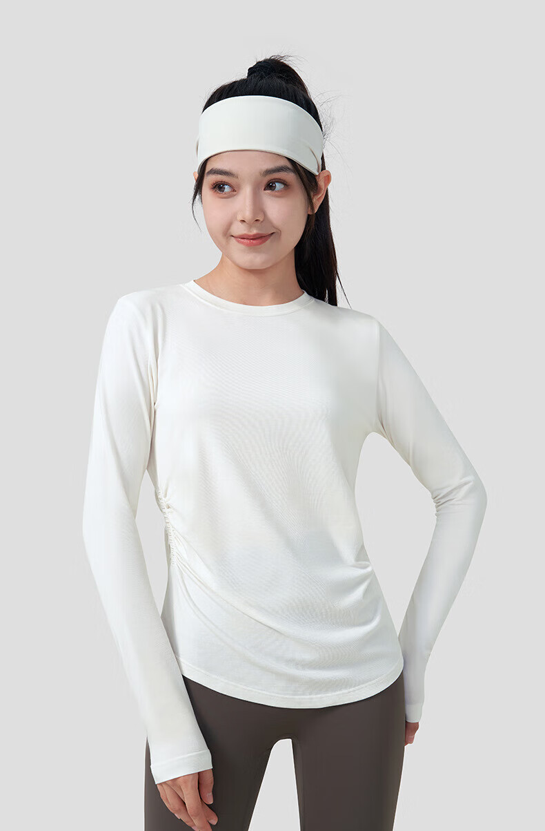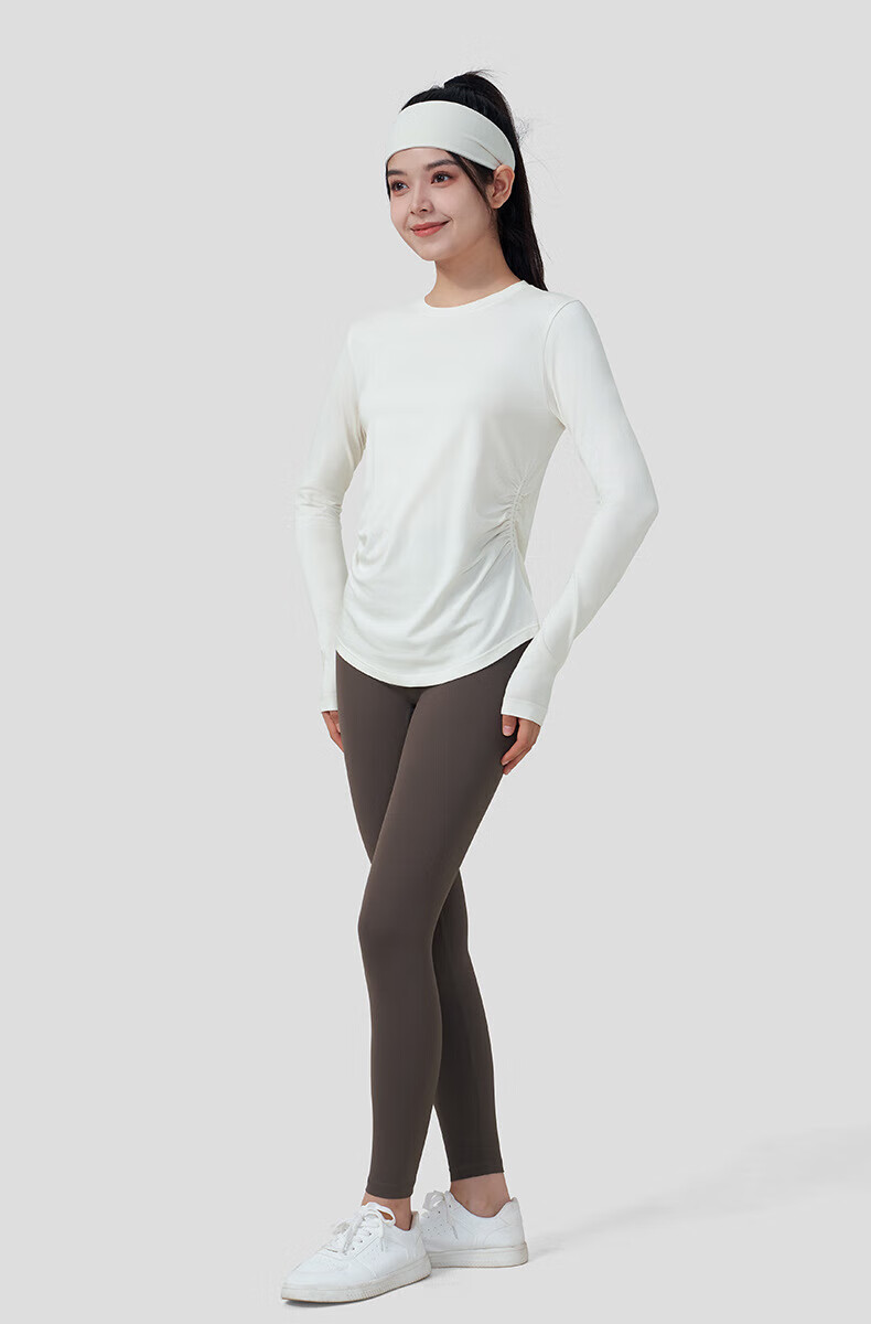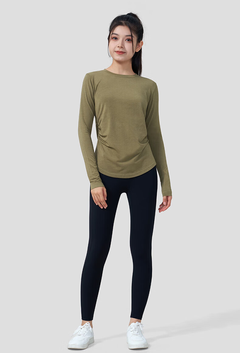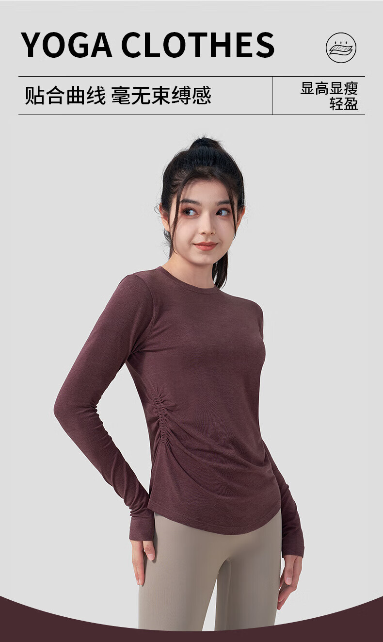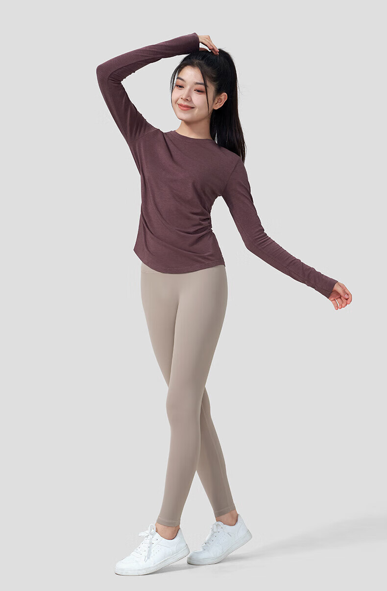 Duofanlian merino wool T-shirt yoga long-sleeved pleated slim breathable casual Pilates wool quick-drying clothing for women black gray S 4 (90-100Jin Jin equals 0.5kg)