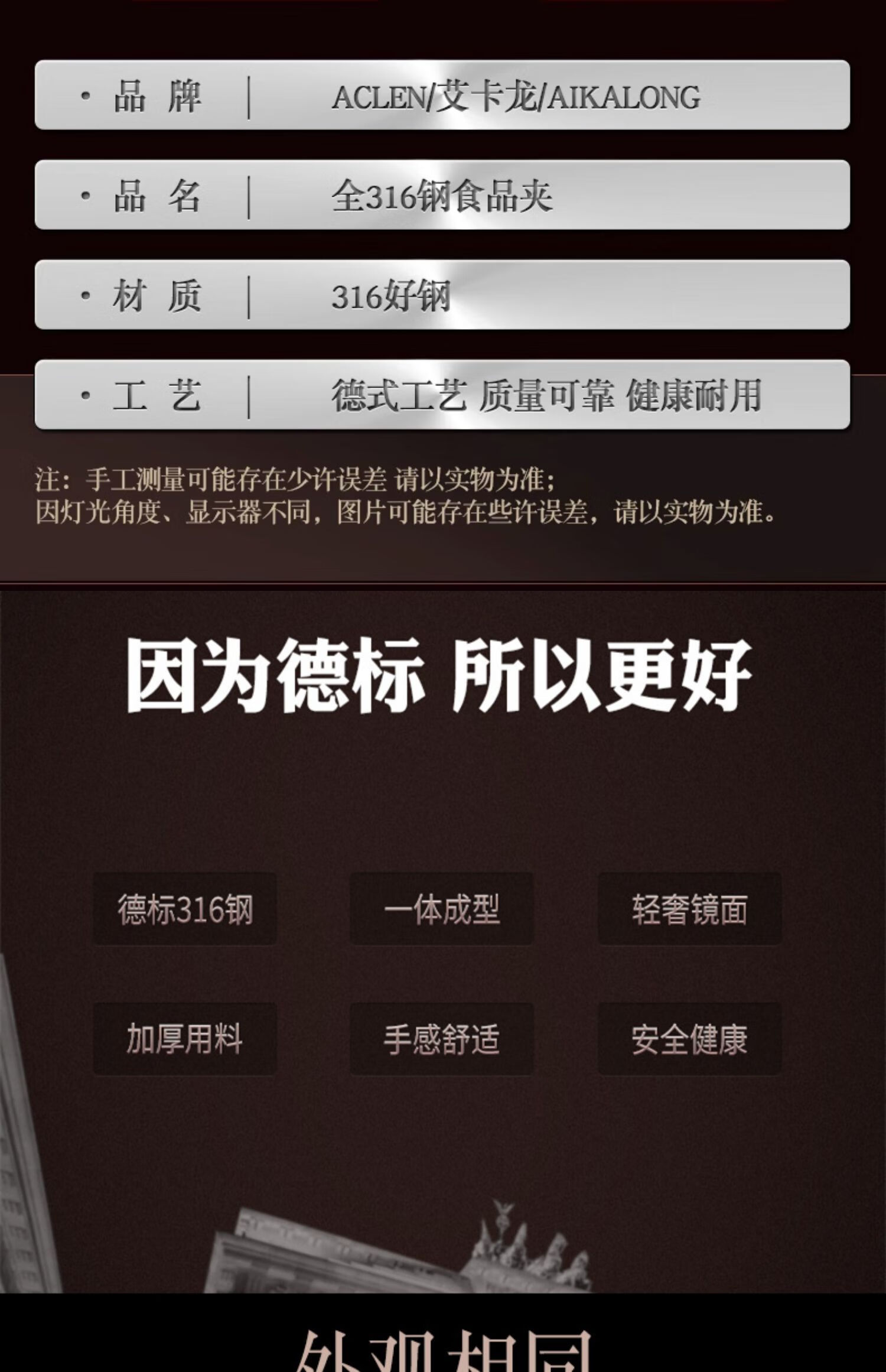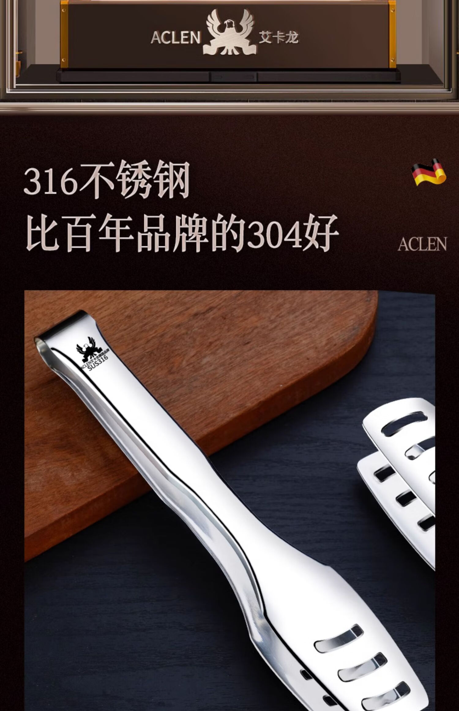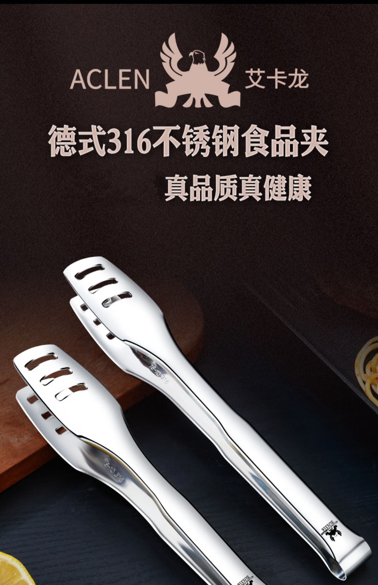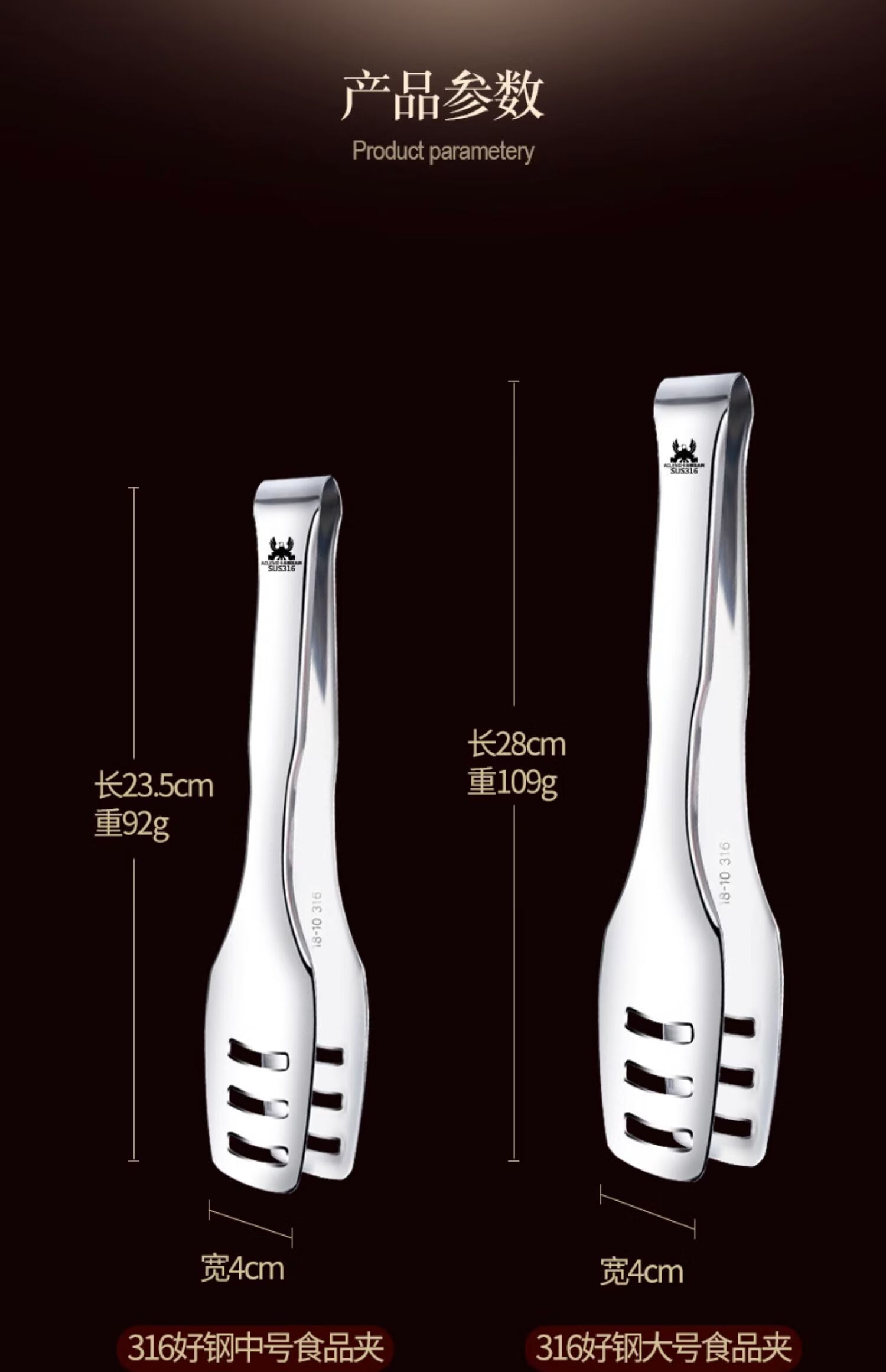 Tuojin imported quality food clips for kitchen merchants from Germany 316 stainless steel food clips for bakery baking and barbecue, all 316 good steel food clips, medium length 23.5cm