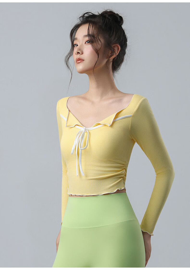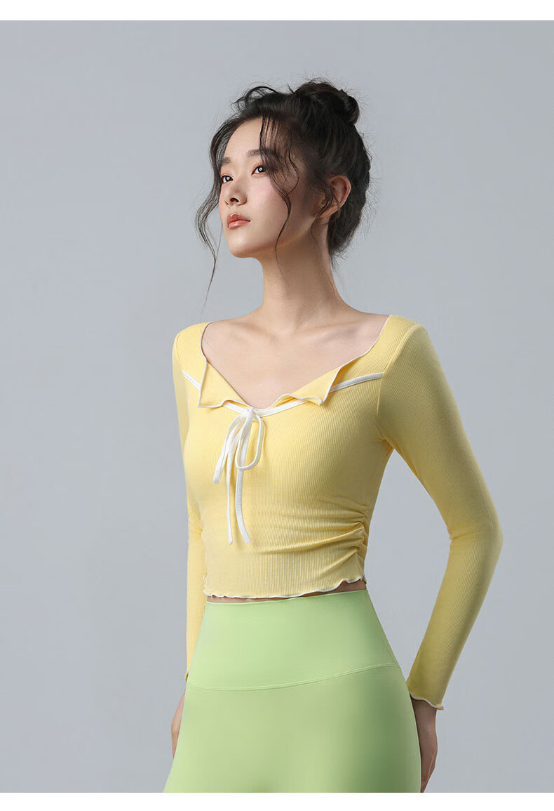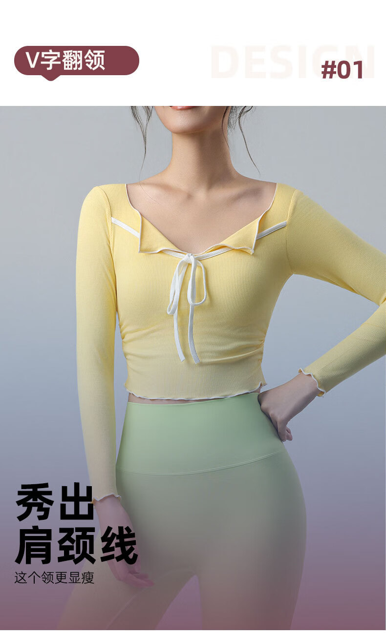 Duofanlian sports fitness clothing sweet yoga clothing with chest pad top tight Pilates running sports long sleeves 2025 new chestnut color S