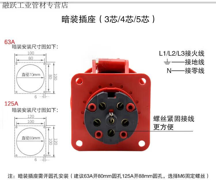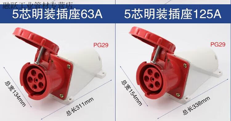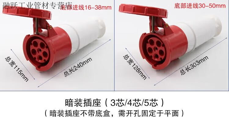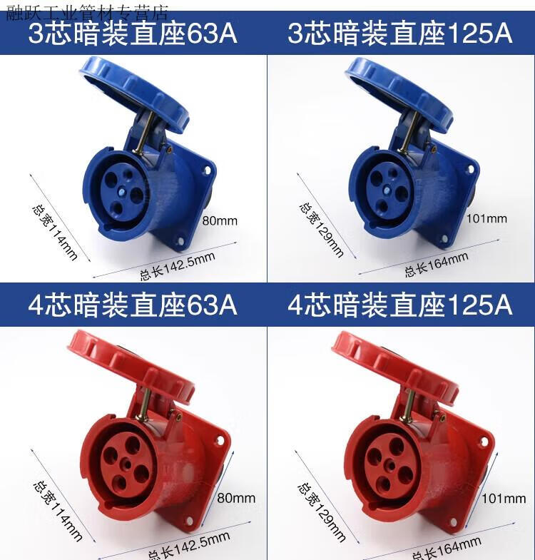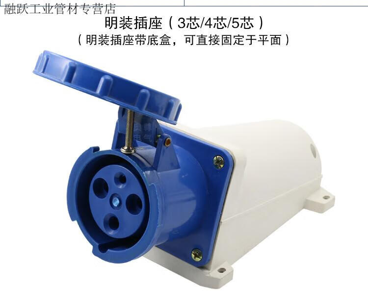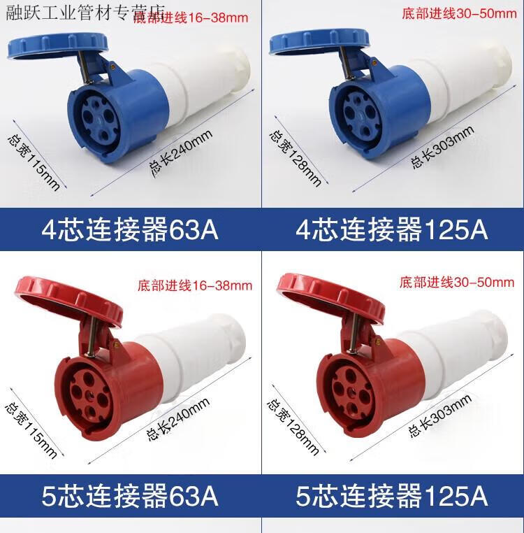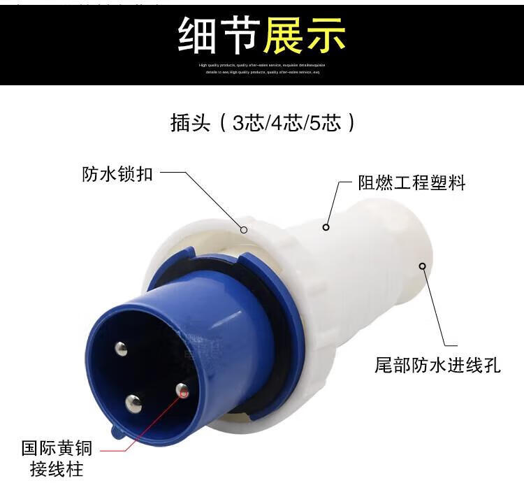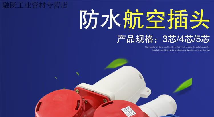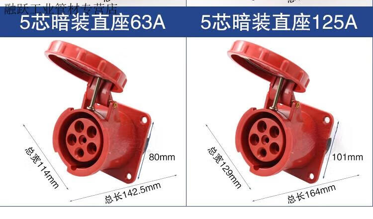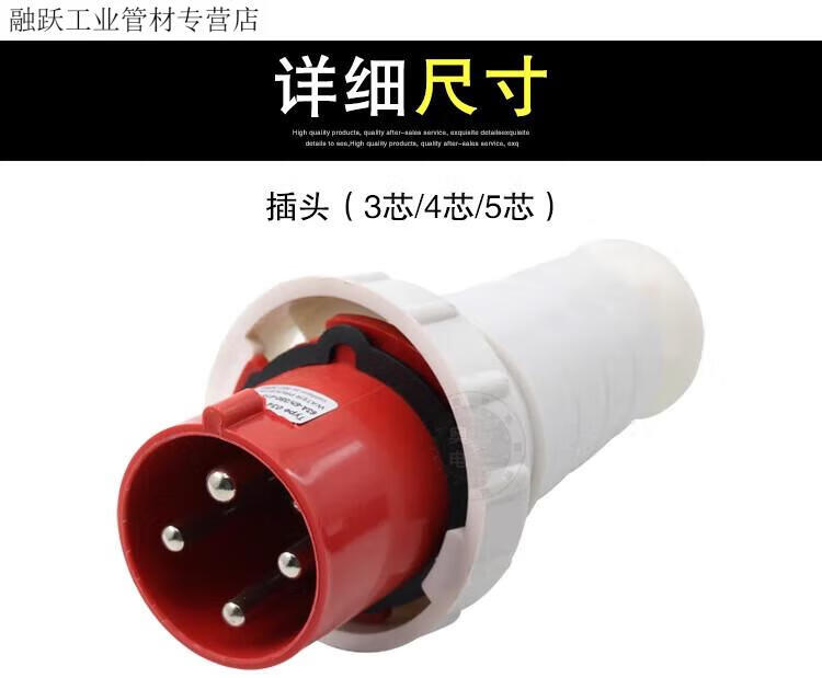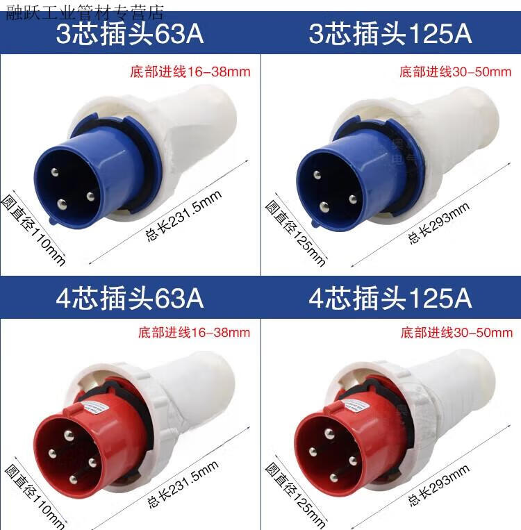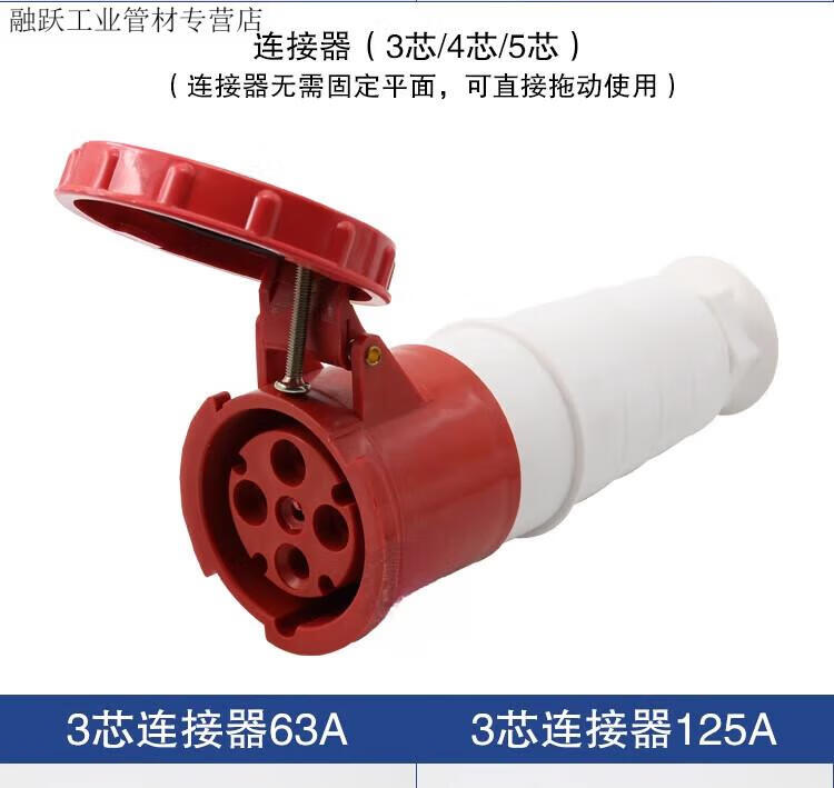 Industrial waterproof plug and socket connector three-phase battery 4-core 5-core hole 6A 125A docking aviation plug core exposed socket 125A 3-core plug 63A