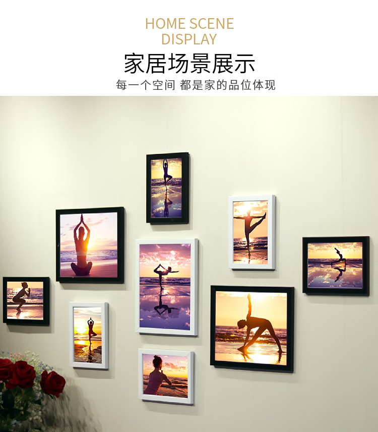 Sailoto Pilates poster yoga studio gym bodybuilding decoration punch-free hanging picture frame photo wall sticker picture core white + B frame picture core 9 frames 7 inches 35 inches