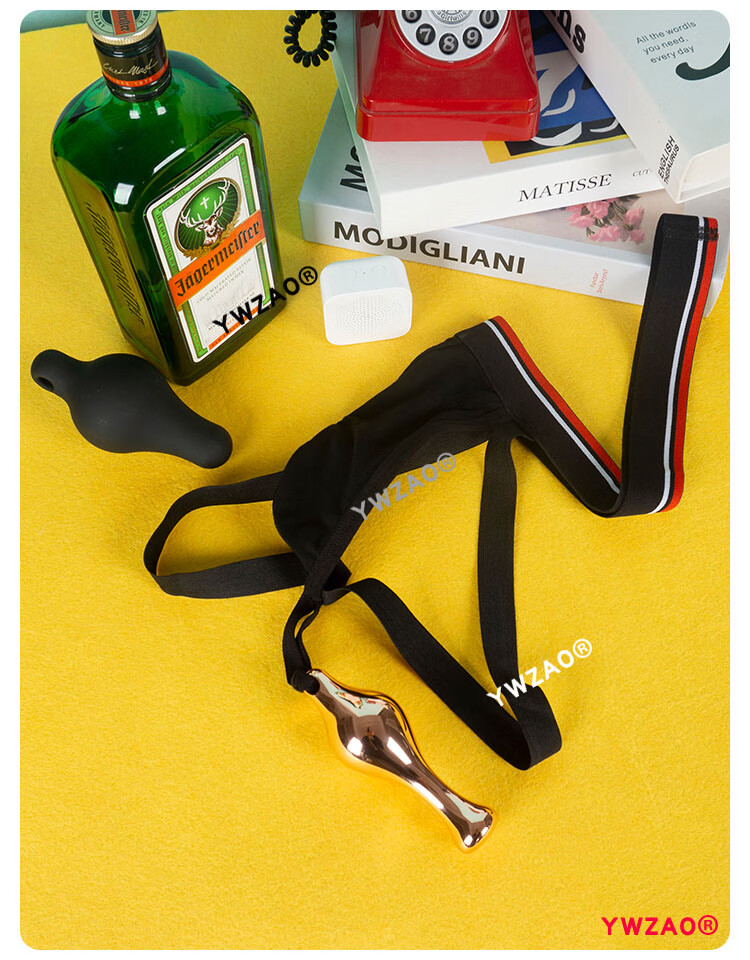 Xinyoujie sexy men's thong black combination N16 leg temptation butt plug underwear T pants sss fingertip silicone 28-32 yards