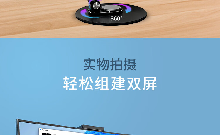 Portable screen stand desktop monitor vesa liftable rotating horizontal and vertical screen 16-inch 18-inch secondary screen dual screen base double-arm black rotating base pull-clip type_universal for mobile phones and tablets