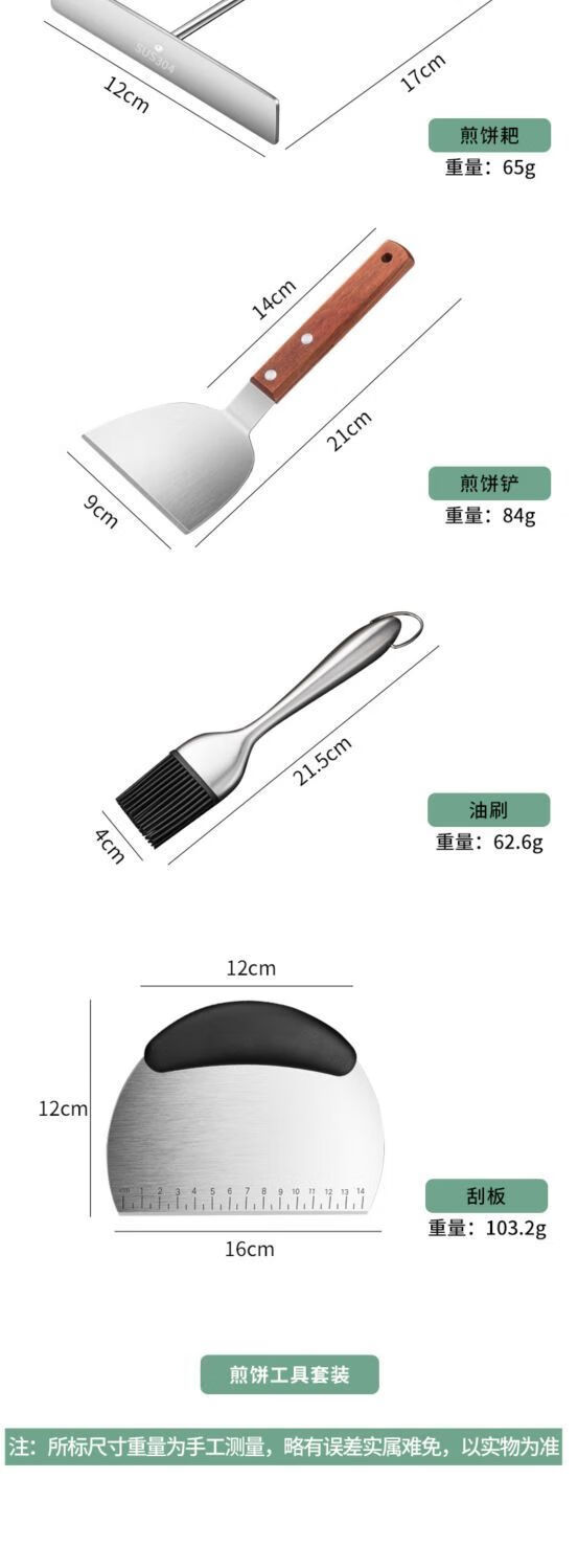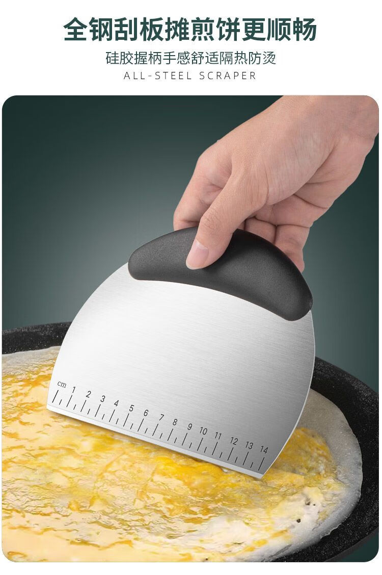 Pupan pancake fruit tool set 304 stainless steel bamboo dragonfly stall household egg pancake frying spatula scraper pancake rake + scraper