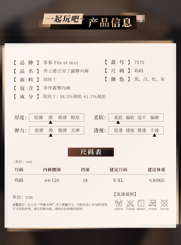 Women's underwear sexy and interesting double butt men's hollow double butt exposed underwear sexy thong sexy temptation double butt exposed black double butt exposed underwear