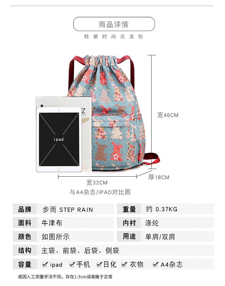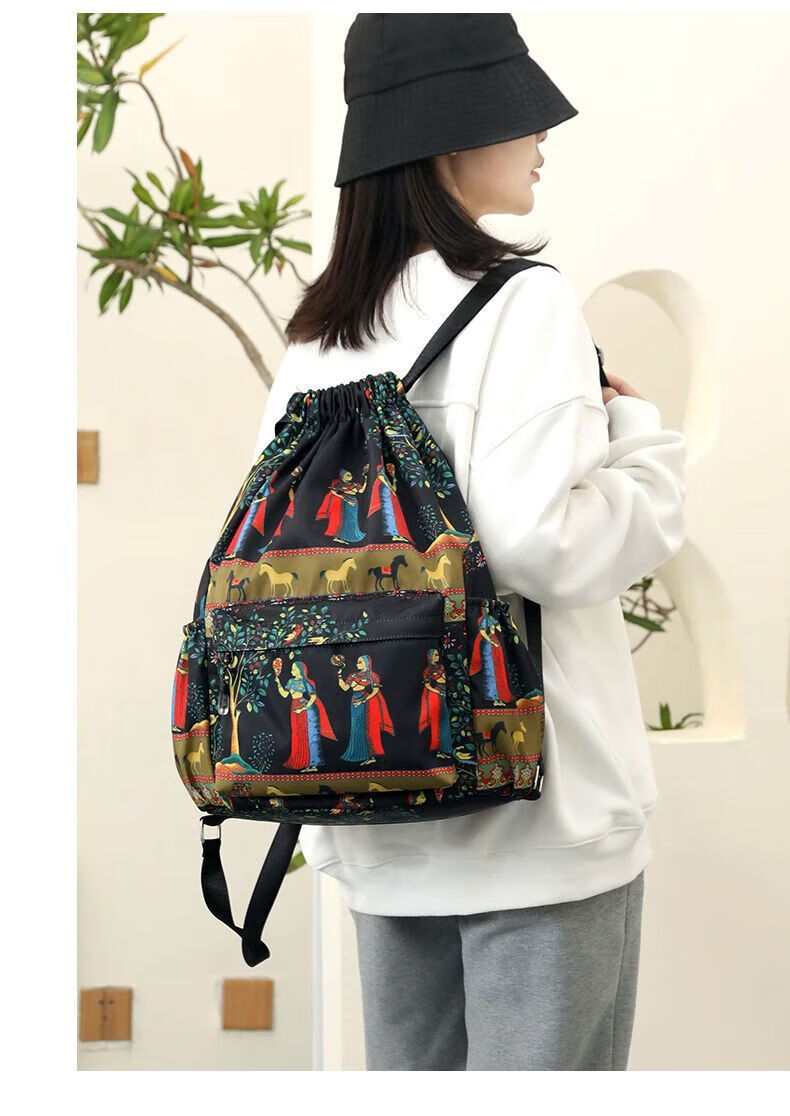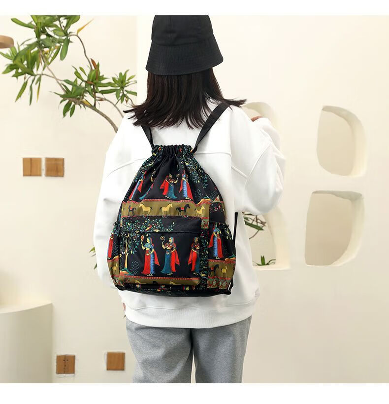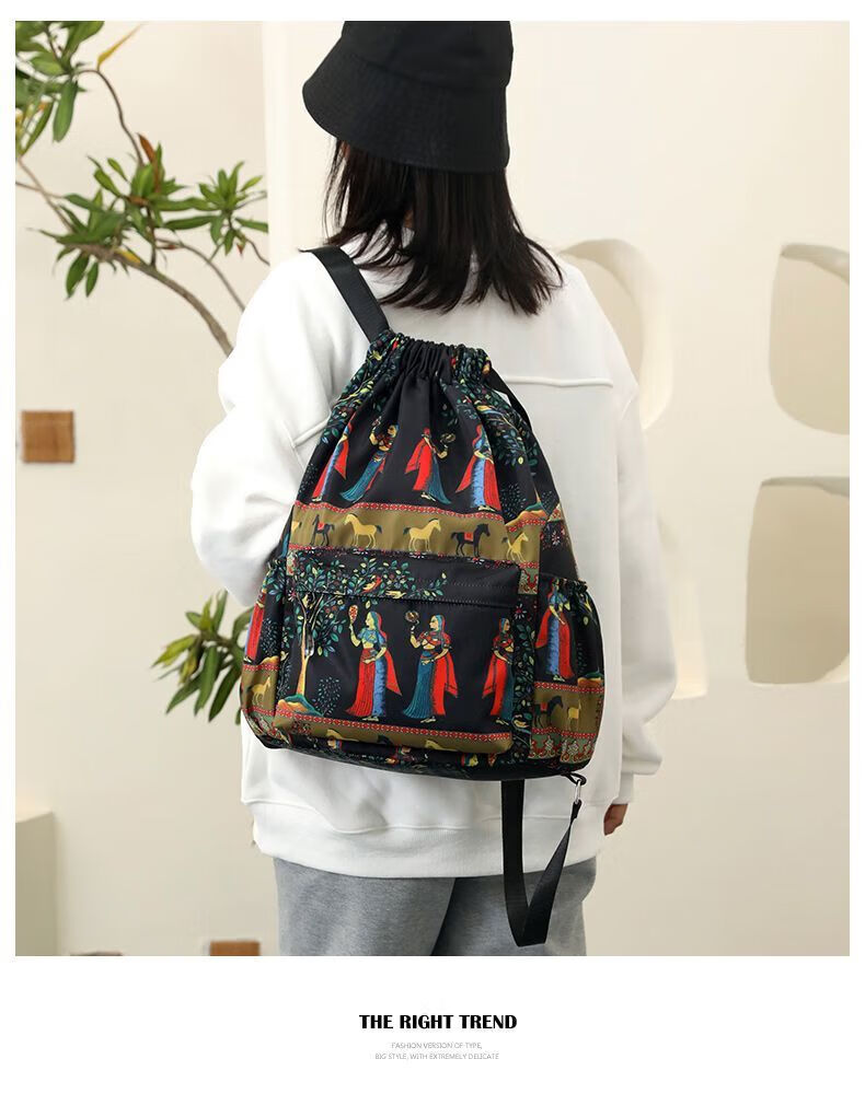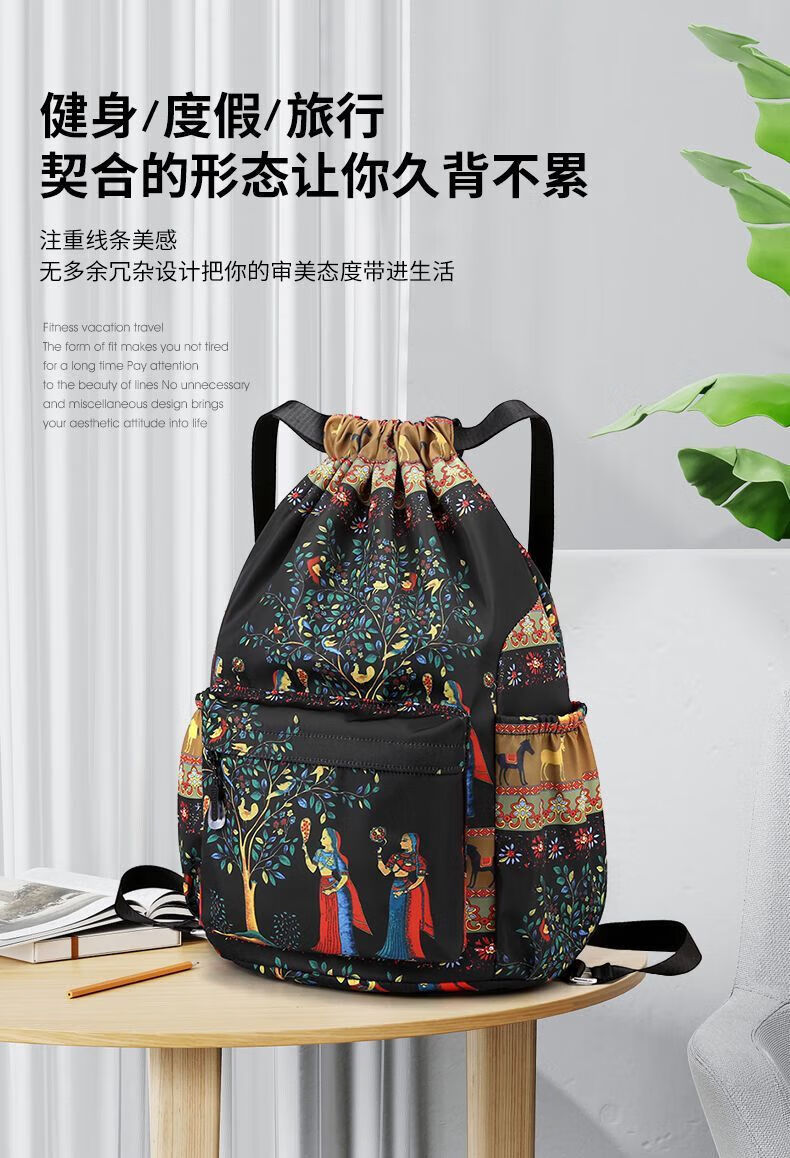 Ye Yu Folding Travel Bag Pocket Backpack Lightweight Drawstring Backpack Large Capacity Storage Sports Fitness Waterproof Dancing Under the Tree 25 Extremely Thick Classic Fashion + Travel + Can Be Carried by All Ages