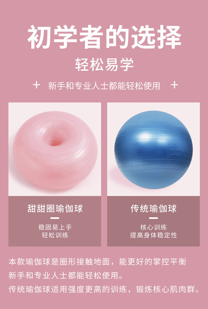 Zailu Donut Yoga Ball Thickened Explosion-proof Exercise Pregnant Women Postpartum Training Repair Apple Small Ball Pilates Fitness Ball Donut-Violet with Pump