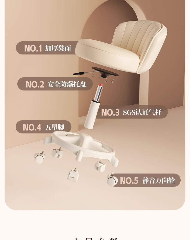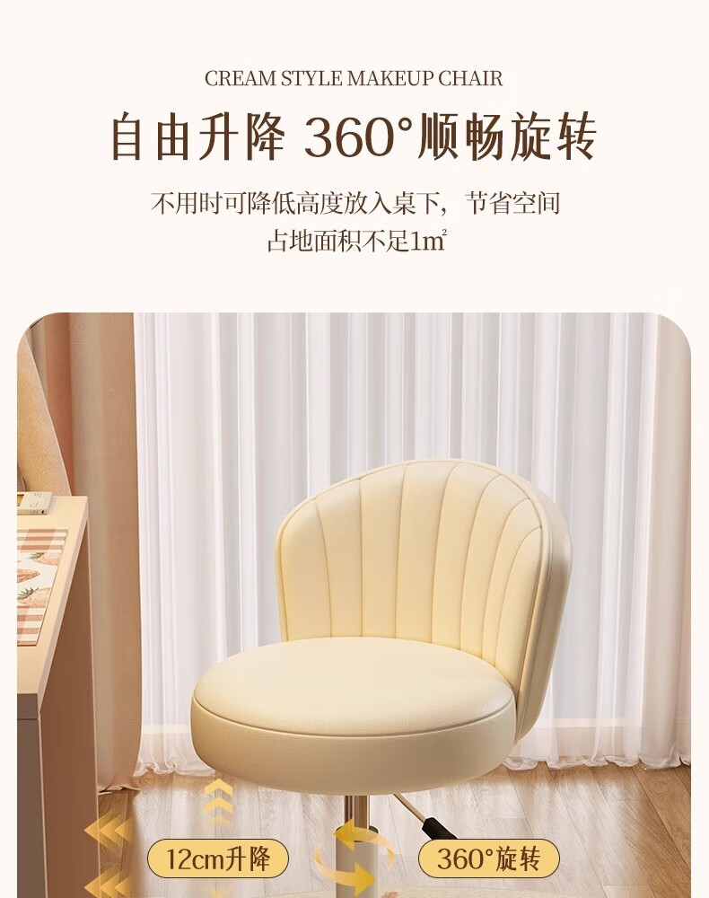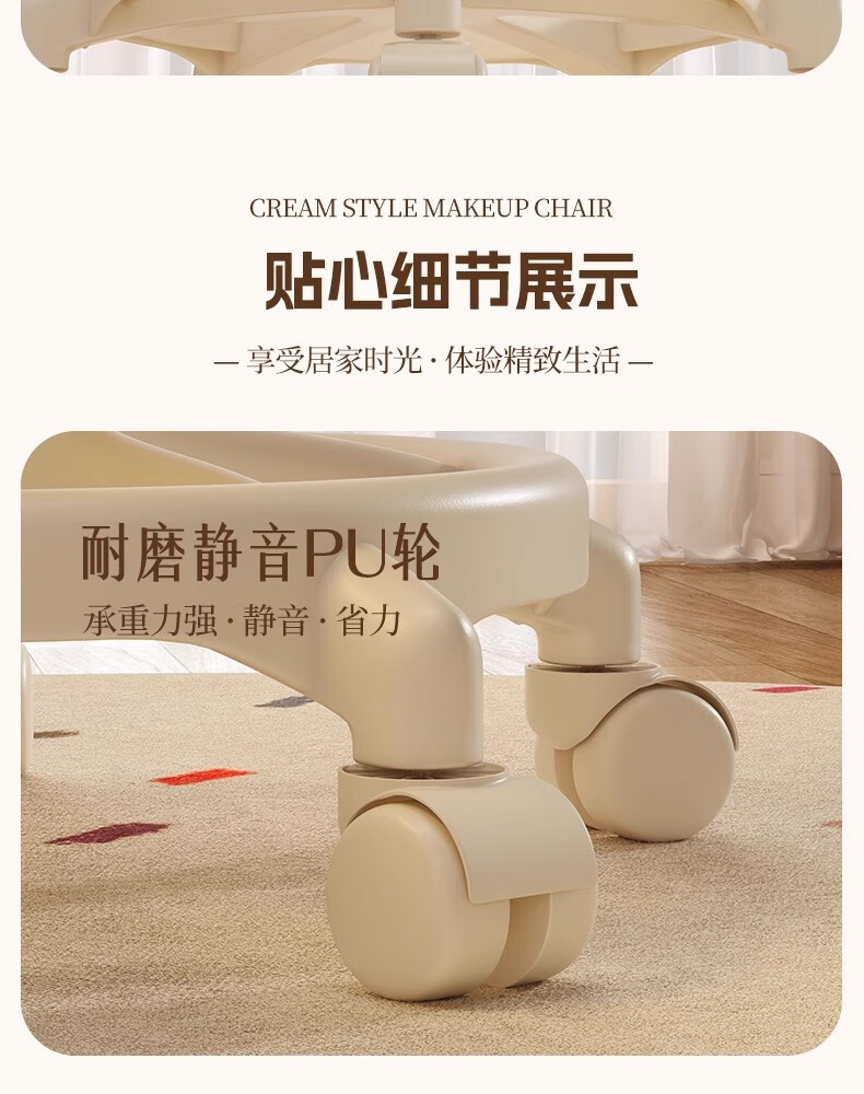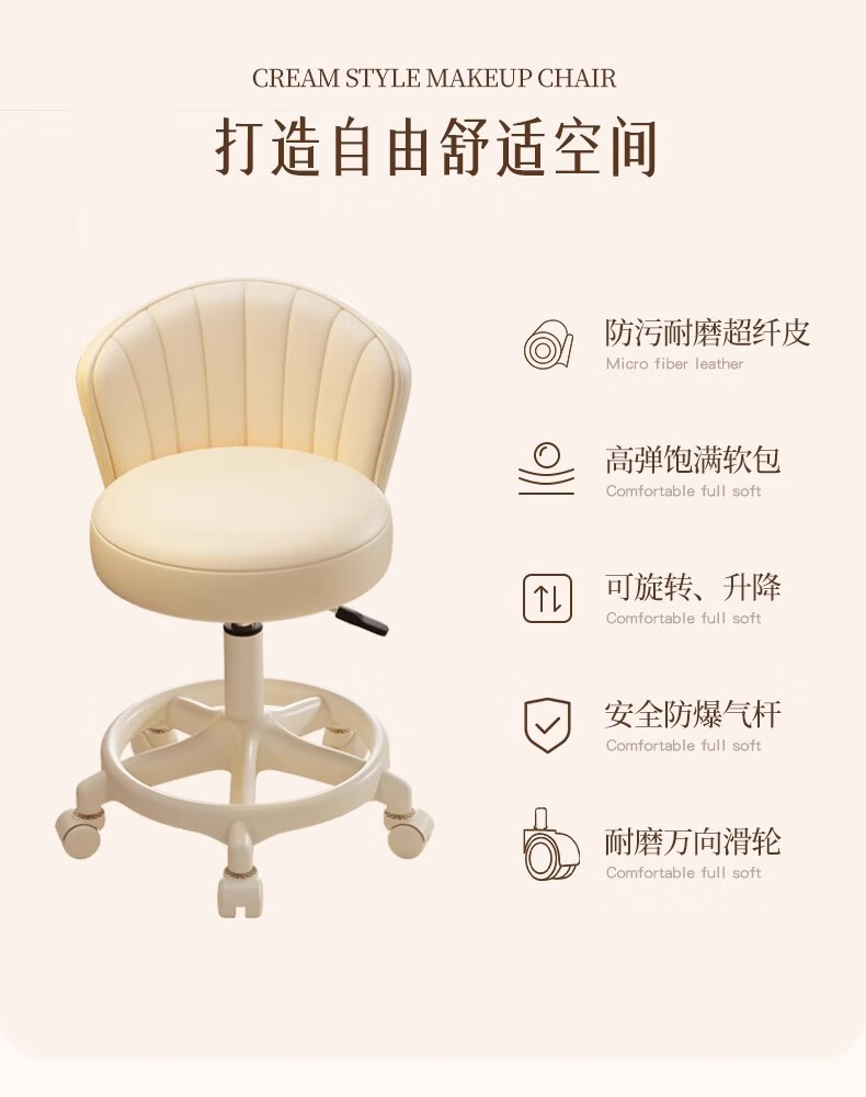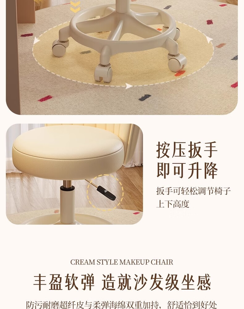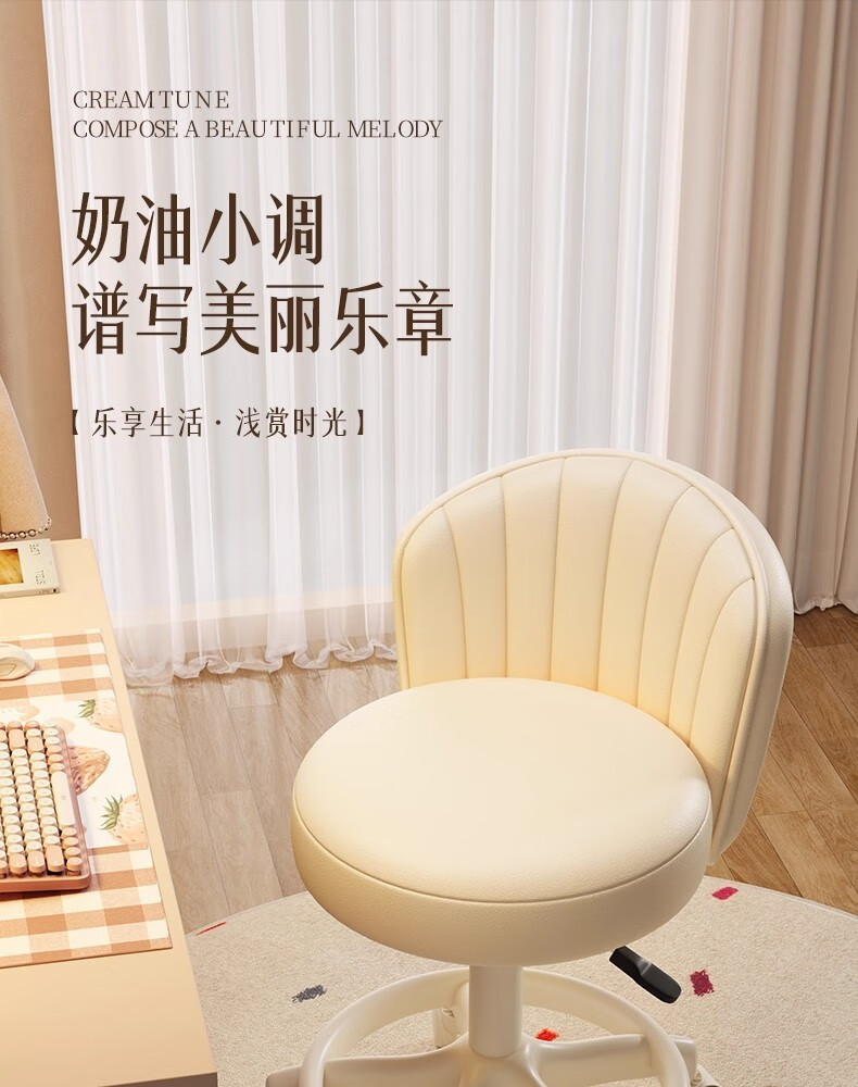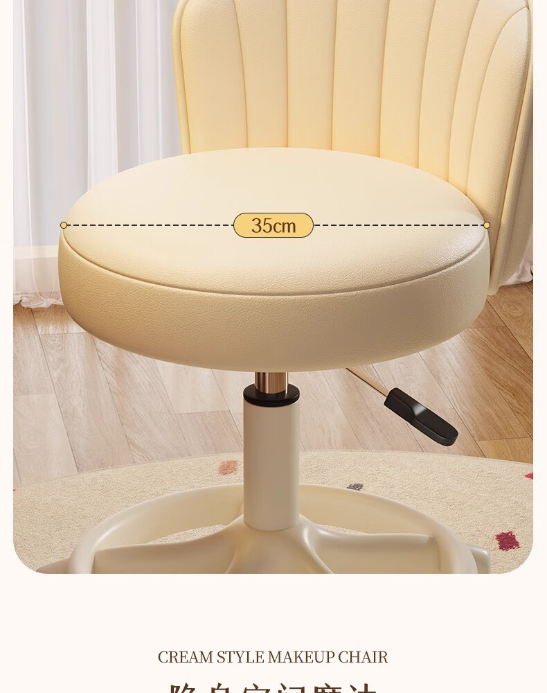 Fantasy Cream Style Makeup Chair Home Chair Backrest Dressing Table Stool Bedroom Lift Swivel Chair A Stool Pulley Cloud Model - Cream White All-round Extra Thick Carbon Steel