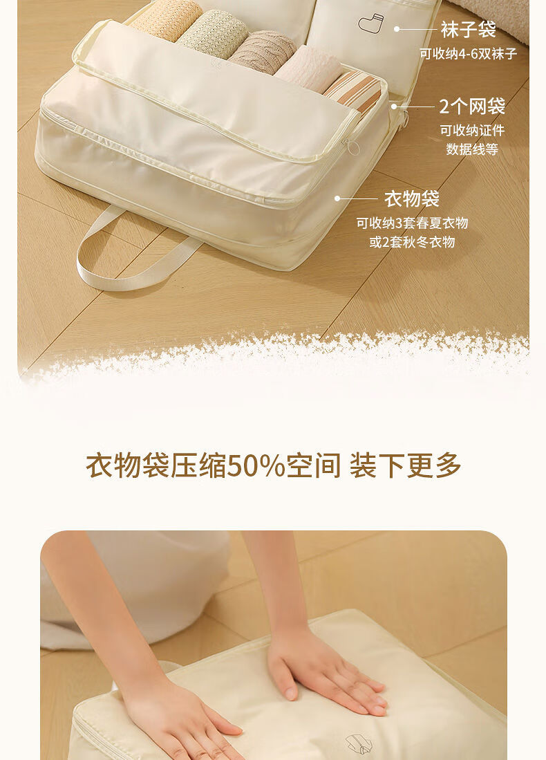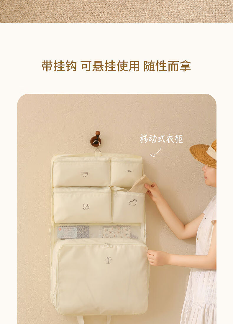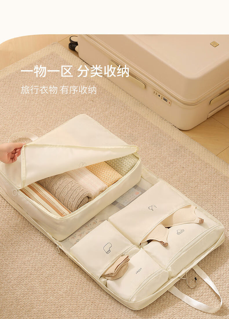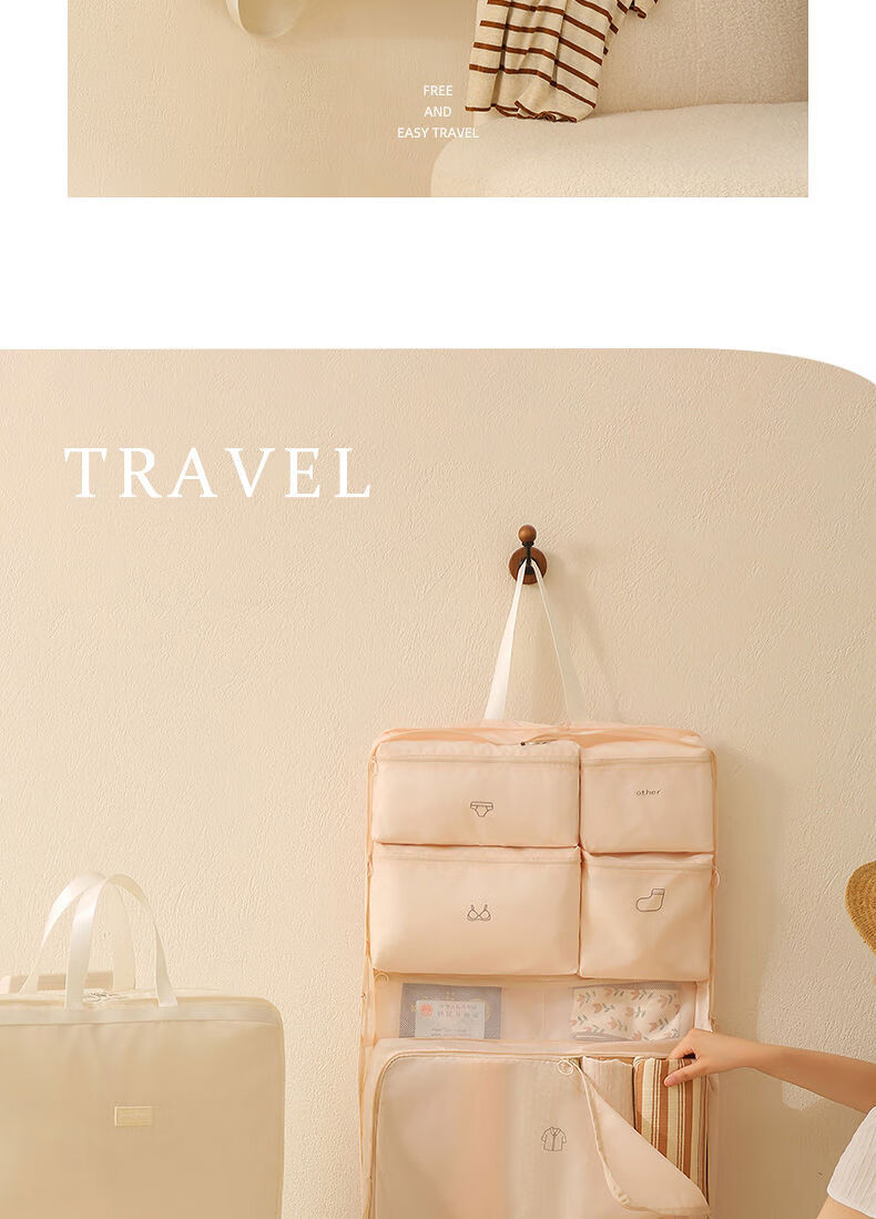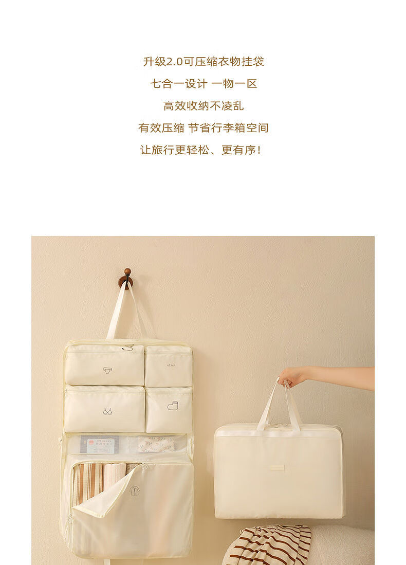 Yusenyi 7-in-1 travel storage bag, hanging compression bag, luggage storage bag, portable clothing repackaging bag, clothing organization, tea white - 2:00 compression style, three-dimensional, stylish and not soft