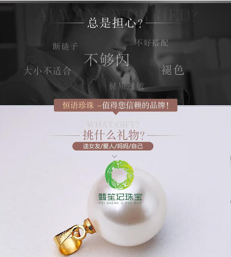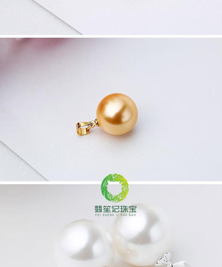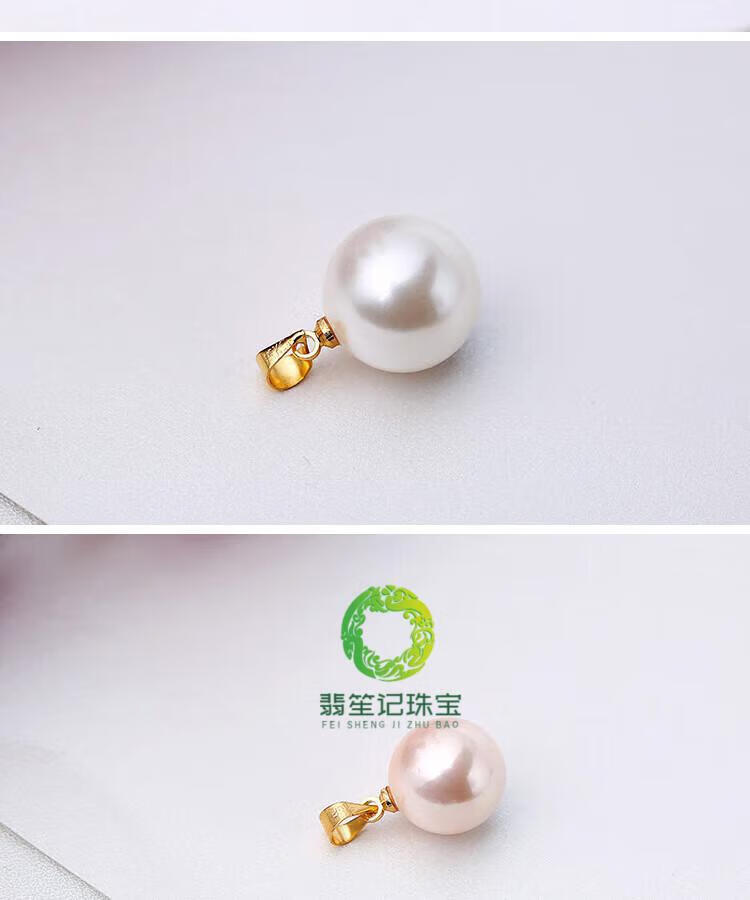 Everlasting Leaf Seawater Pearl Pendant 18K Gold Necklace Silver Buckle Plated Single Natural Shell Bead Single Bead for Women White Gold Holder 10-10mm