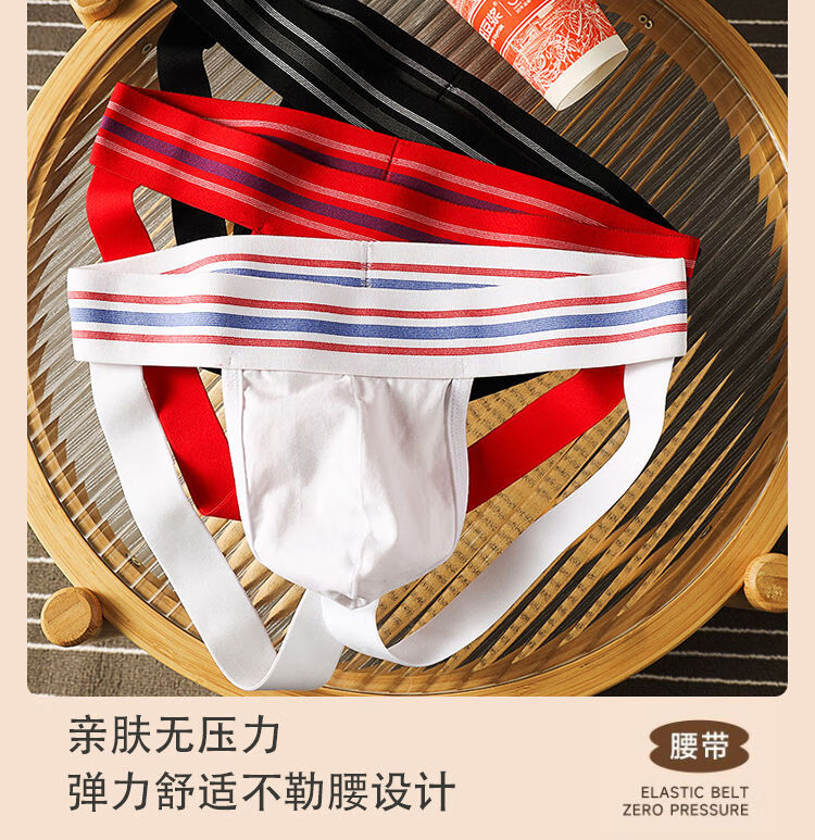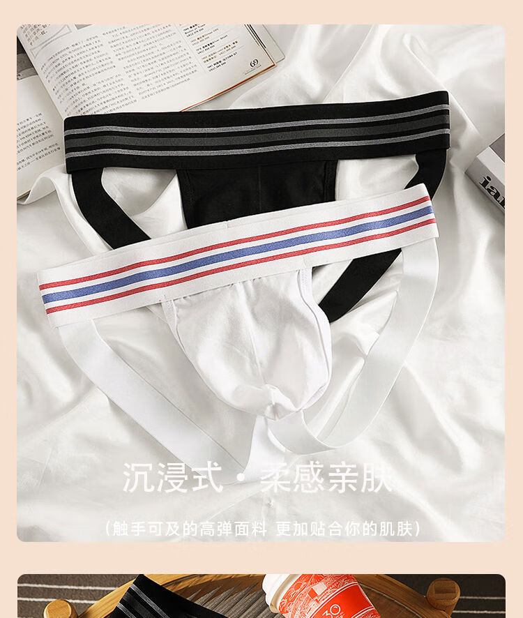 Men's sexy solid color cotton double thongs gay thongs rainbow low-waisted 0-open, no-take-off buttock-feeling pants white M recommended 90-110 Jin Jin equals 0.5 kg