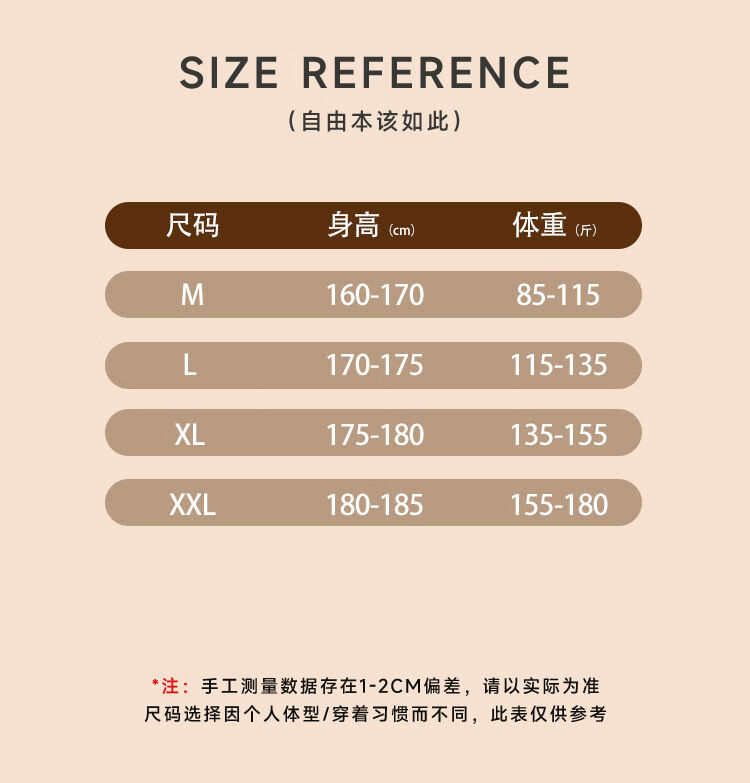 China (cm) 160-165/84-86 165-170 / 88-90 167-172 / 92-96 168-173 / 98-102 170-176 / 106-110
