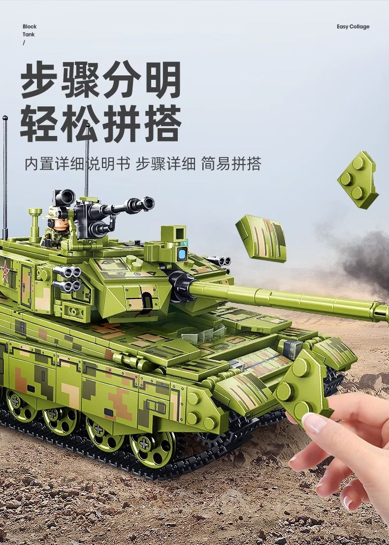 Boys Puzzle Assembled Tank Car Model Children 2025 Primary School Students Jigsaw Puzzle Toys Le Building Blocks Gift Remote Control Version APP Dual Mode 99A Main Battle Tank