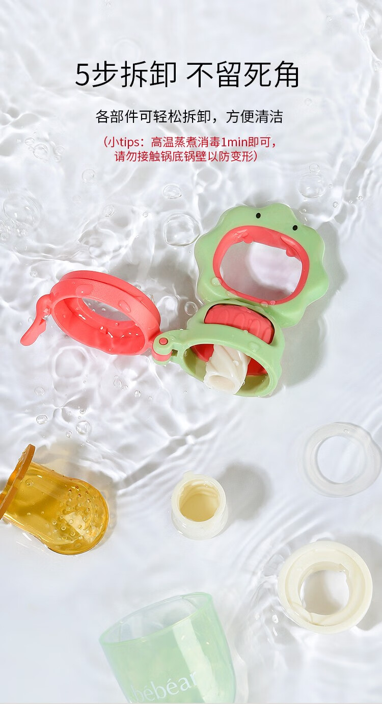 Hug Bear Bite Baby Silicone Fruit Bite Bag Baby Fruit and Vegetable Food Complementary Food Automatic Propeller Rice Green 1 Pack