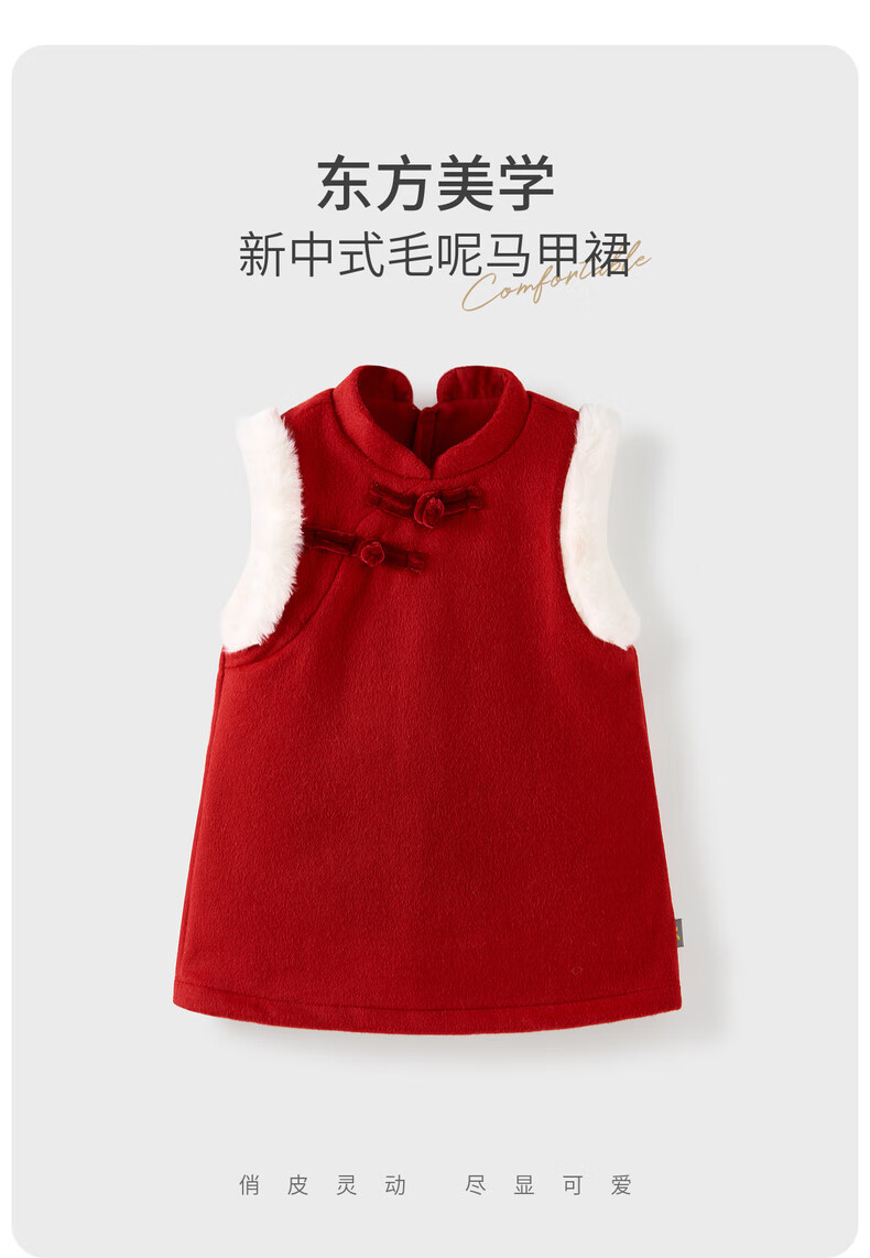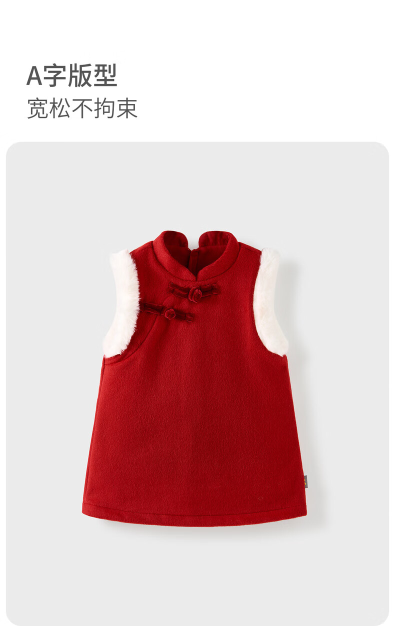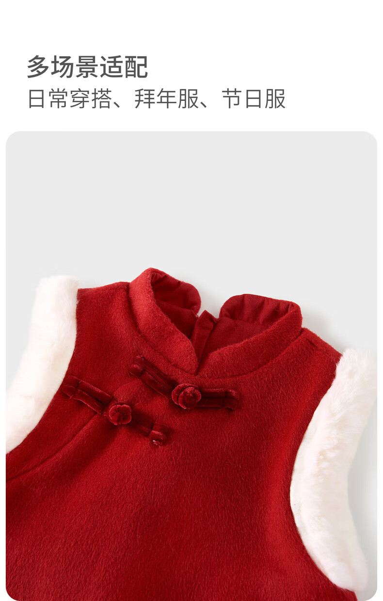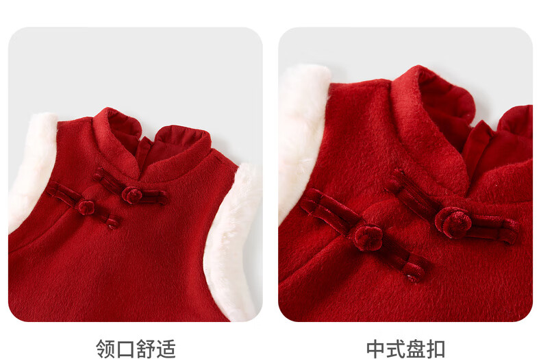 Tongtai (TONGTAI) baby girl dress, winter children's dress, new Chinese style stand-up collar vest dress for girls, festive New Year's wear, red 100
