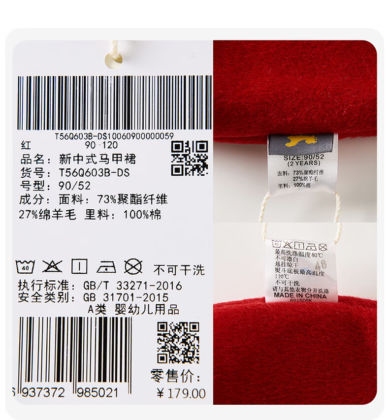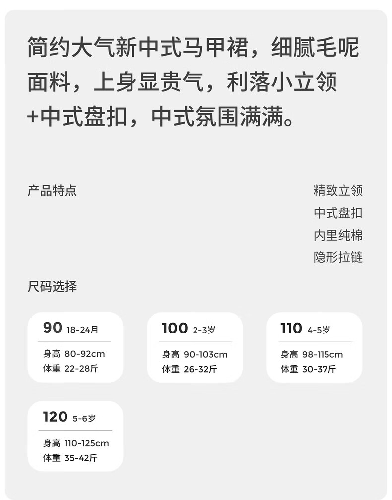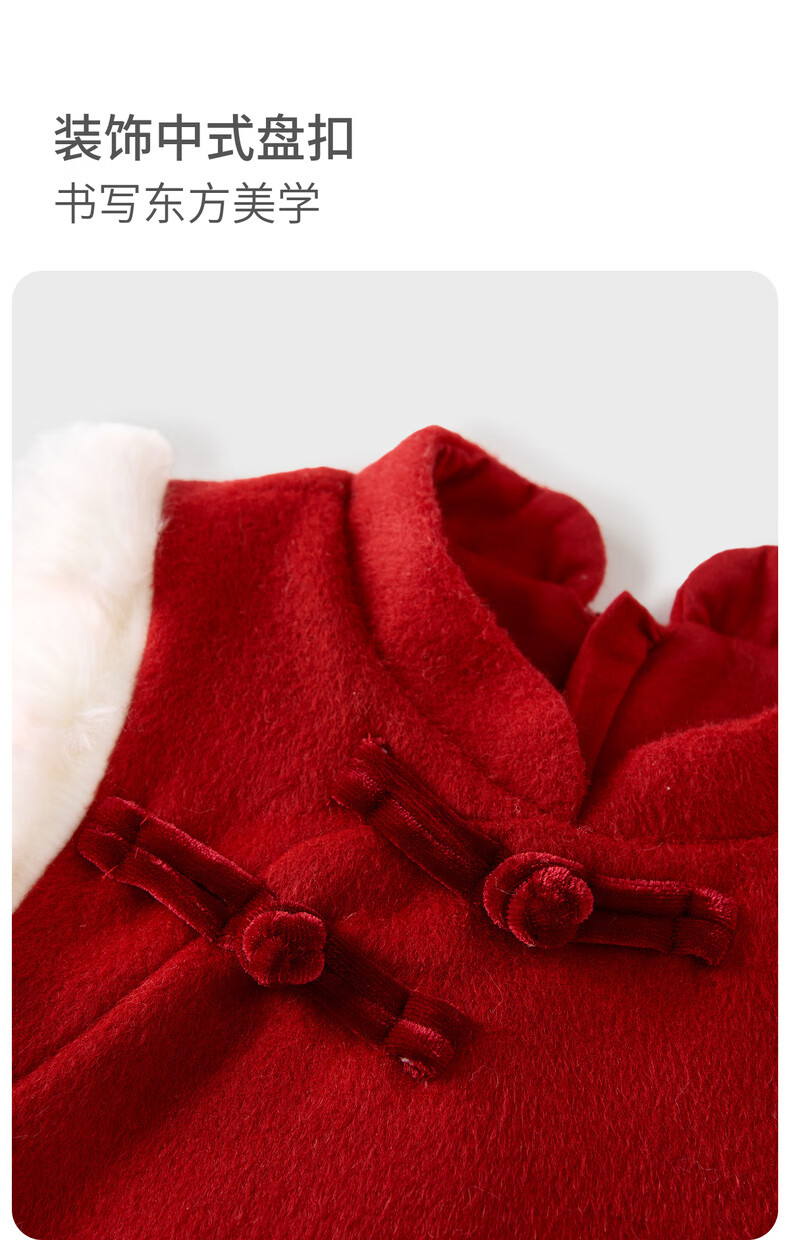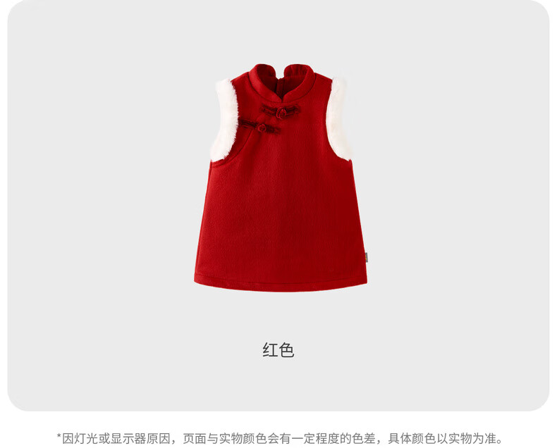 Tongtai (TONGTAI) baby girl dress, winter children's dress, new Chinese style stand-up collar vest dress for girls, festive New Year's wear, red 100