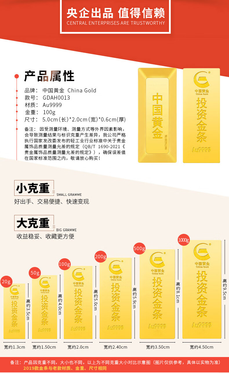 CHINA GOLD AU9999 new investment gold bar 100g 100g