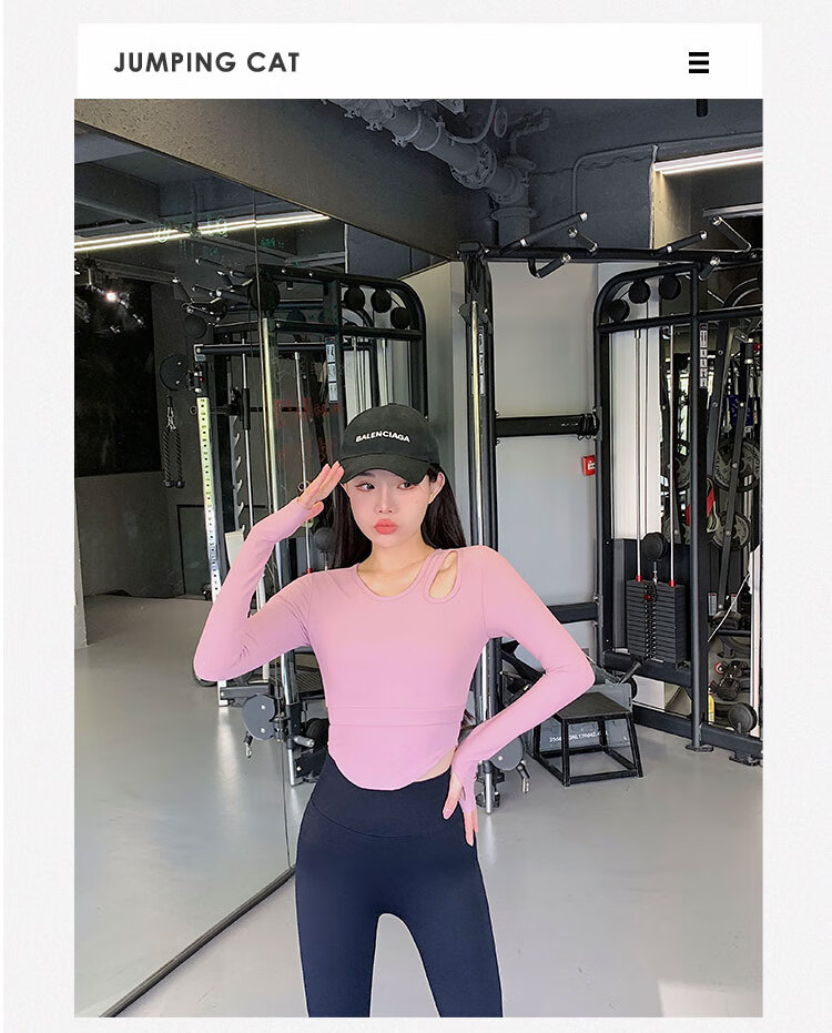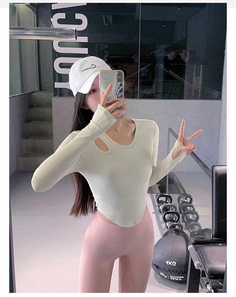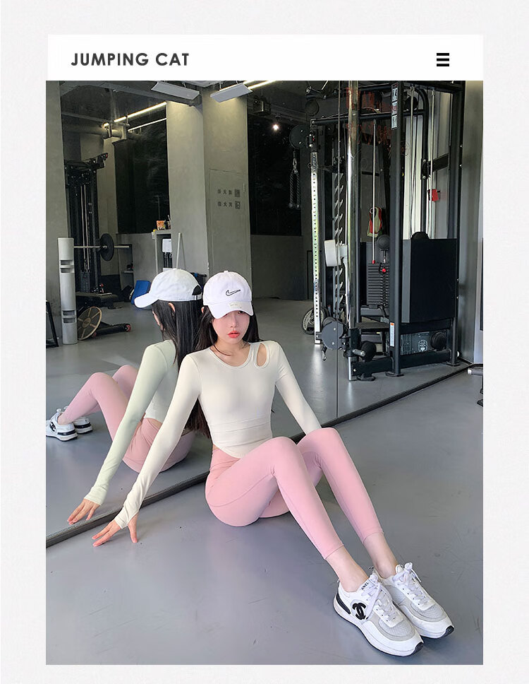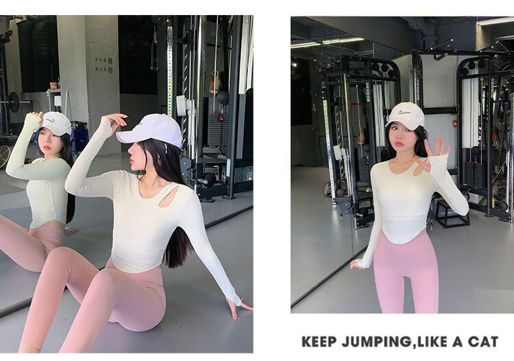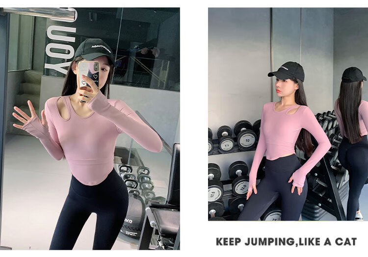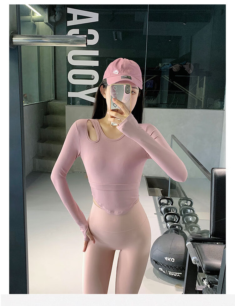 KEJIMITAO European and American ins yoga clothes with chest pads long-sleeved women's tops Pilates fitness slimming running sports T-shirt pink S