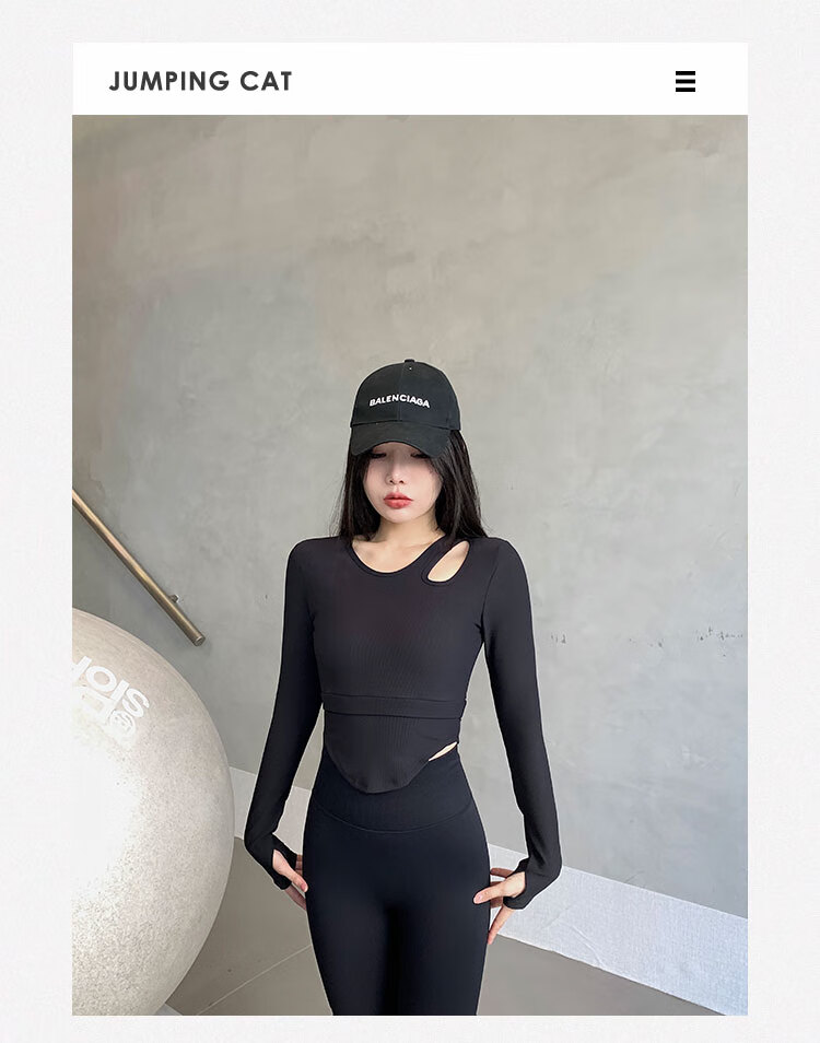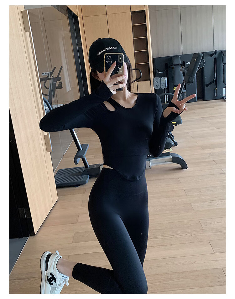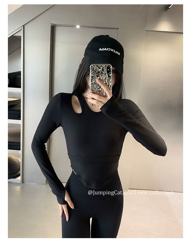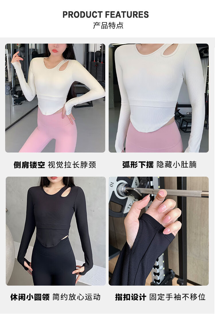 KEJIMITAO European and American ins yoga clothes with chest pads long-sleeved women's tops Pilates fitness slimming running sports T-shirt pink S