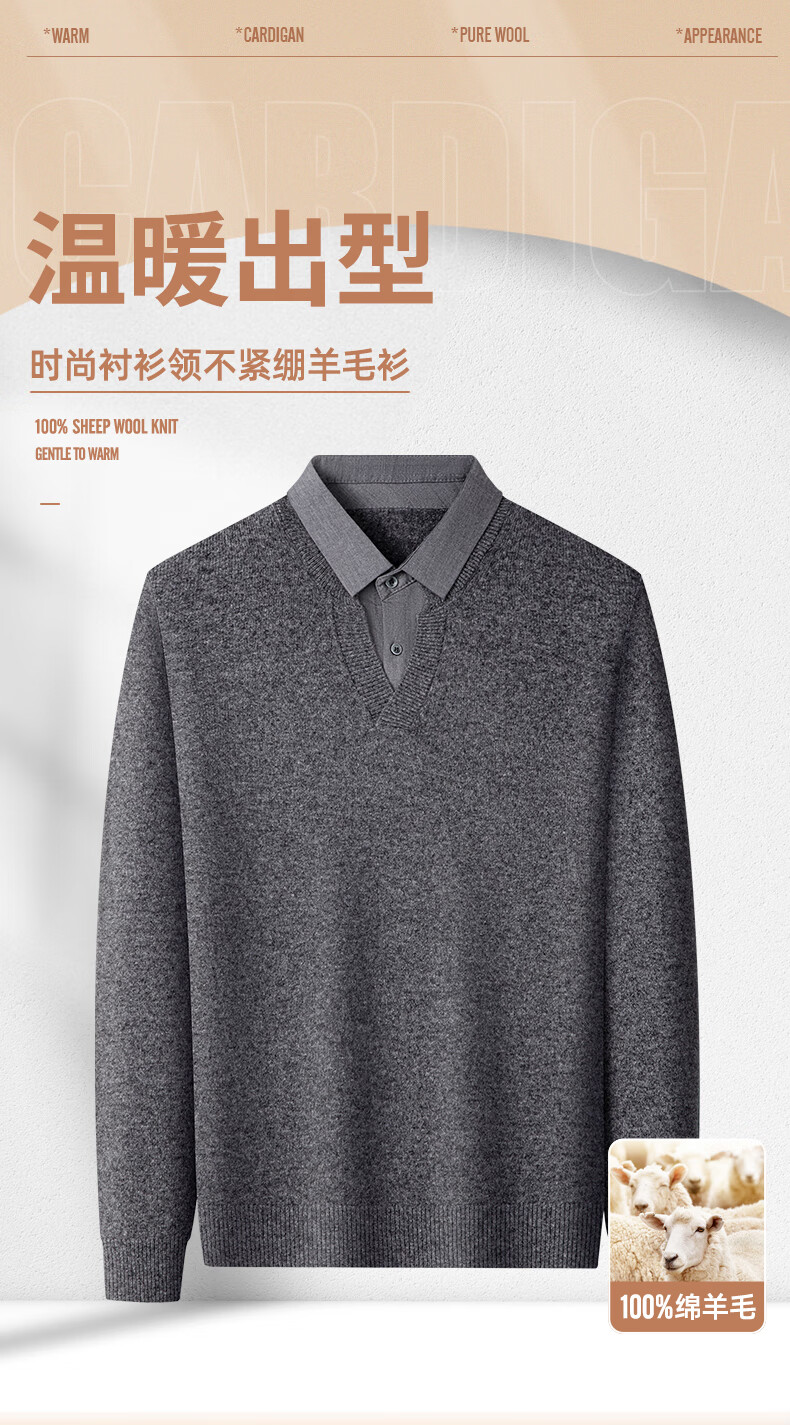 SHANSHAN Shanshan Pure Wool Sweater Men's Heavy Thick 100% Sheep Wool Thick Warm Sweater Zodiac Year Gift Top Black L /175