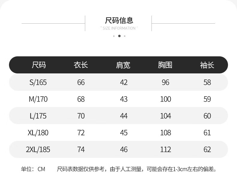 China (cm) 165 / 88-90 170 / 96-98 175 / 108-110 180 / 118-122 185 / 126-130