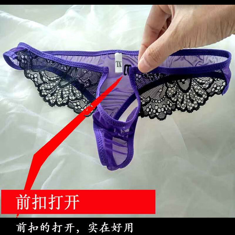 Jiyu underwear, sexy and passionate, open crotch, no need to take off, thong, exposed egg, physiological penis, men's underwear, fully see-through, unisex, purple, rear entry, front opening, M small size body type