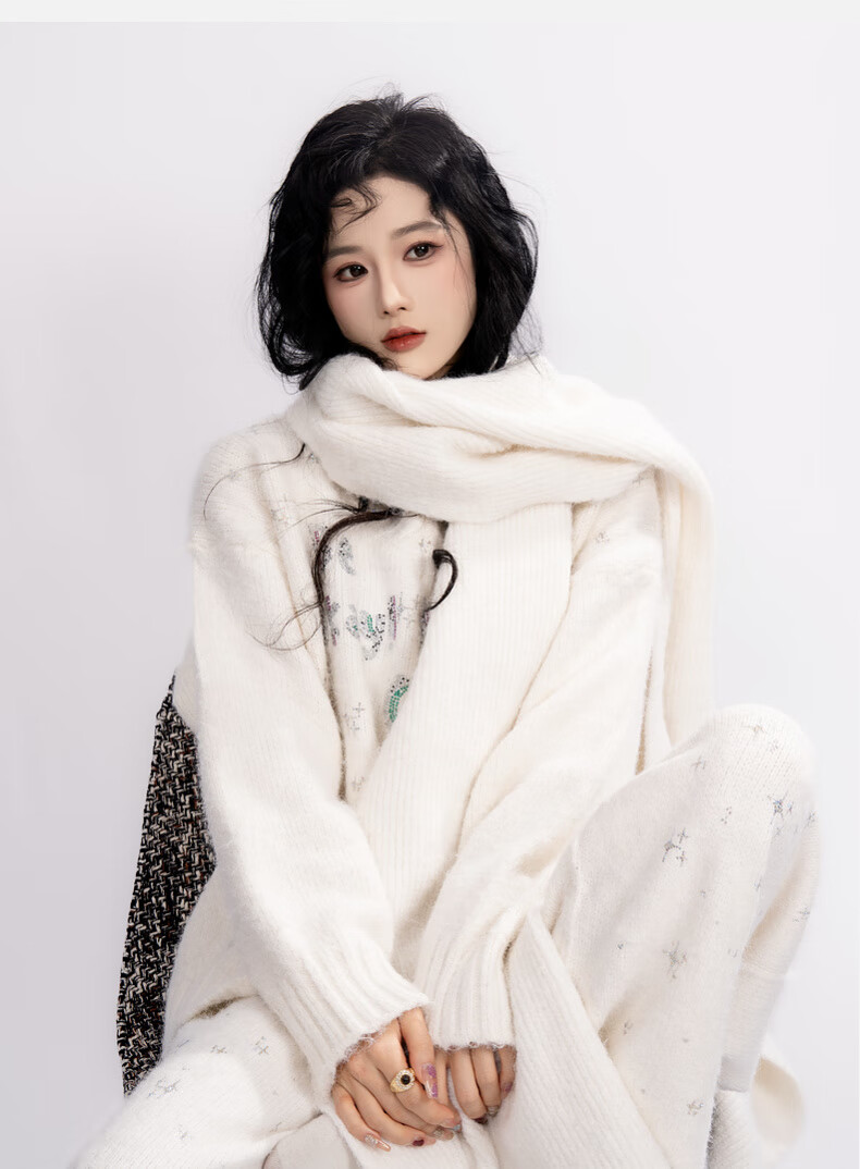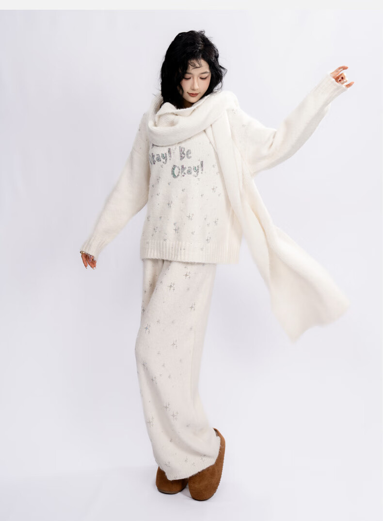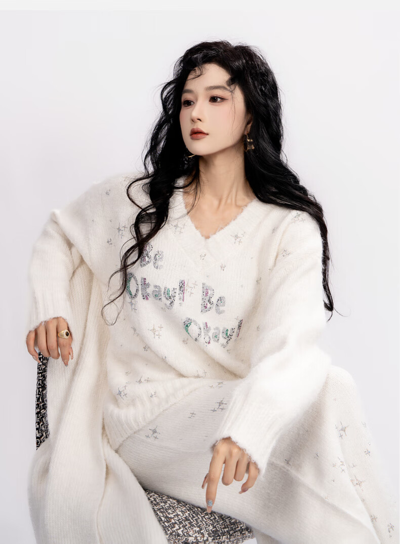TCH knitted suit for women 25 years autumn and winter fashion hot diamond slimming gentle style quiet luxury elegant style three-piece set white M 100-120Jin Jin is equal to 0.5 kg