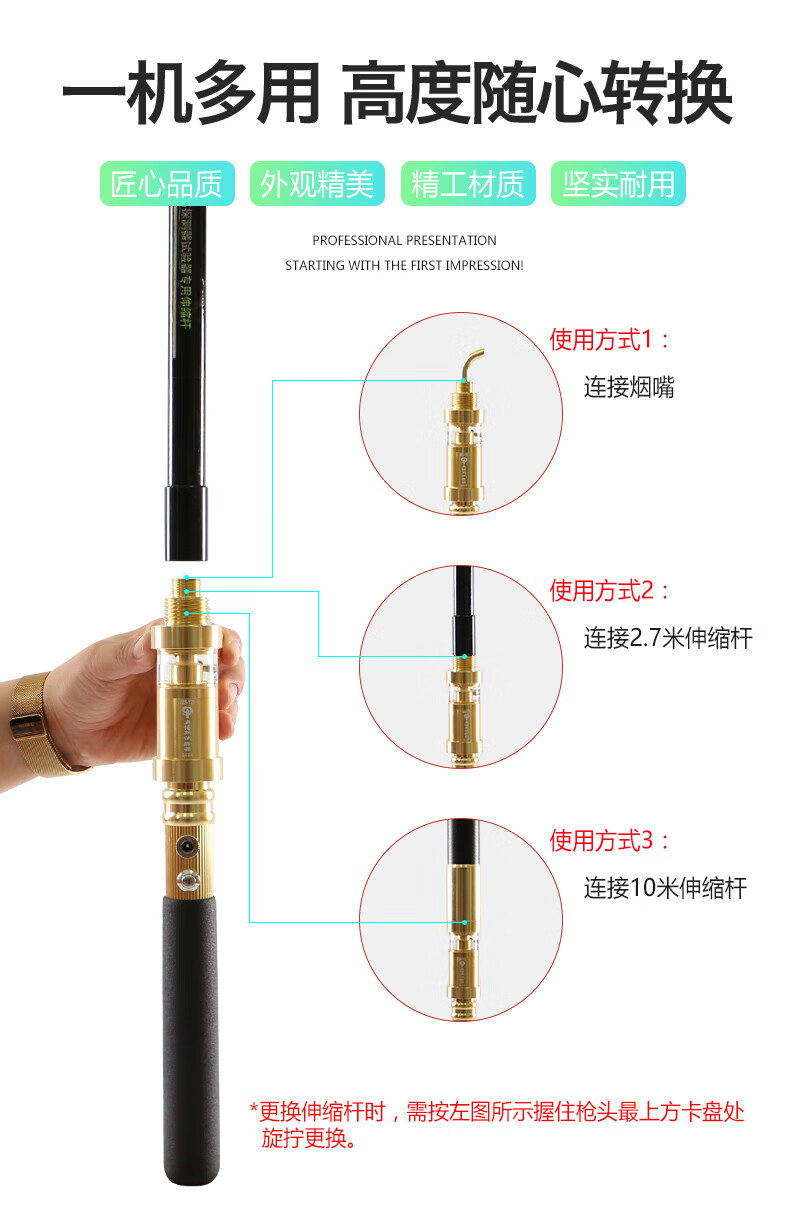 Fire smoke gun Obos can measure 10 meters smoke detector electronic smoke telescopic rod smoke gun 10 meters ultra-high altitude set 1000