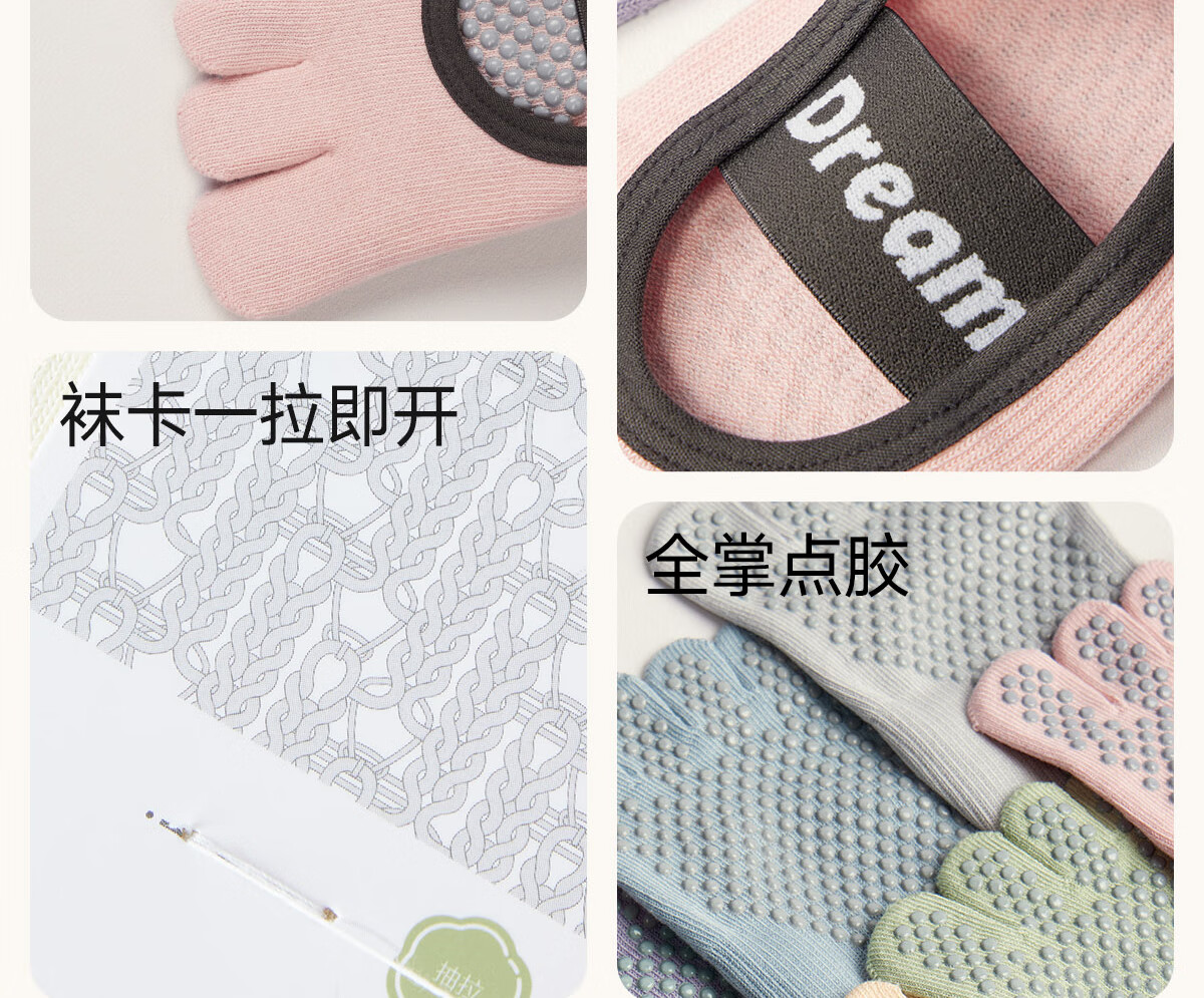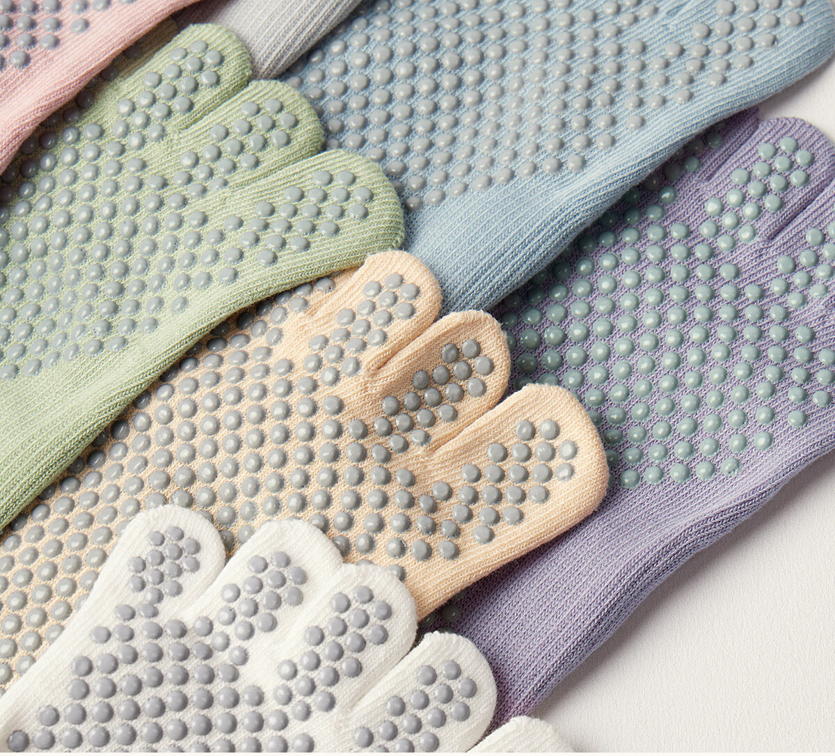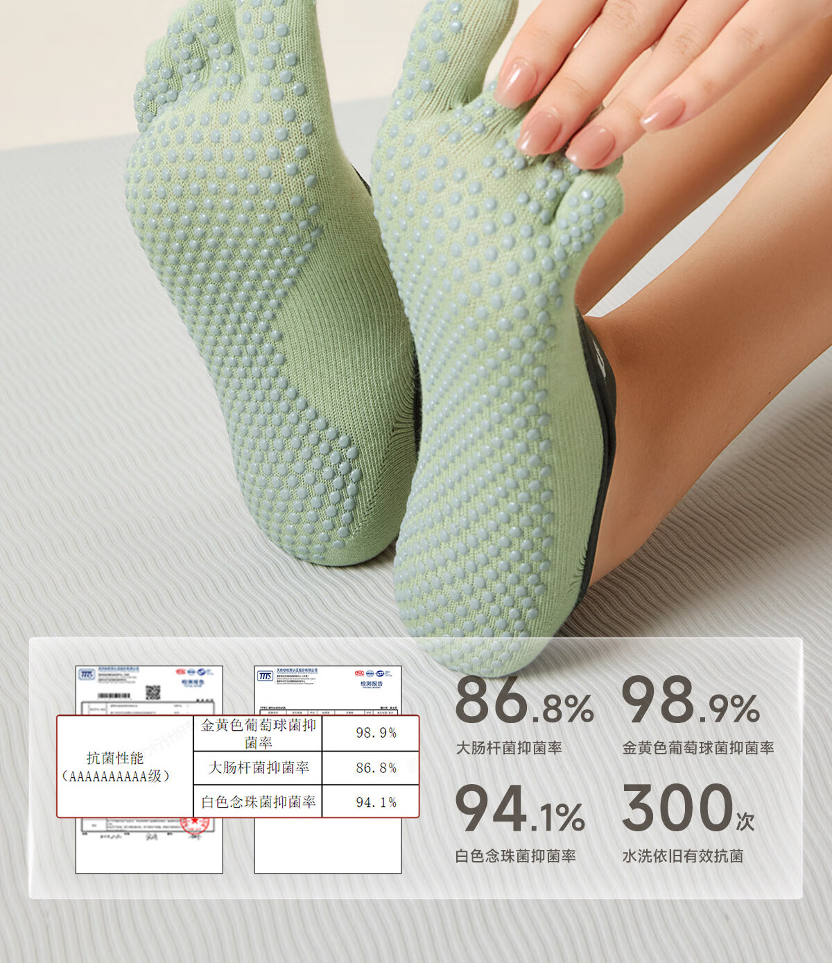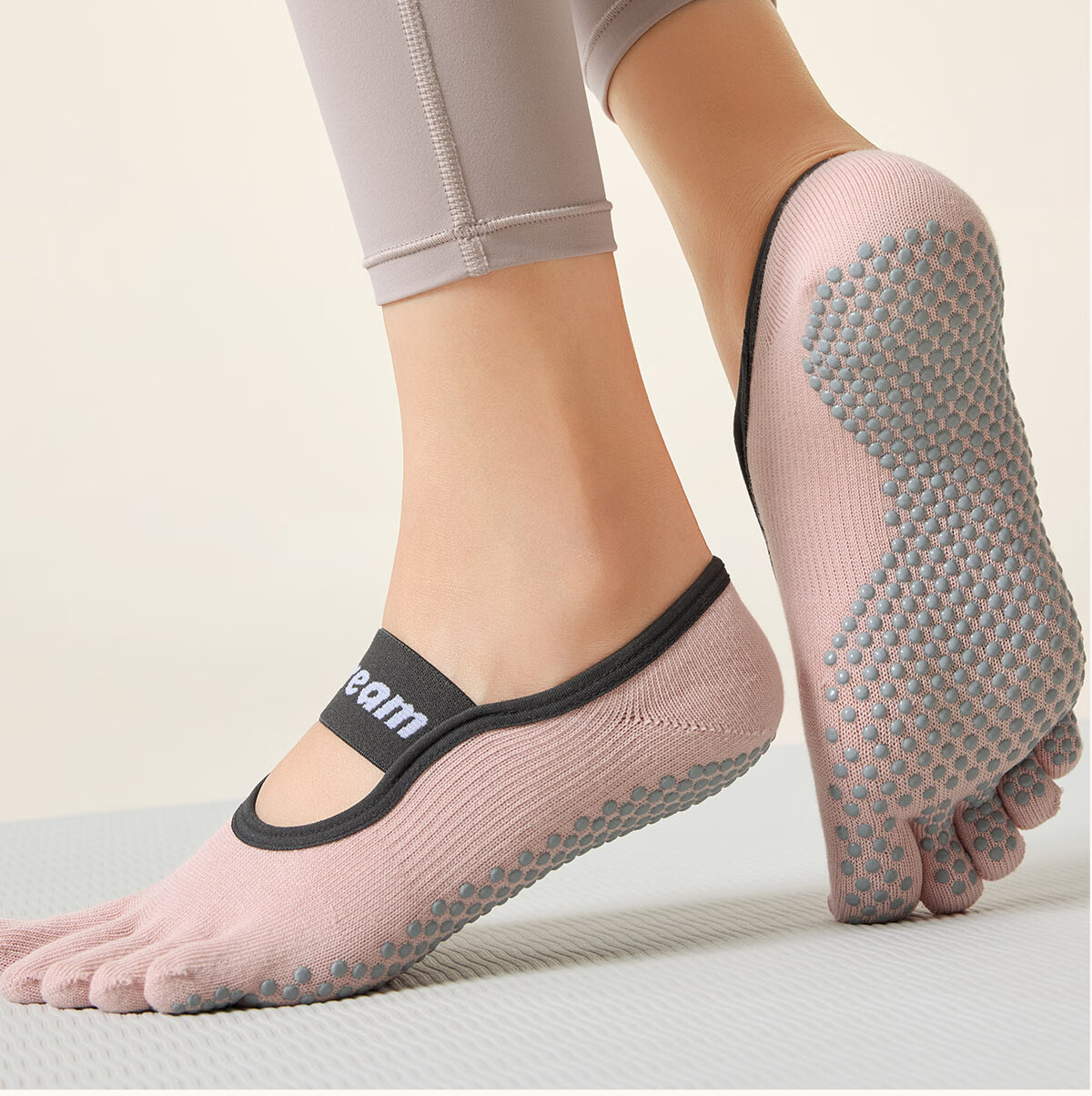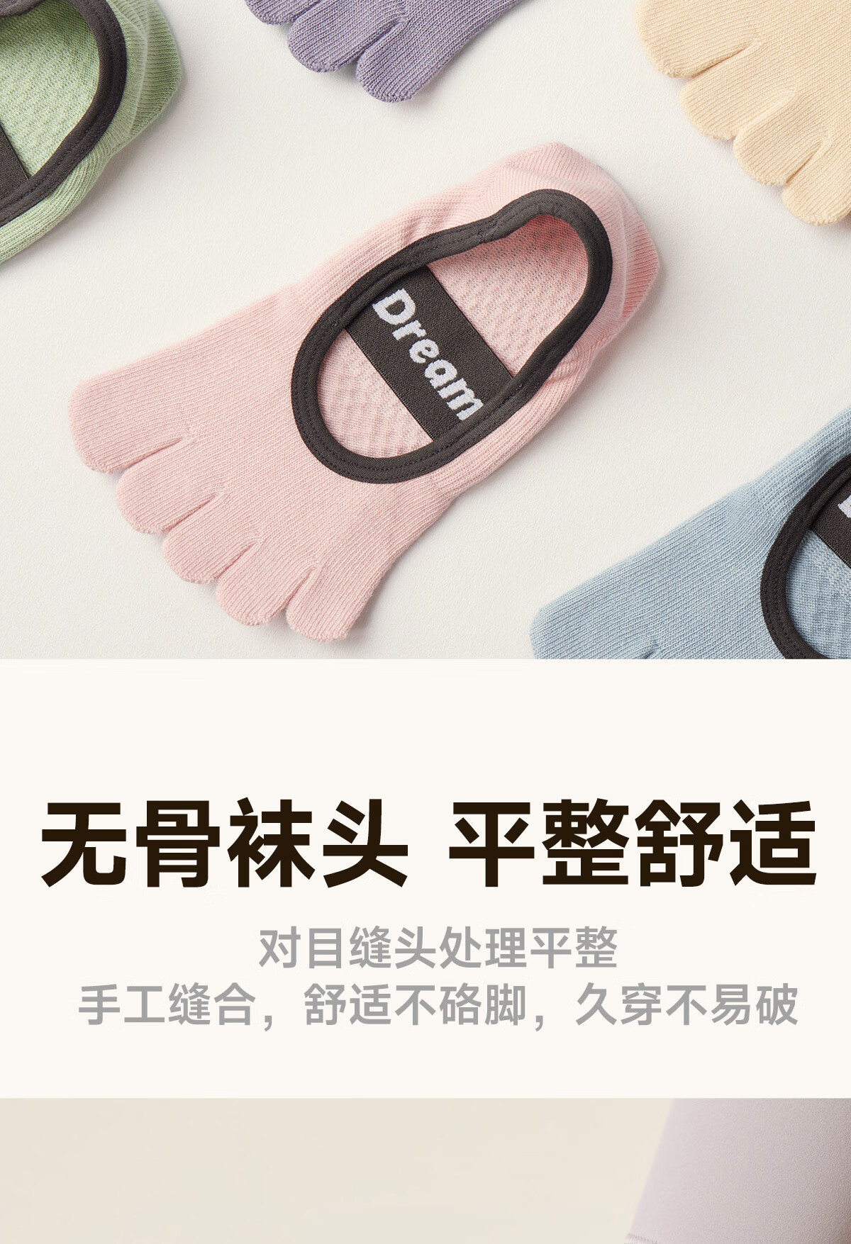 Mianzhuwu Yoga Socks Women's Five Finger Autumn and Winter Professional Anti-Slip Pilates Split Toe Sports Black Indoor Fitness Boat Socks Combination One (Blue + Light Pink) One Size Fits All Sizes 35-39