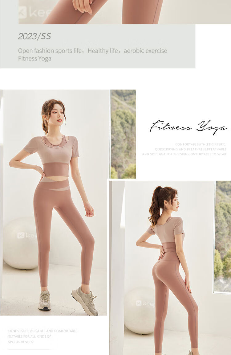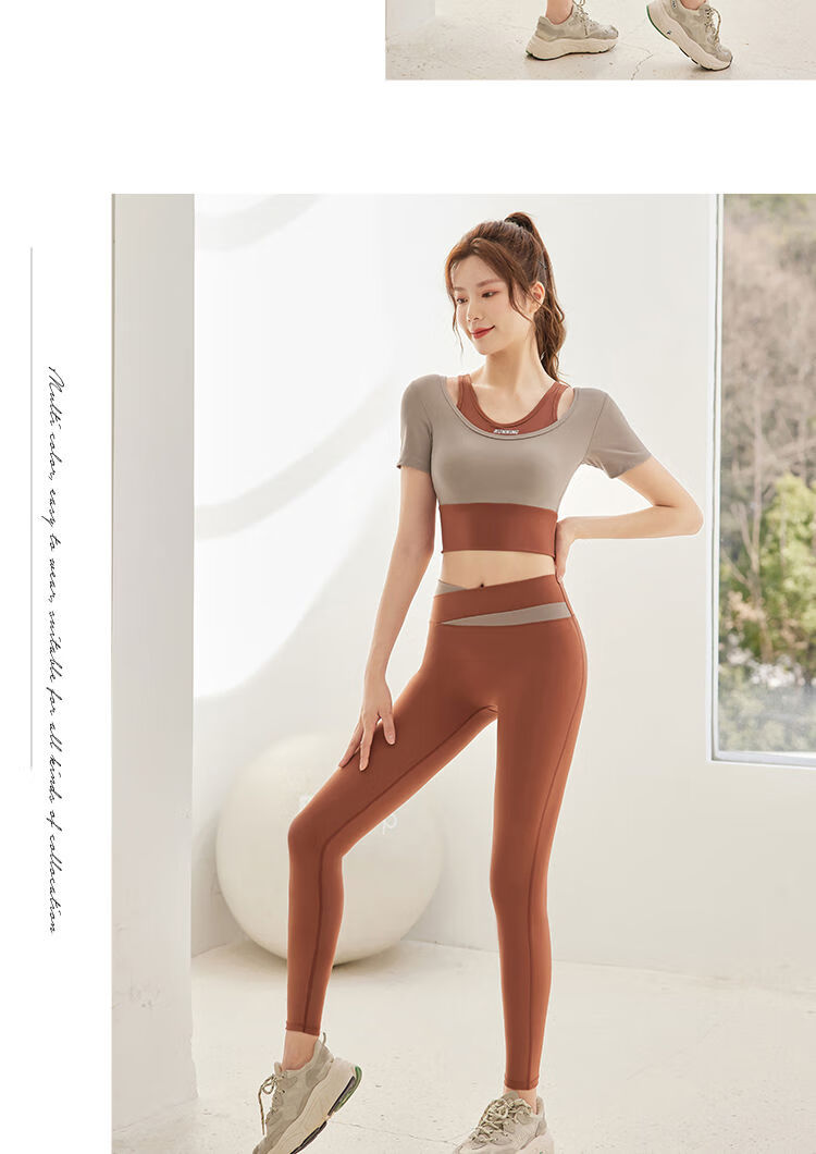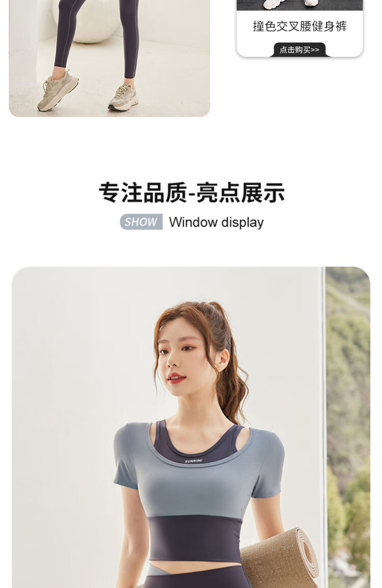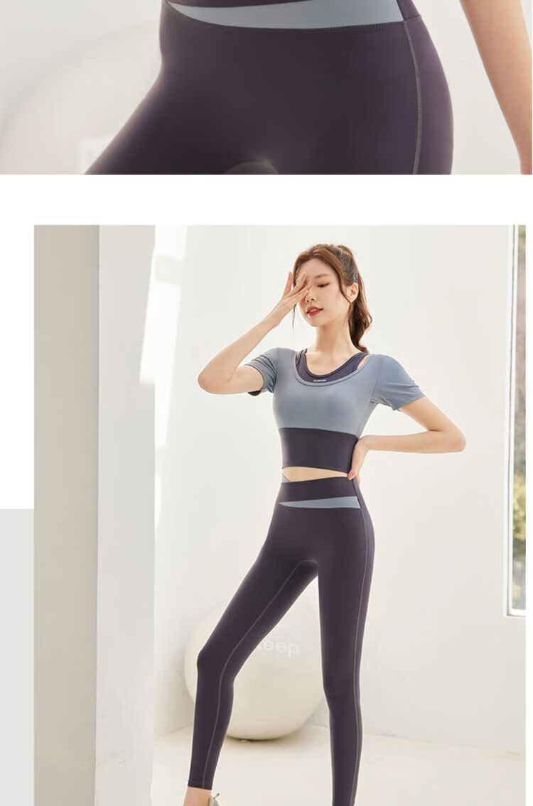 Summer Slim Fake Two Piece Pilates Yoga Short Sleeve Top Women's Quick Dry Running Training Fitness Clothing Set Blue - Short Sleeve Fixed Chest Pad 2XL 2XL Size 130 Jin Jin equals 0.5 kg -145 Jin Jin equals 0.5 kg