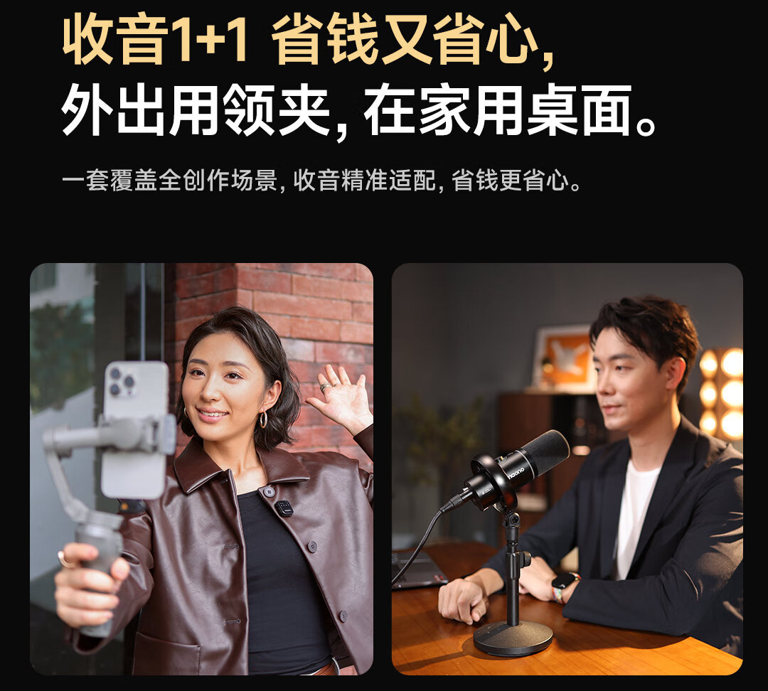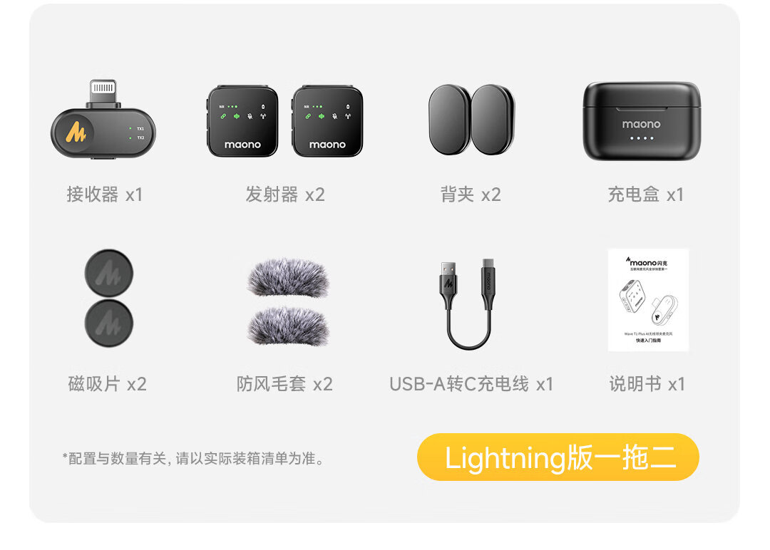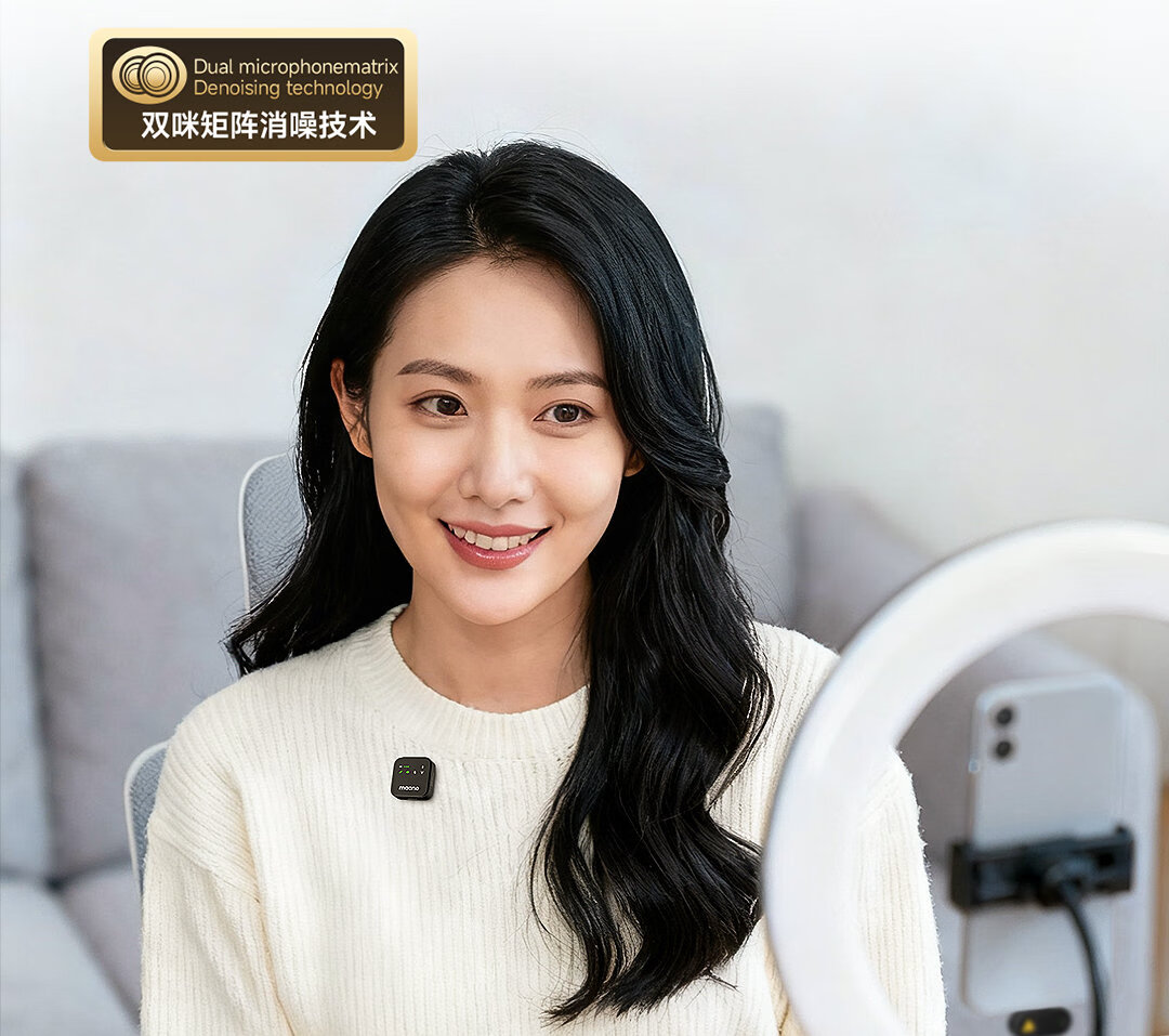 Maono Wireless Lavalier Microphone Camera Live Broadcast Mobile Phone Recording Shooting Short Video Vlog Microphone Dual Microphone Noise Reduction APP Professional Tuning Radio Microphone T1plus Android + Apple 15 and above One to Two + Charging Box