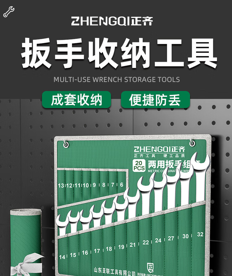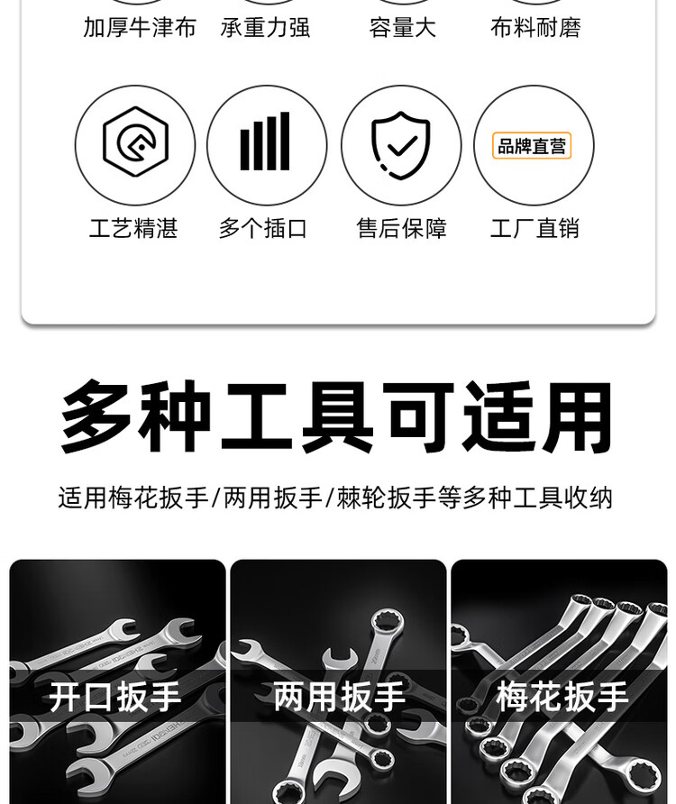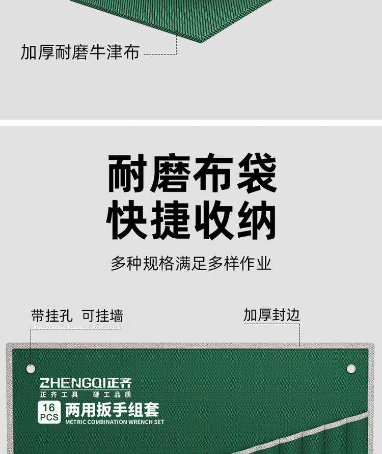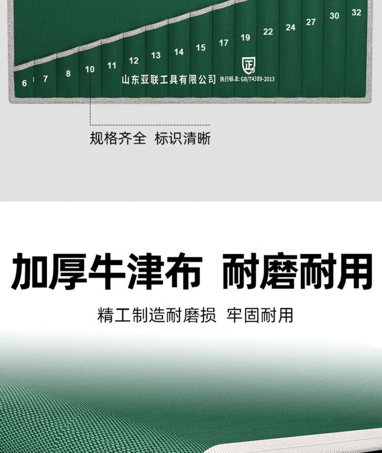 Fantasy canvas tool bag pocket, strong and durable dual-purpose wrench set, thickened wear-resistant storage bag, multi-functional hardware, 18-piece tool set for dual-purpose wrench, empty bag