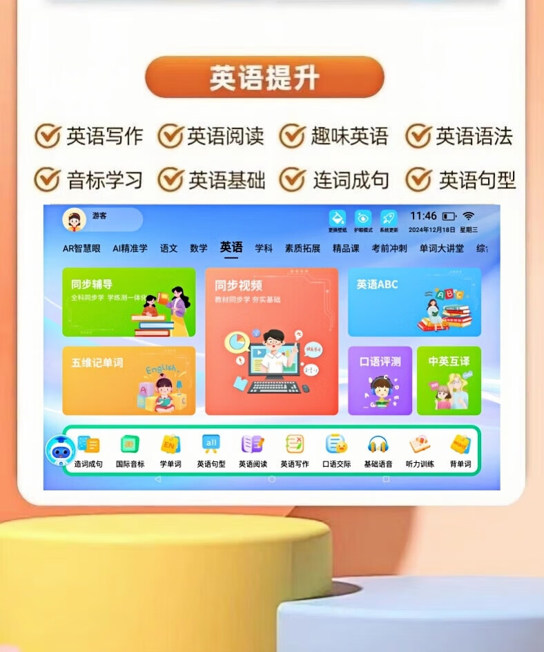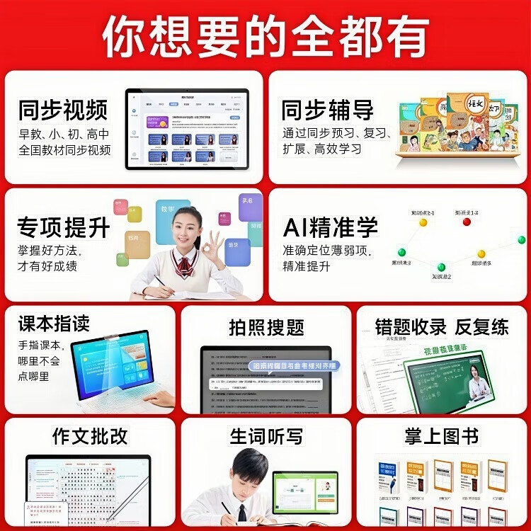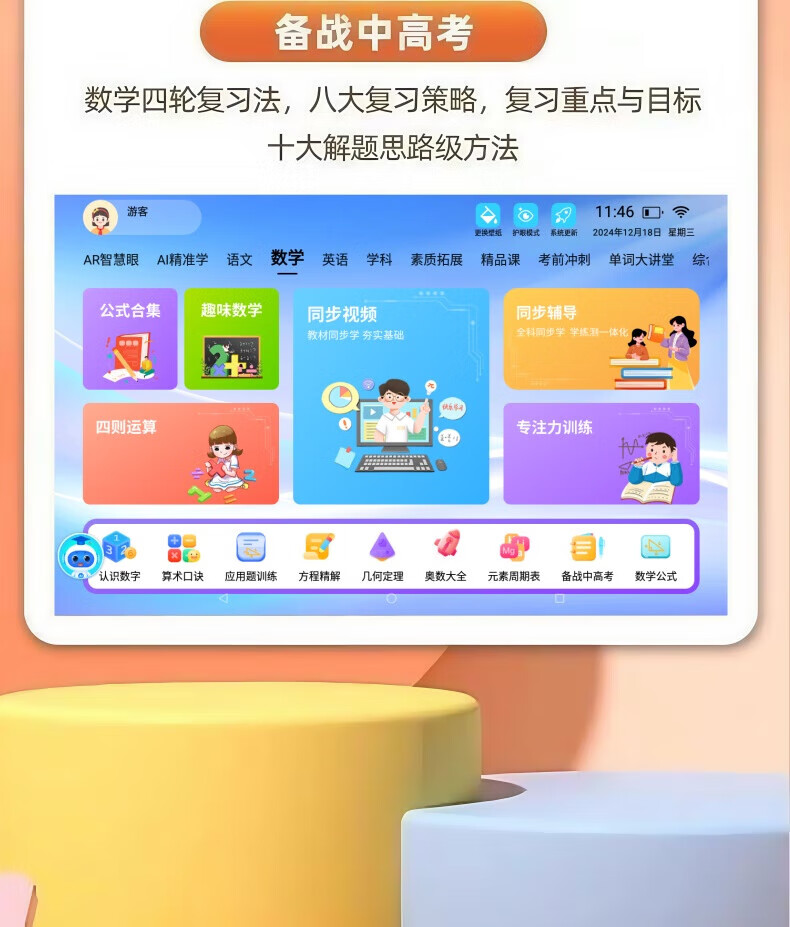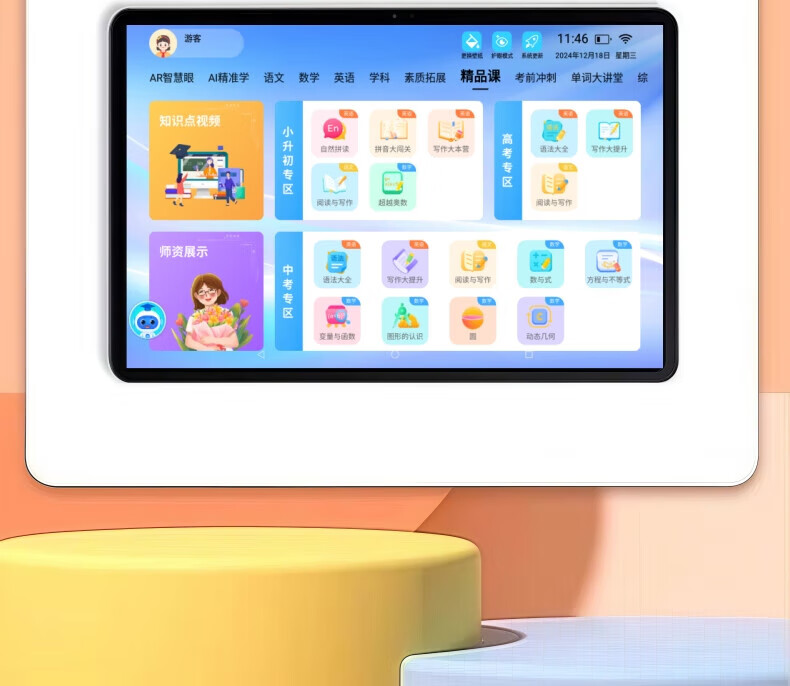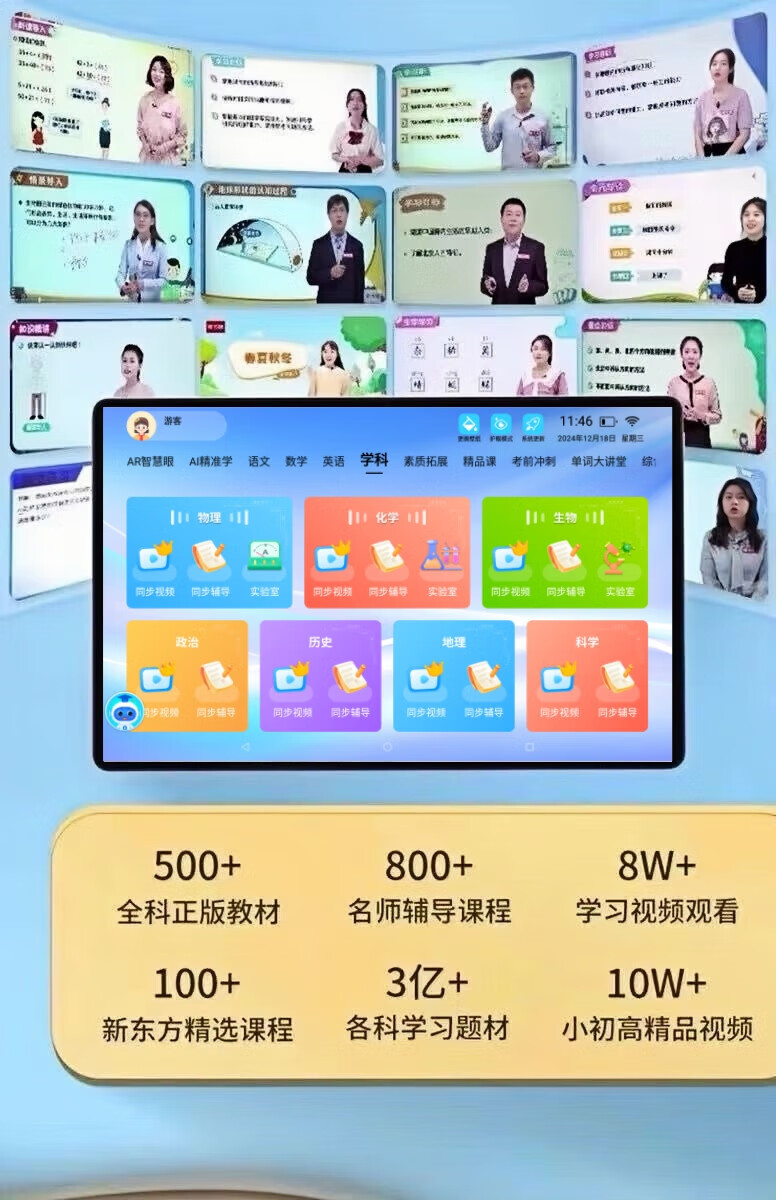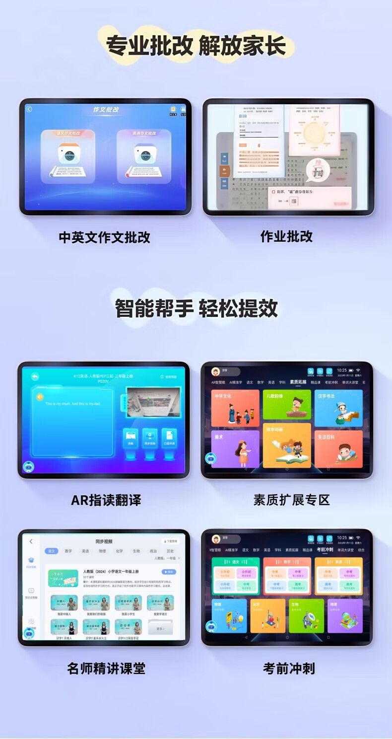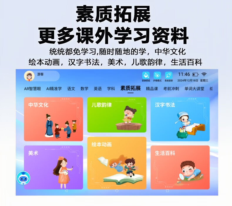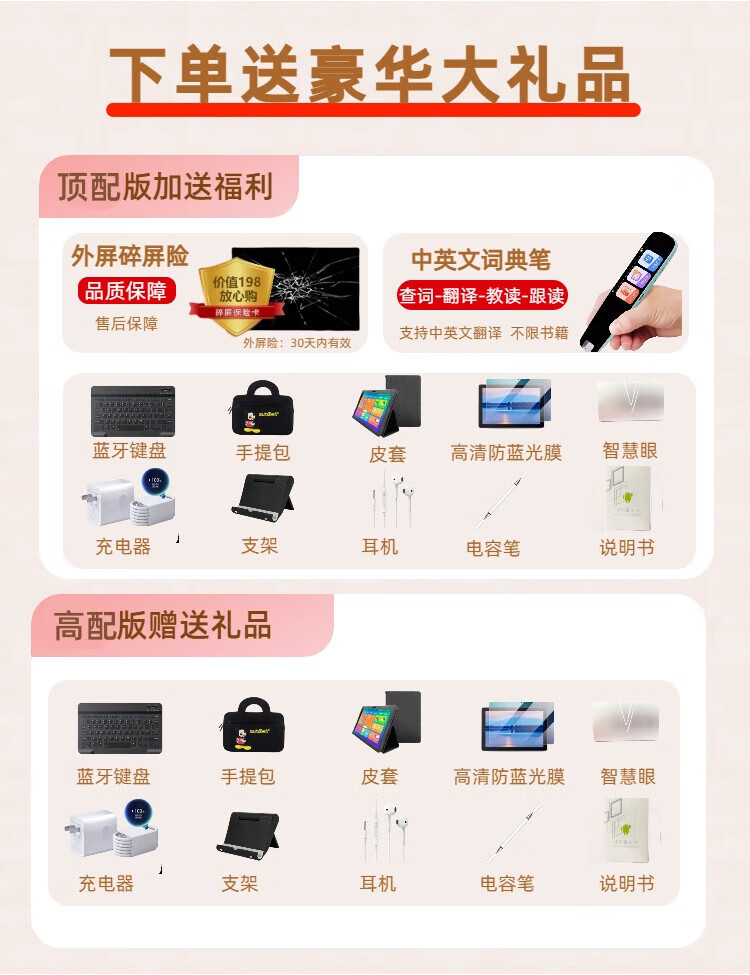 Little Genius Cool Cover 2025 New Edition Intelligent Learning Machine Universal Free Synchronized Textbook Reading Machine Tablet Computer for All Ages Special for Students Female Nifen Synchronized 2025 New Edition Textbook/Famous Teacher Tutoring Free Learning 512G Promotional Edition Single System No Games Free AR Smart Eyes