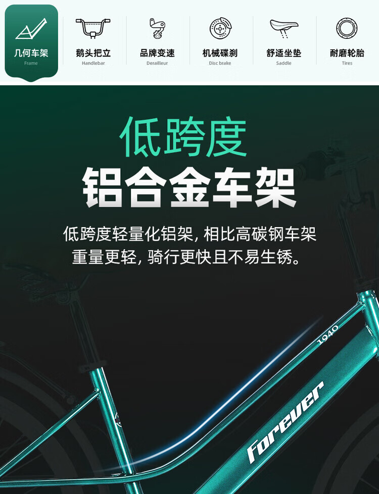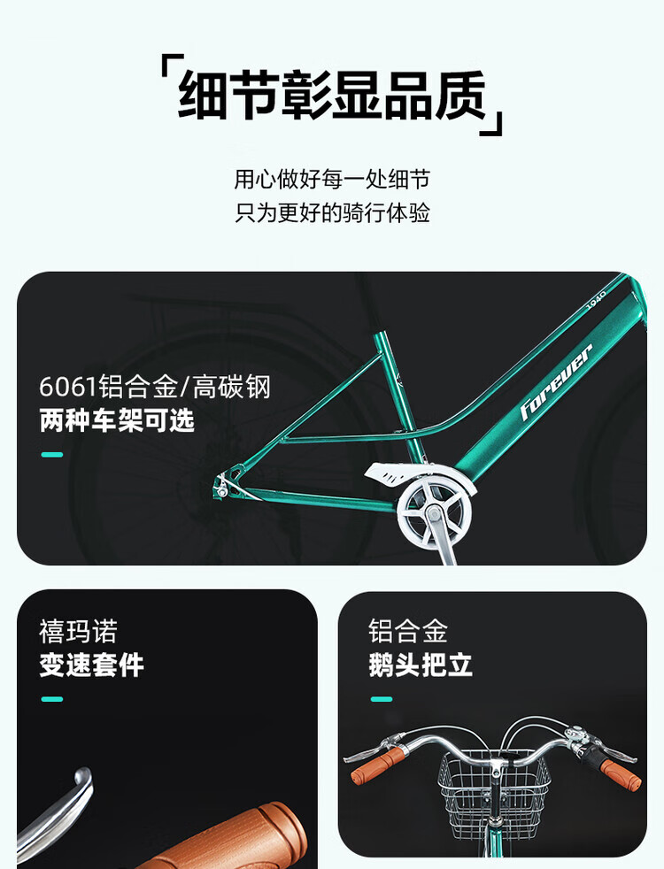 Forever Shimano Women's Urban Commuting Bike Adult Variable Speed Revival Lightweight Commuting to Work for 26 College Students Frost Blue-Shimano Variable Speed 24 Inch 7 Speed