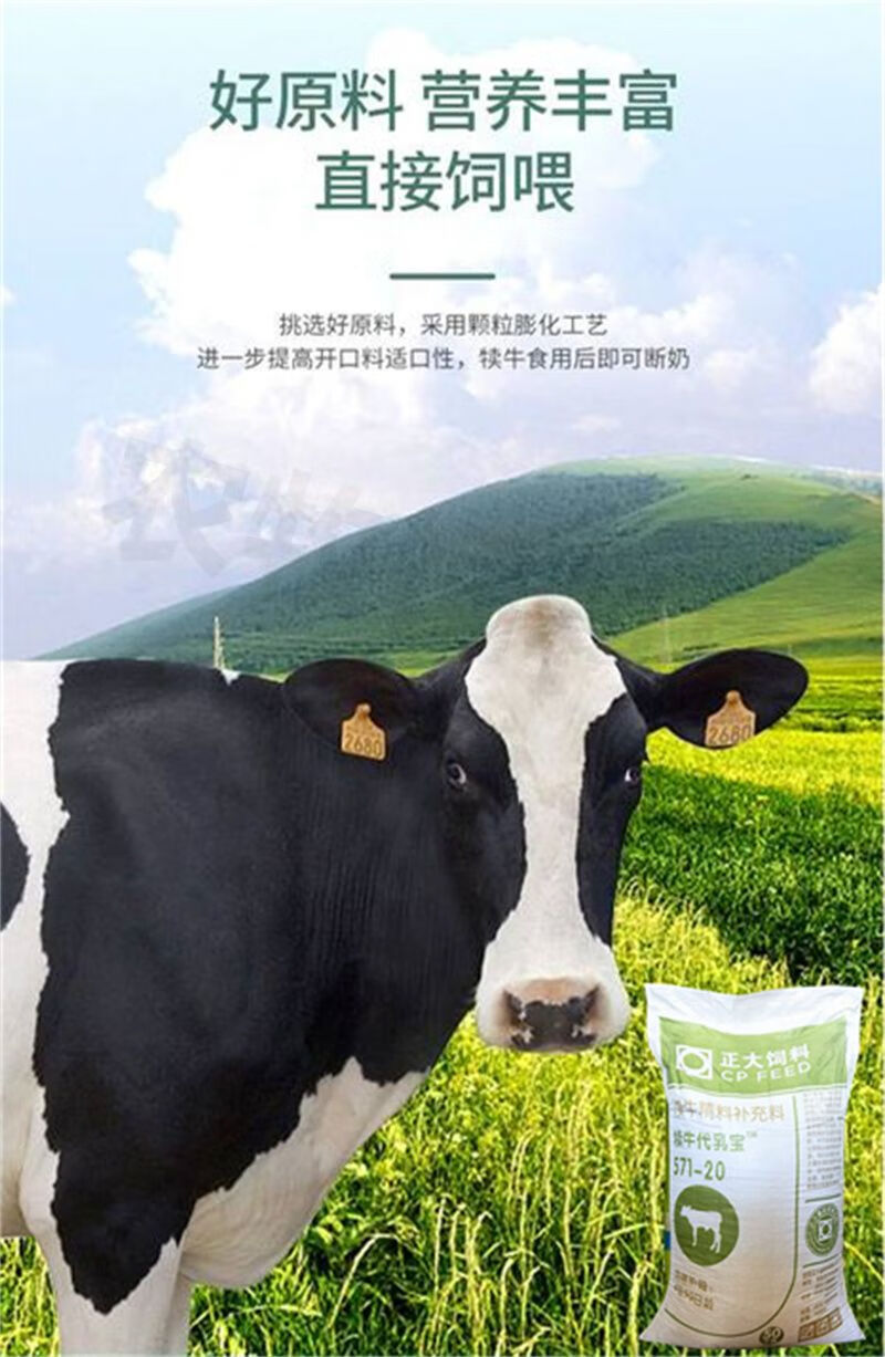 Zhengda calf feed calf open feed pellets 4 to 90 days old calf pellets can enlarge the skeleton quickly. Calf open feed 20 Jin Jin is equal to 0.5 kg for calves 4 to 90 days old.