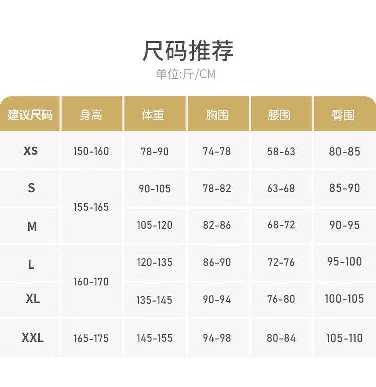 China (cm) 160-165/84-86 165-170 / 88-90 167-172 / 92-96 168-173 / 98-102 170-176 / 106-110